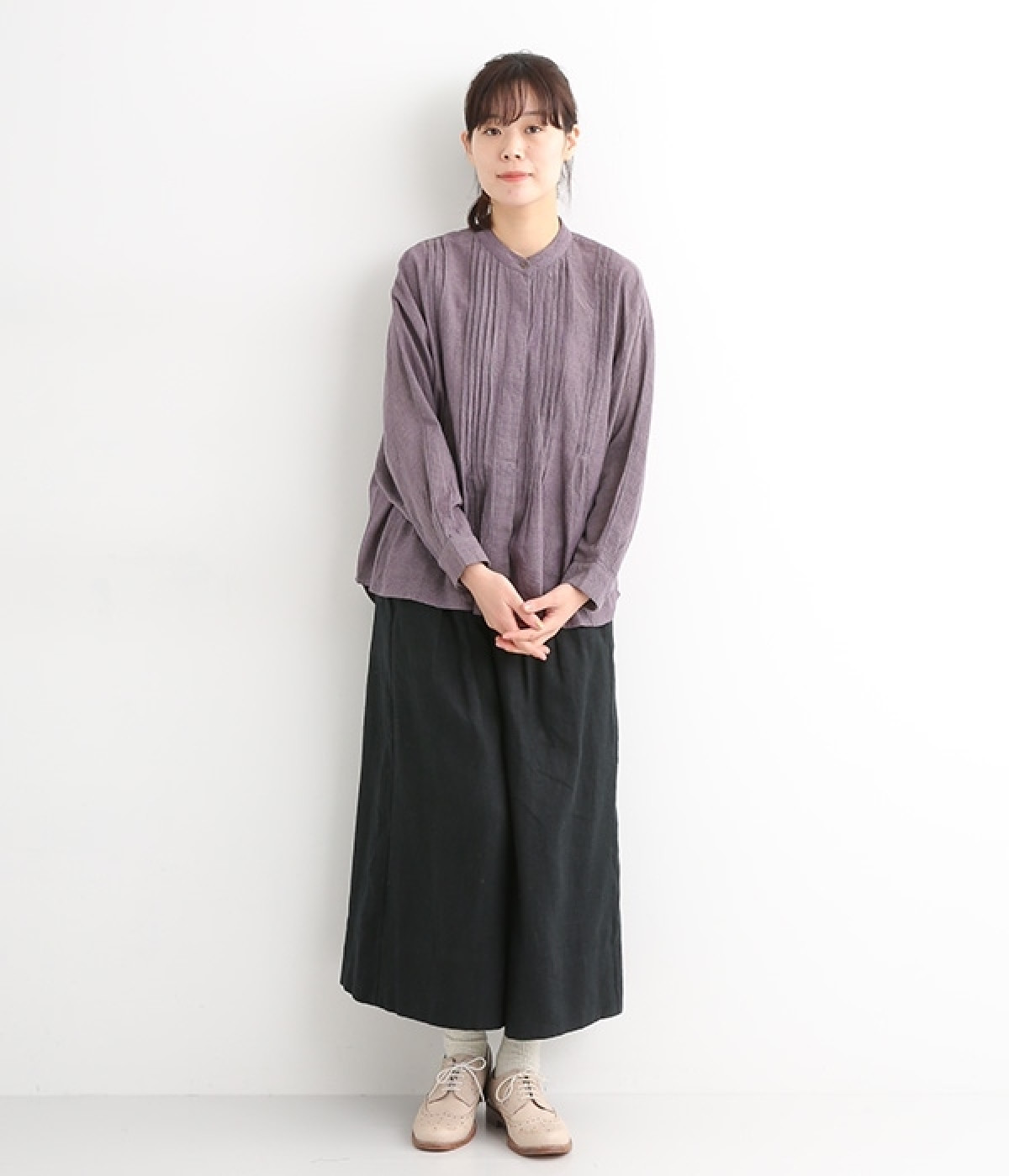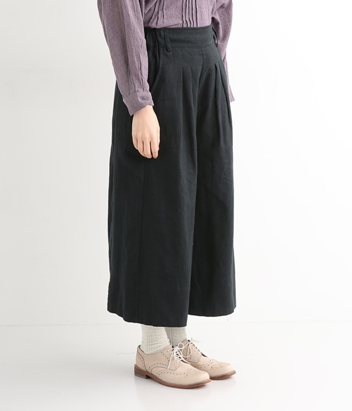 リネンの起毛素材を使用した、あたたかな風合いのワイドパンツです。ウエストにタックを施し、ワタリ幅も余裕を持たせたゆったりとした作り。リラックスした雰囲気が大人のナチュラルスタイルに寄り添います。ウエストは後ろゴム仕様ではきやすく、前はすっきりとしているのでトップスを軽くインしても好バランス。両サイドポケット付きで、デイリー使いにぴったりです。