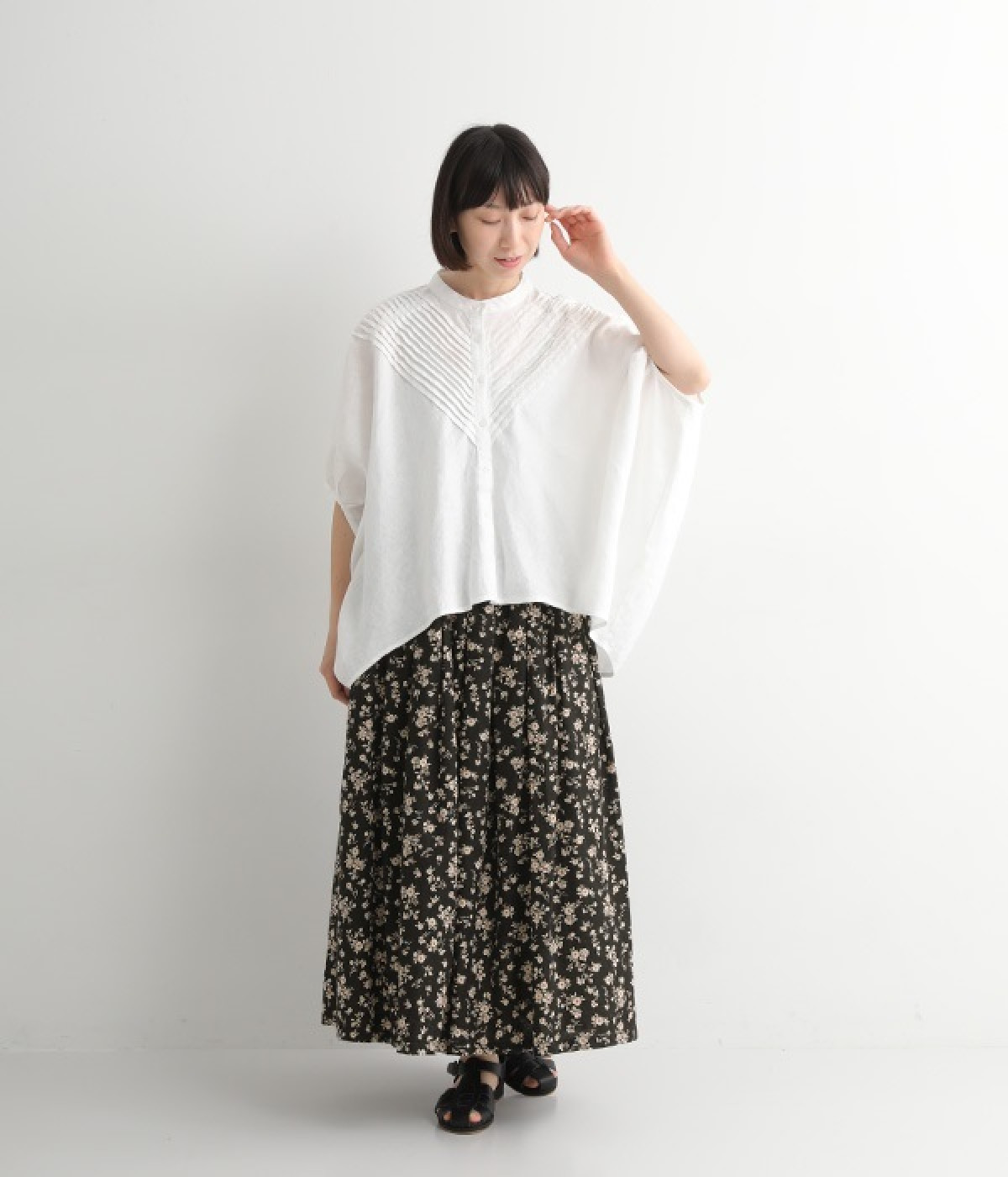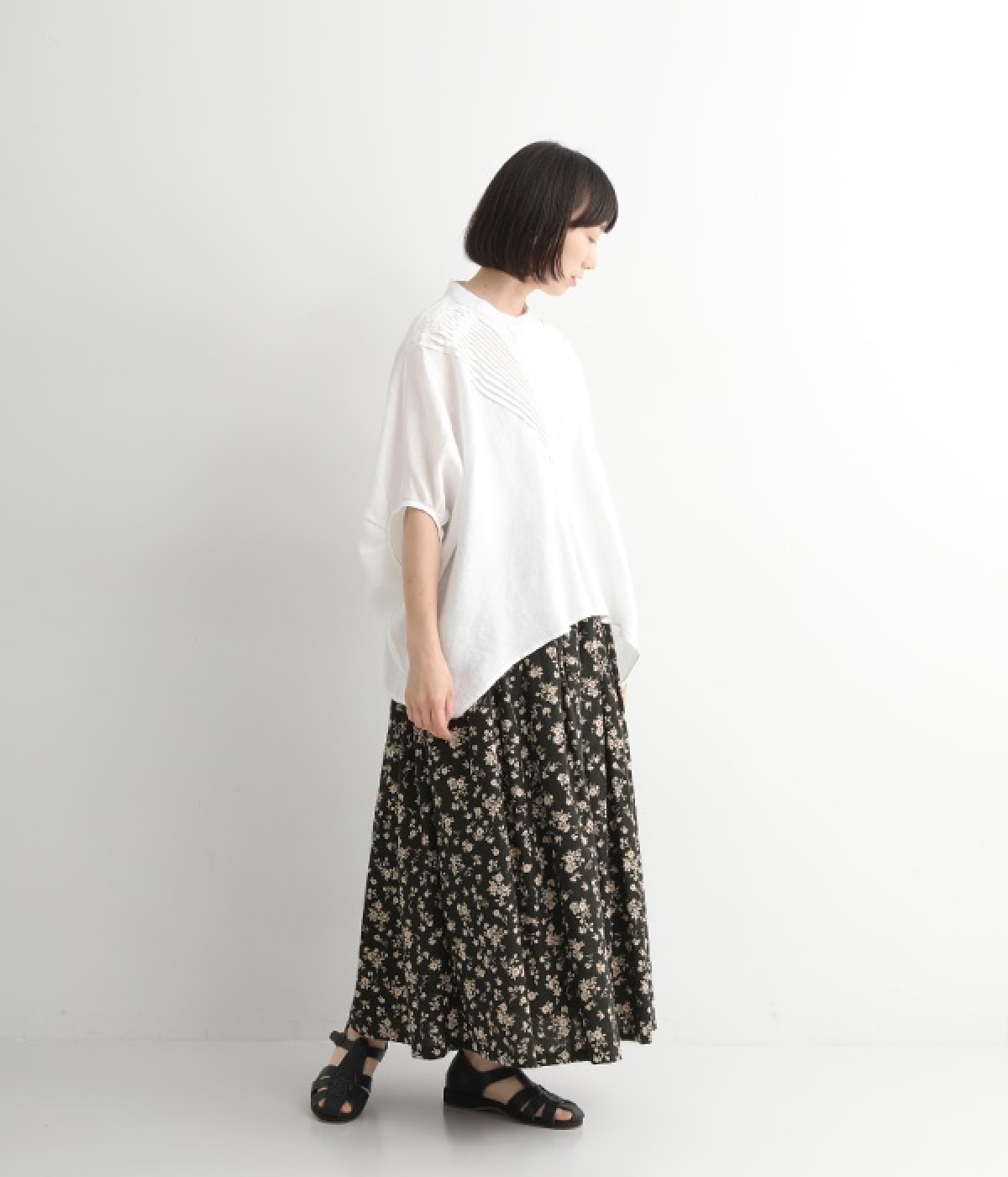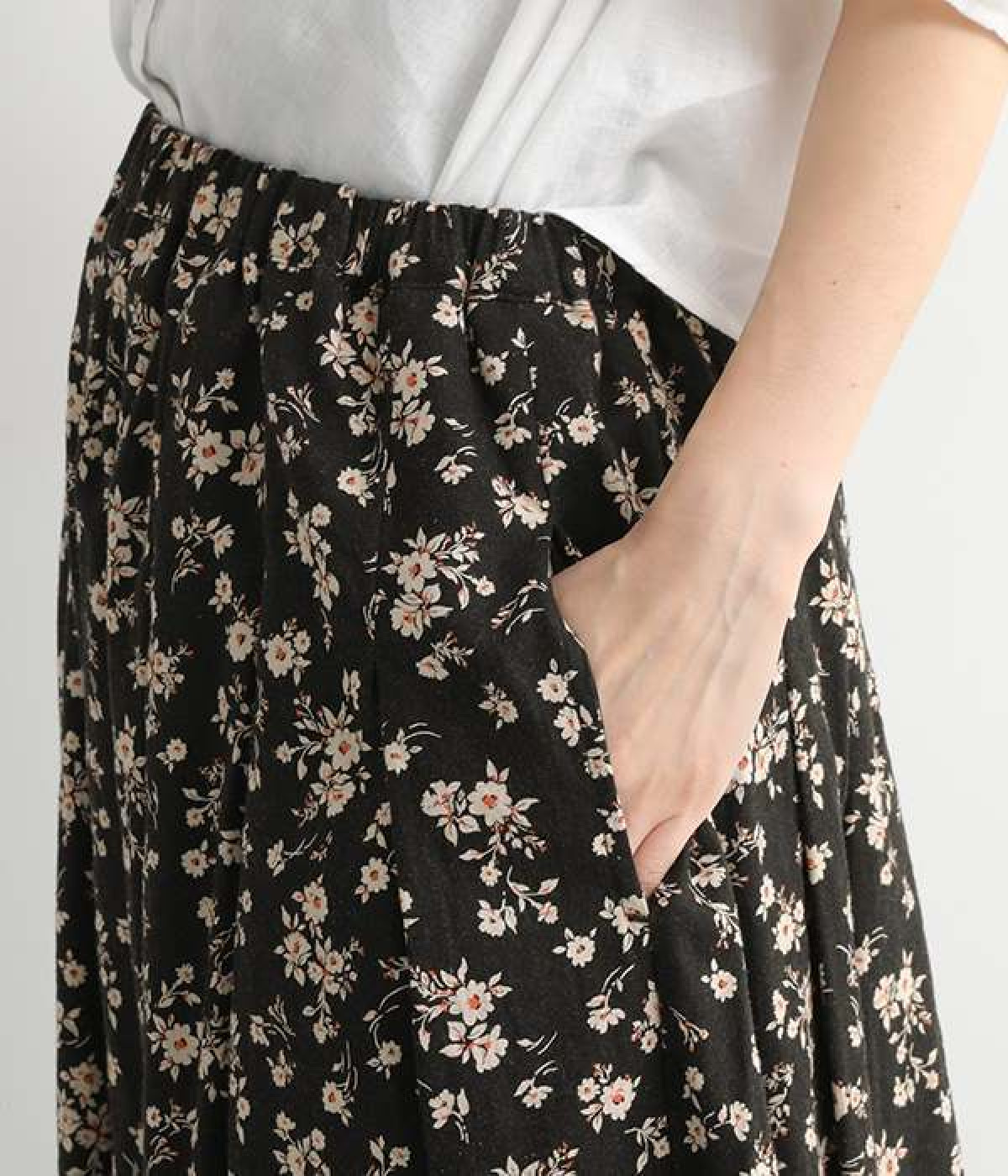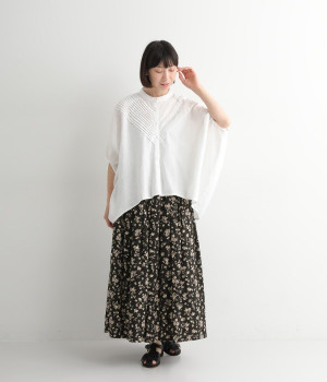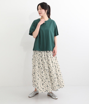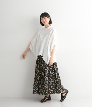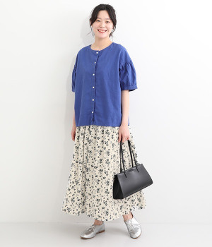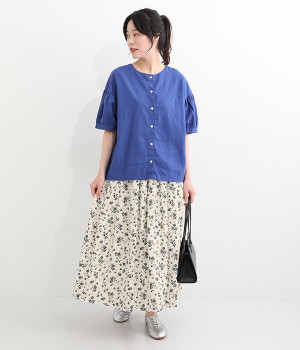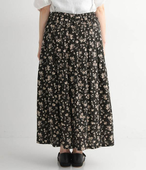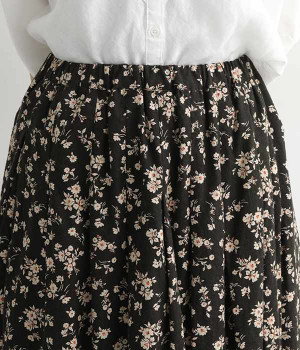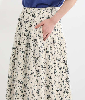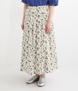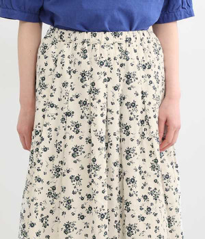 リネンとコットンを使用した、ナチュラルでやさしい雰囲気の花柄プリントスカートです。タックを施したふんわりシルエットが女性らしく、花柄の上品さとマッチ。着丈が長いので大人らしいスタイリングが楽しめます。ウエストは総ゴム仕様、内側にテープ紐が配されているのでサイズ調整も可能です。裏地付きで透けが気にならないのもうれしいポイント。