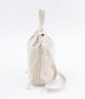 ヨットの帆にも使われるほどの丈夫さが魅力のコットンキャンバストートバッグ。手持ちにもクロスボディにも、持ち方が気分によって変えられるのが特徴です。間口のひもをキュッと絞ると巾着型になり、中身をかわいらしく目隠し。アイテムがすっきりとおさまって安定感のある、楕円型のマチが備わっています。お出かけに必要な小物類を収めるのにちょうど良いサイズです。