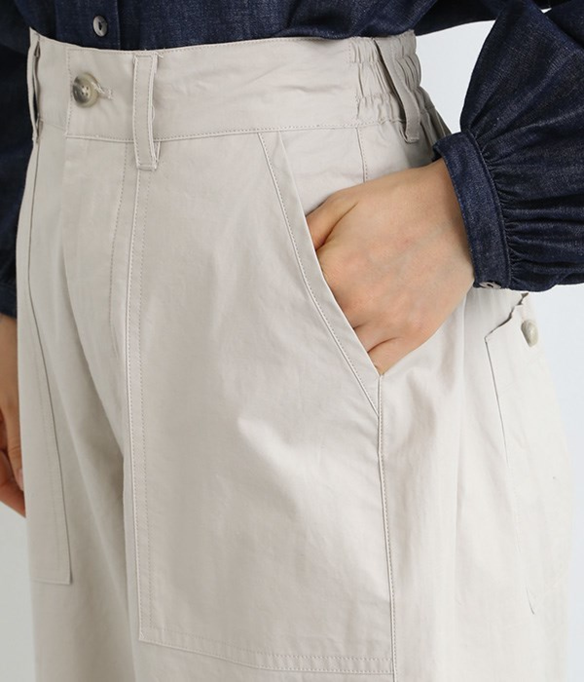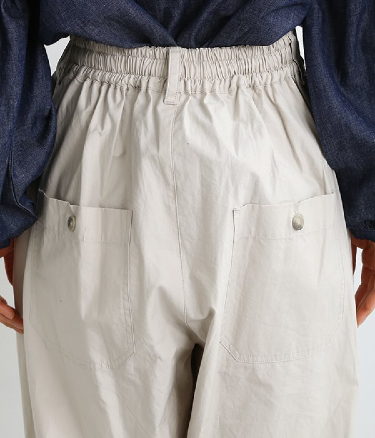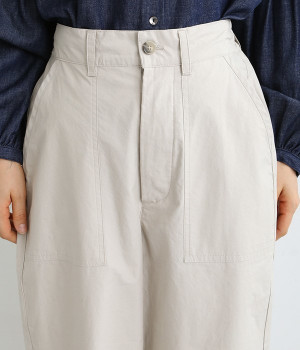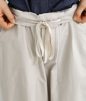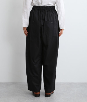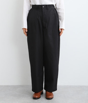 厳選された国内のコットンタイプライター生地を使用。染料と顔料にこだわり、製品洗い加工をほどこしナチュラルな色落ち感を表現したパンツ。前後どちらにも大きめのポケットが備わり、実用性も見た目のインパクトもばっちりです。ウエスト前はきれいめな印象のフラット仕上げ、後ろはゴムを入れたハーフイージータイプ。カジュアルに傾きすぎず、スタイリッシュにもなりすぎない絶妙なバランス感が自慢の一本です。