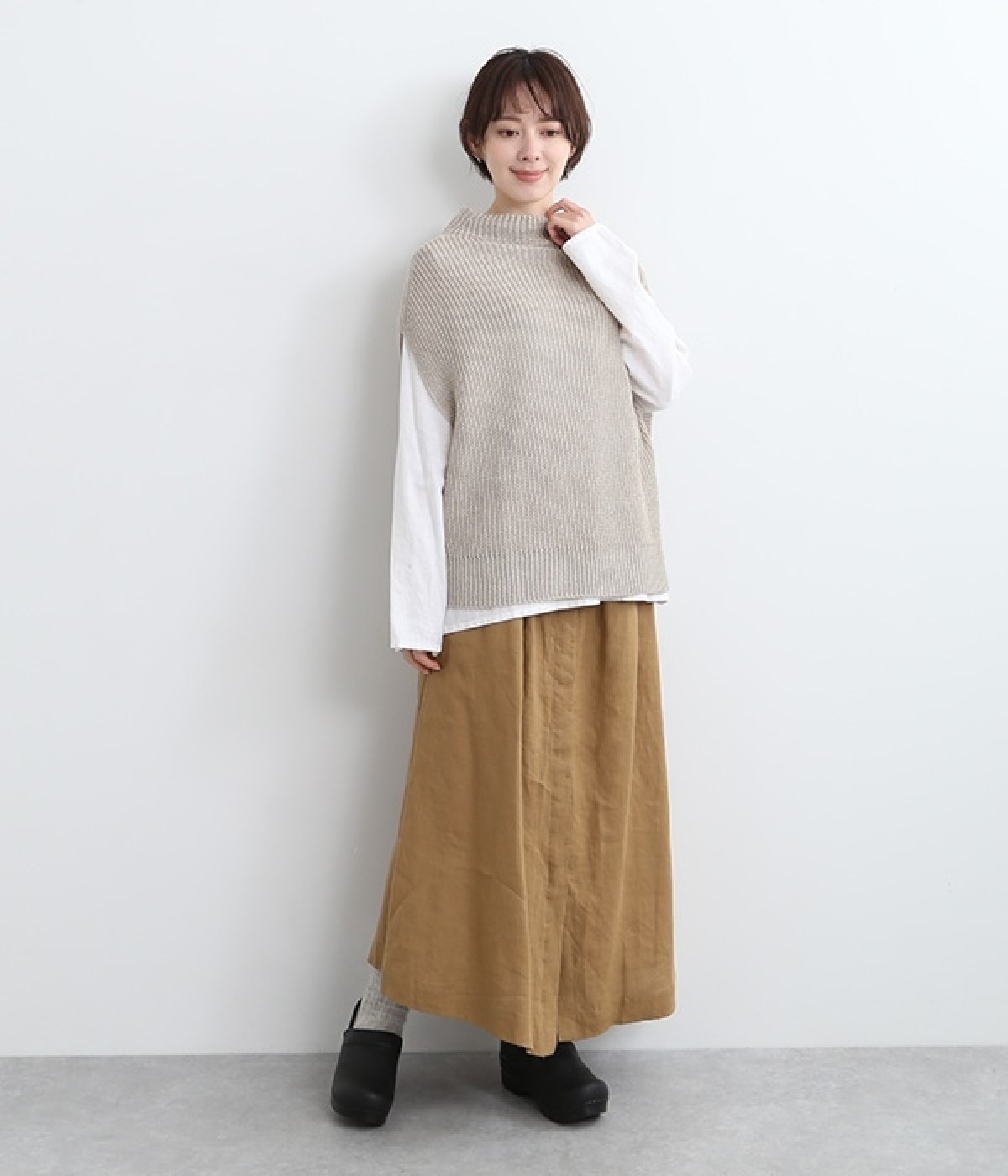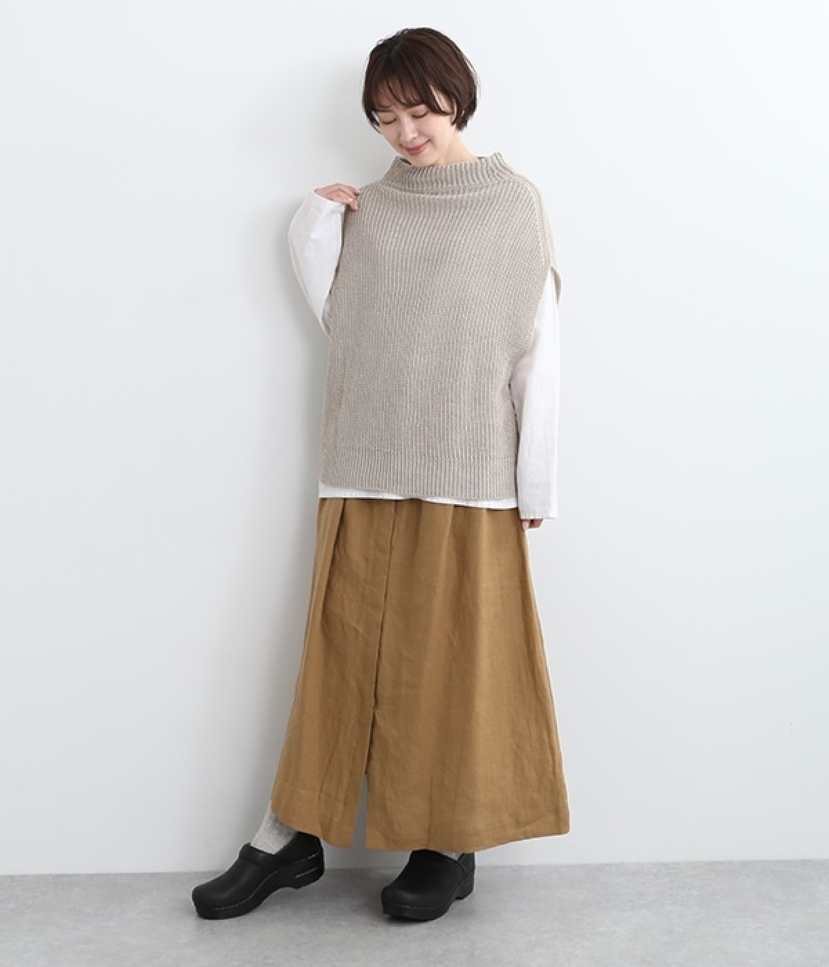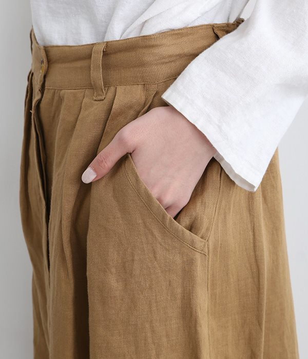洗いざらしのようなナチュラルなシワが浮かび、こなれた着こなしが叶うリネンスカートです。フロントはボタンを隠す比翼仕立てを取り入れた、すっきり見えする大人仕様。トップスインがきれいに見えるよう、ウエスト前はフラットに、後ろのみにゴムを入れたハーフイージータイプです。フレアラインは広がりをおさえているため、落ち着いた雰囲気ではけるのも◎。裏地なしで軽やかに着用でき、ロング丈でもストレスなく日常使いが可能です。