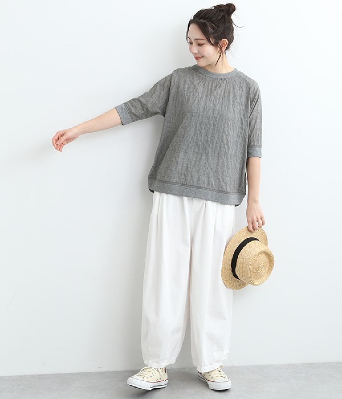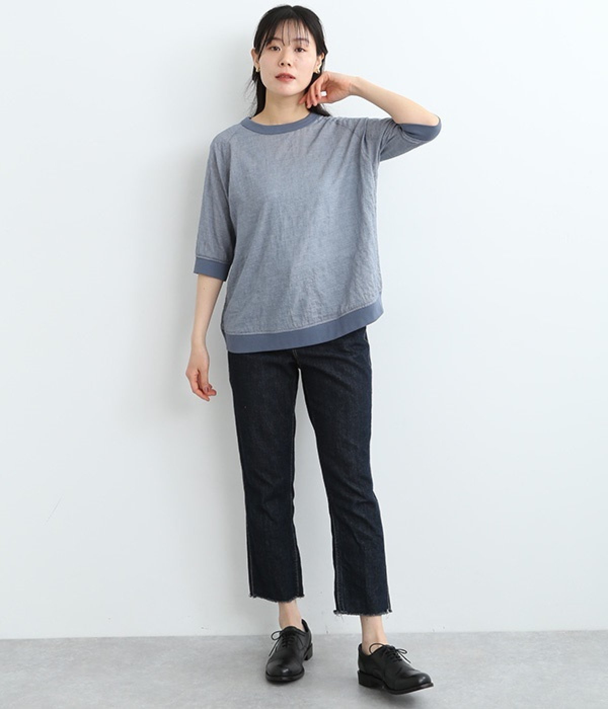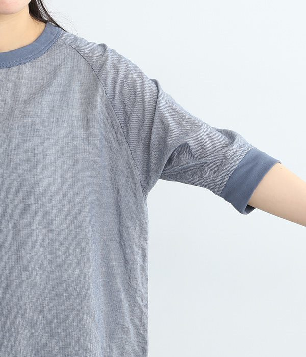 レーヨンシルク混の、ほのかにシアーな素材を使用したプルオーバーブラウス。軽やかさや風通りの良さ、清涼感などさまざまな素材の特性を併せ持っているので、汗ばむ季節にも快適に着用できます。部分的にリブを取り入れ、デザイン性と心地良いフィット性を欲張りました。がんばりすぎない、大人なこなれスタイルにマッチする一枚です。