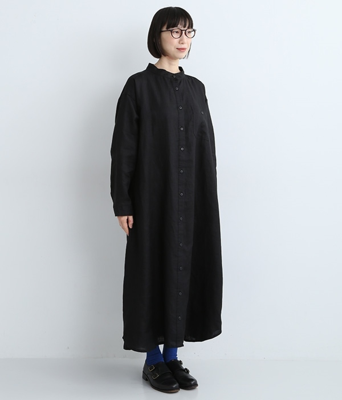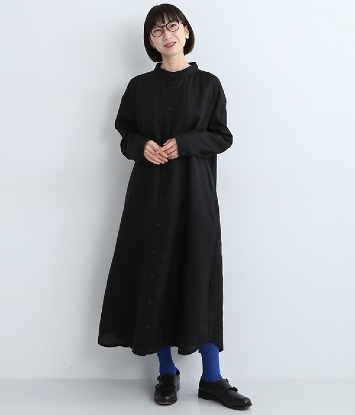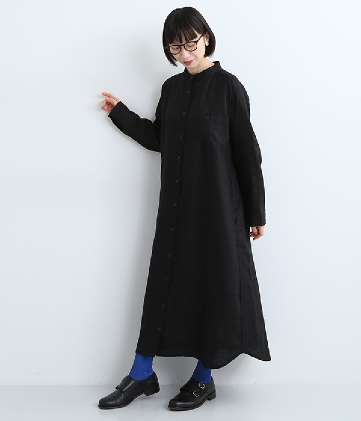 洗いざらしリネンならではの肌なじみの良さを味わえるシャツワンピース。スタンドカラー&肩落ちを控えめにしたショルダーラインと、きちんと感を意識したつくりです。猫の目を思わせるボタンをあしらってかわいらしい一面ものぞかせます。中に着込んだ羽織りスタイルにも対応する、ゆとりのあるシルエットも◎。カラータイツと合わせたり、ウォッシュドデニムと合わせたりとアレンジ次第で雰囲気が変わります。