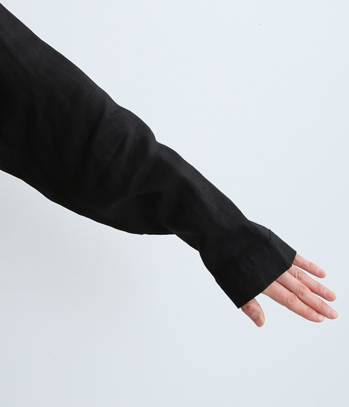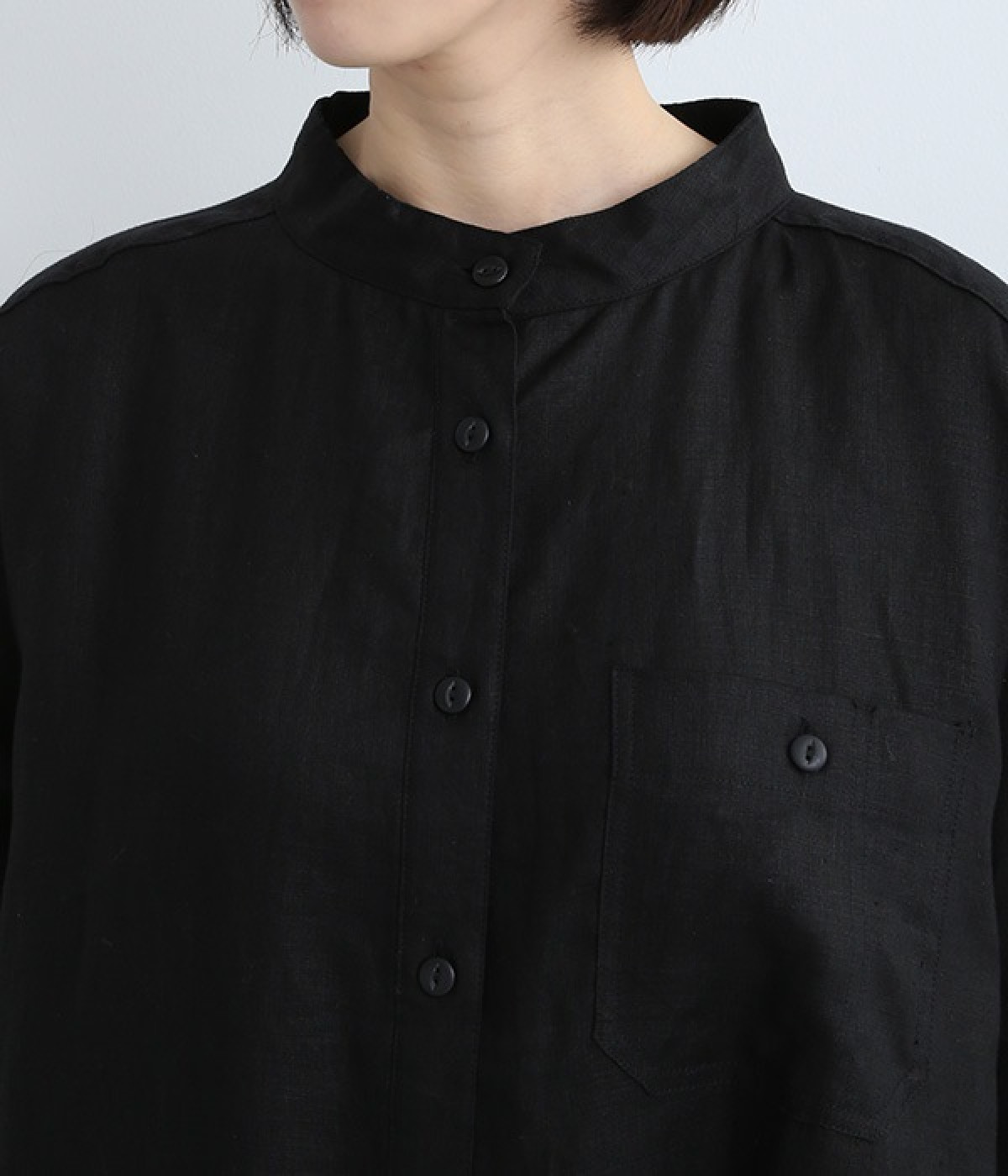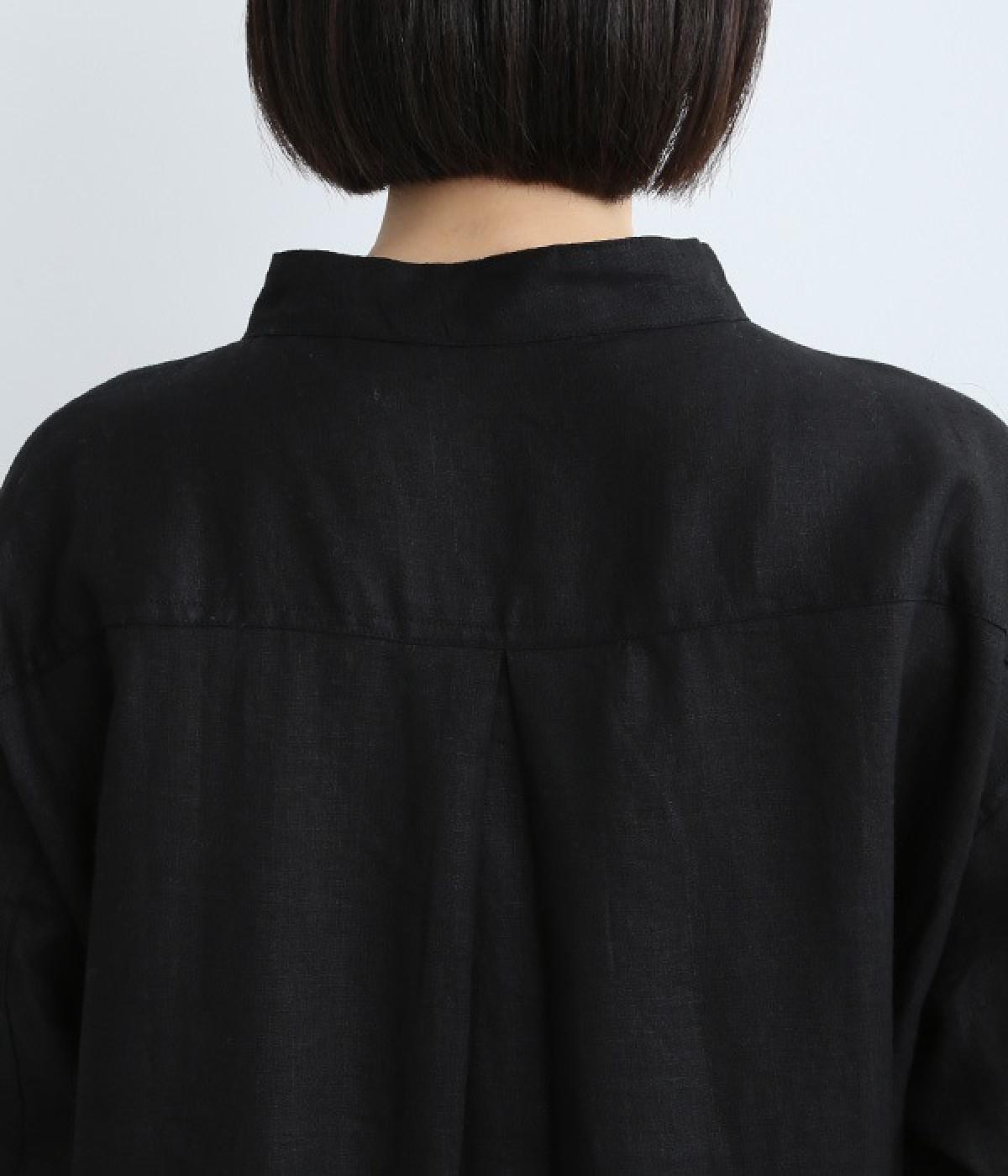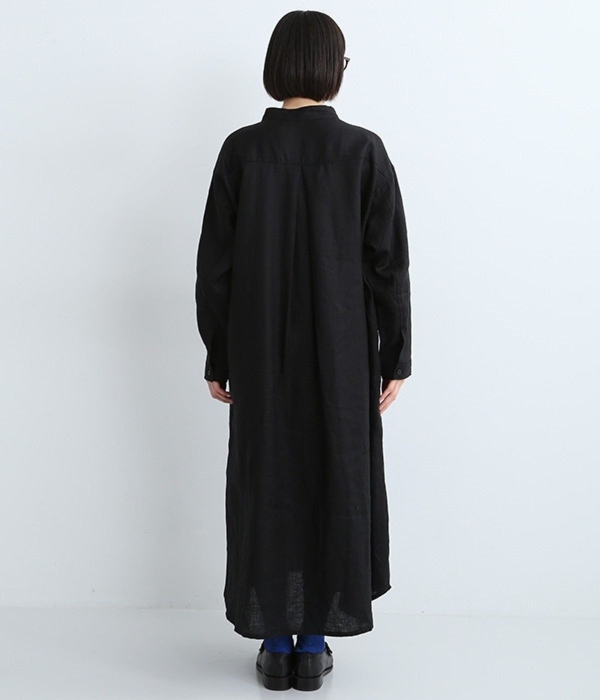 洗いざらしリネンならではの肌なじみの良さを味わえるシャツワンピース。スタンドカラー&肩落ちを控えめにしたショルダーラインと、きちんと感を意識したつくりです。猫の目を思わせるボタンをあしらってかわいらしい一面ものぞかせます。中に着込んだ羽織りスタイルにも対応する、ゆとりのあるシルエットも◎。カラータイツと合わせたり、ウォッシュドデニムと合わせたりとアレンジ次第で雰囲気が変わります。