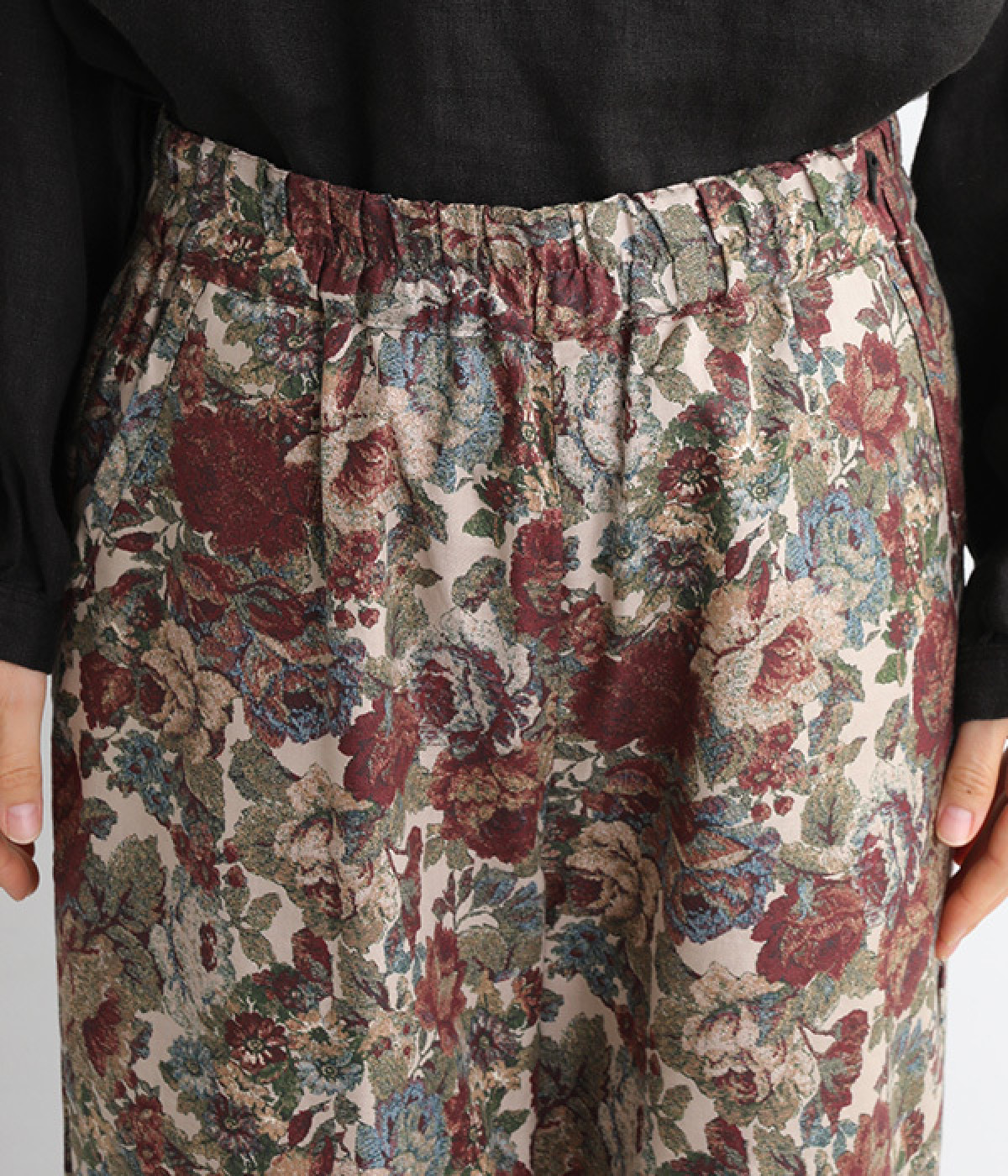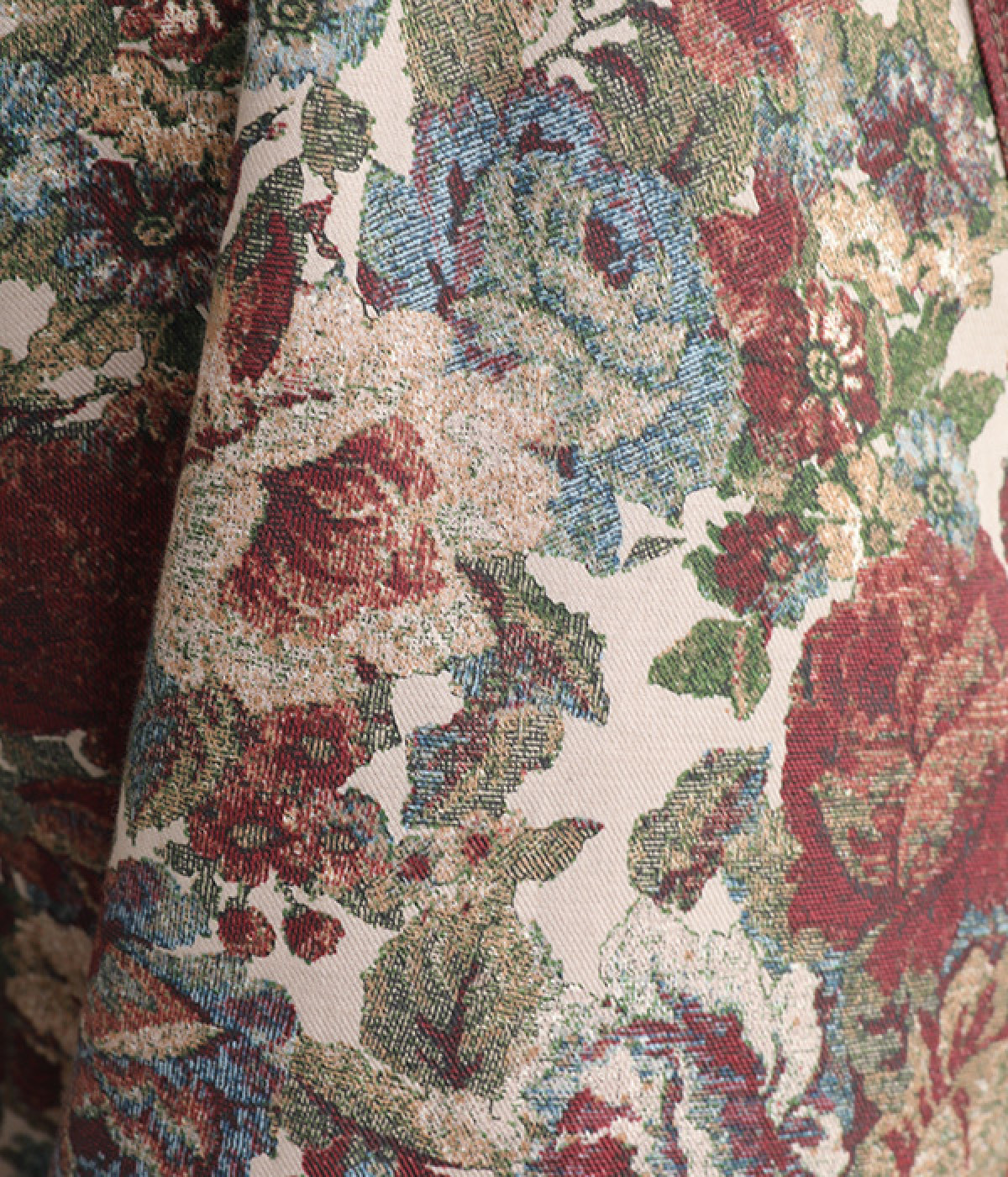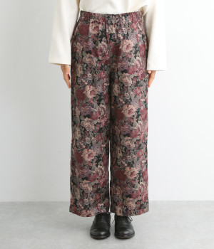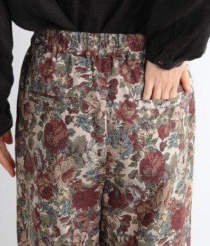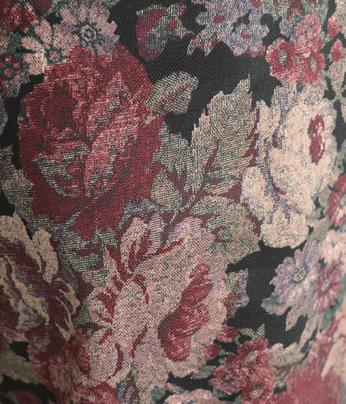 多色の糸で仕立てた、ゴブラン調のフラワープリント