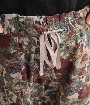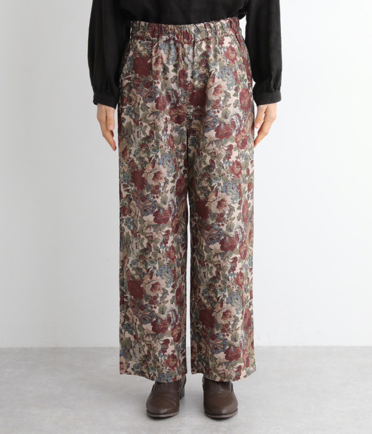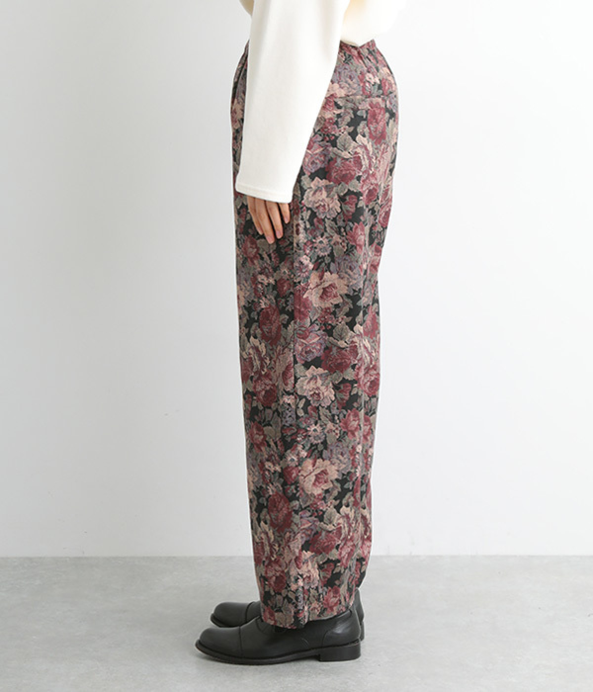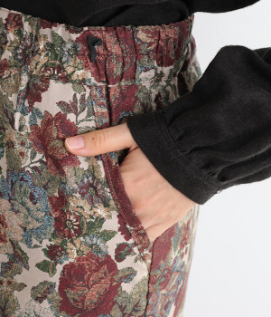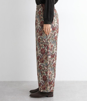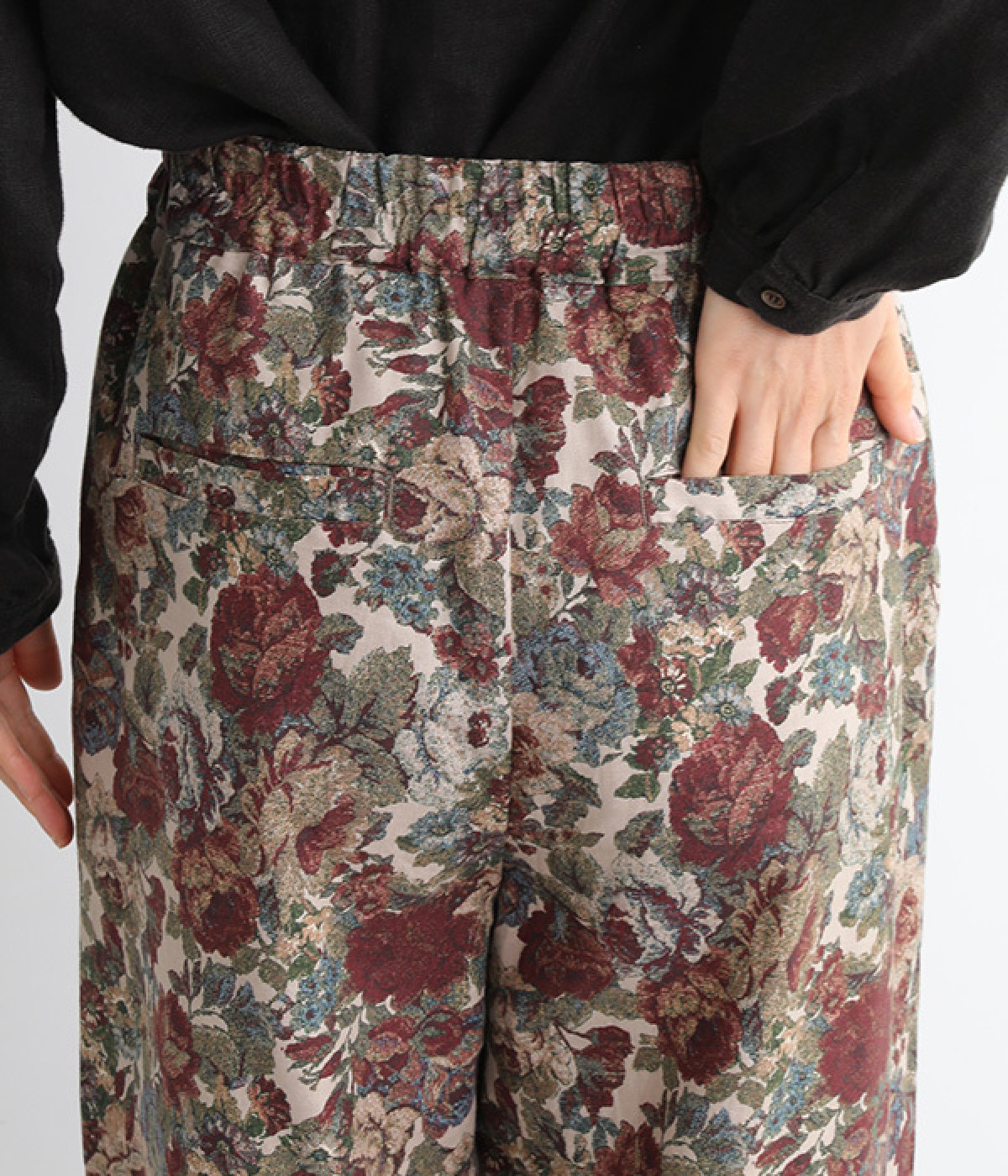 多色の糸で仕立てた、ゴブラン調のフラワープリント