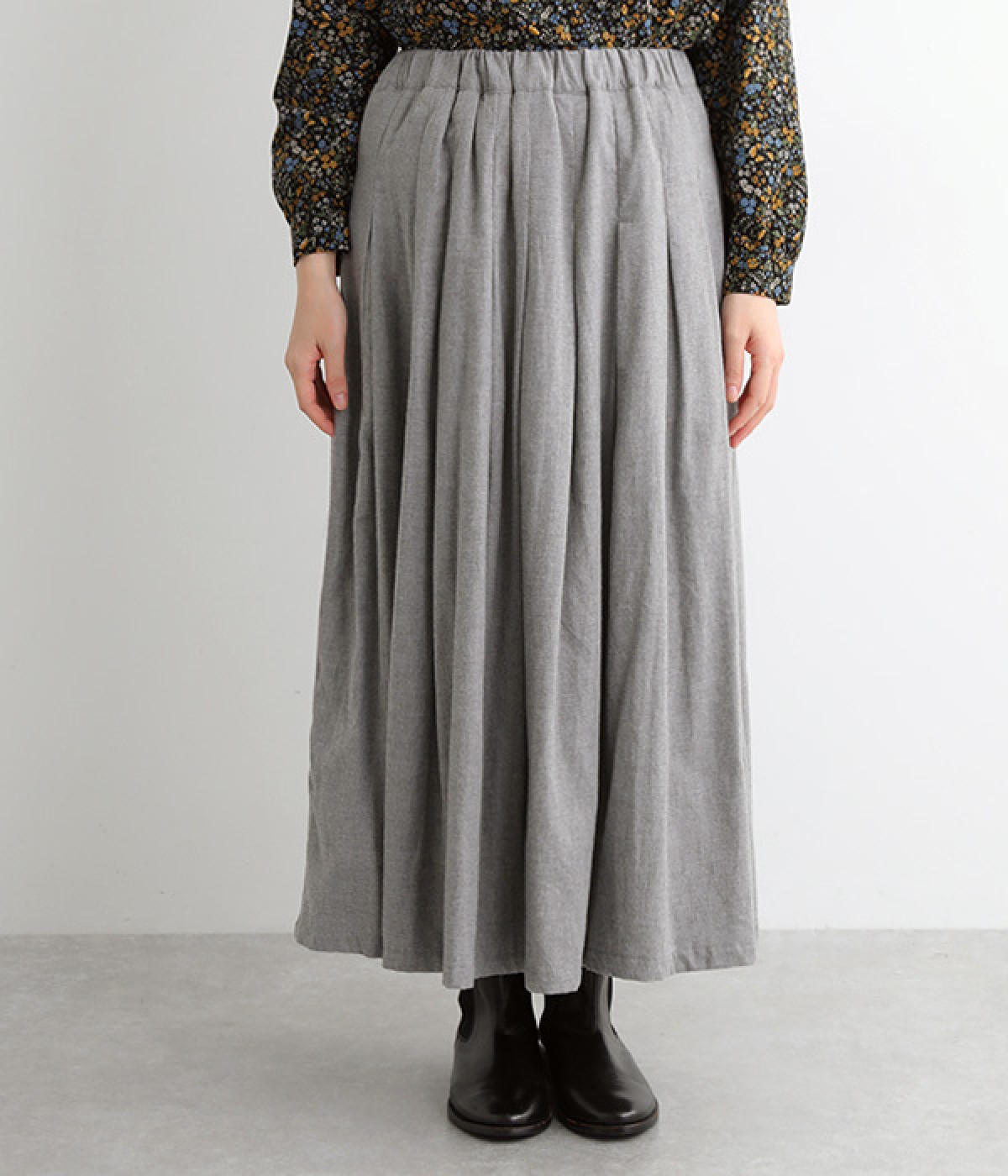 ソックスやシューズとのコーディネートがしやすいミモレ丈
