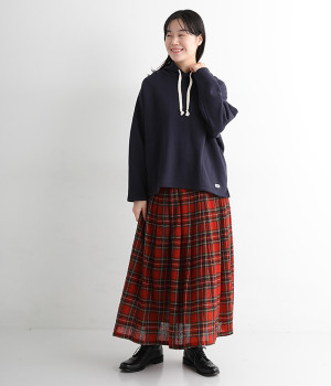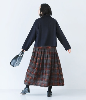 ウエスト下のタックでボリュームを出して女性らしいシルエットに