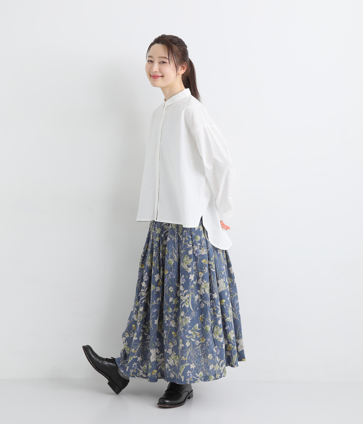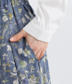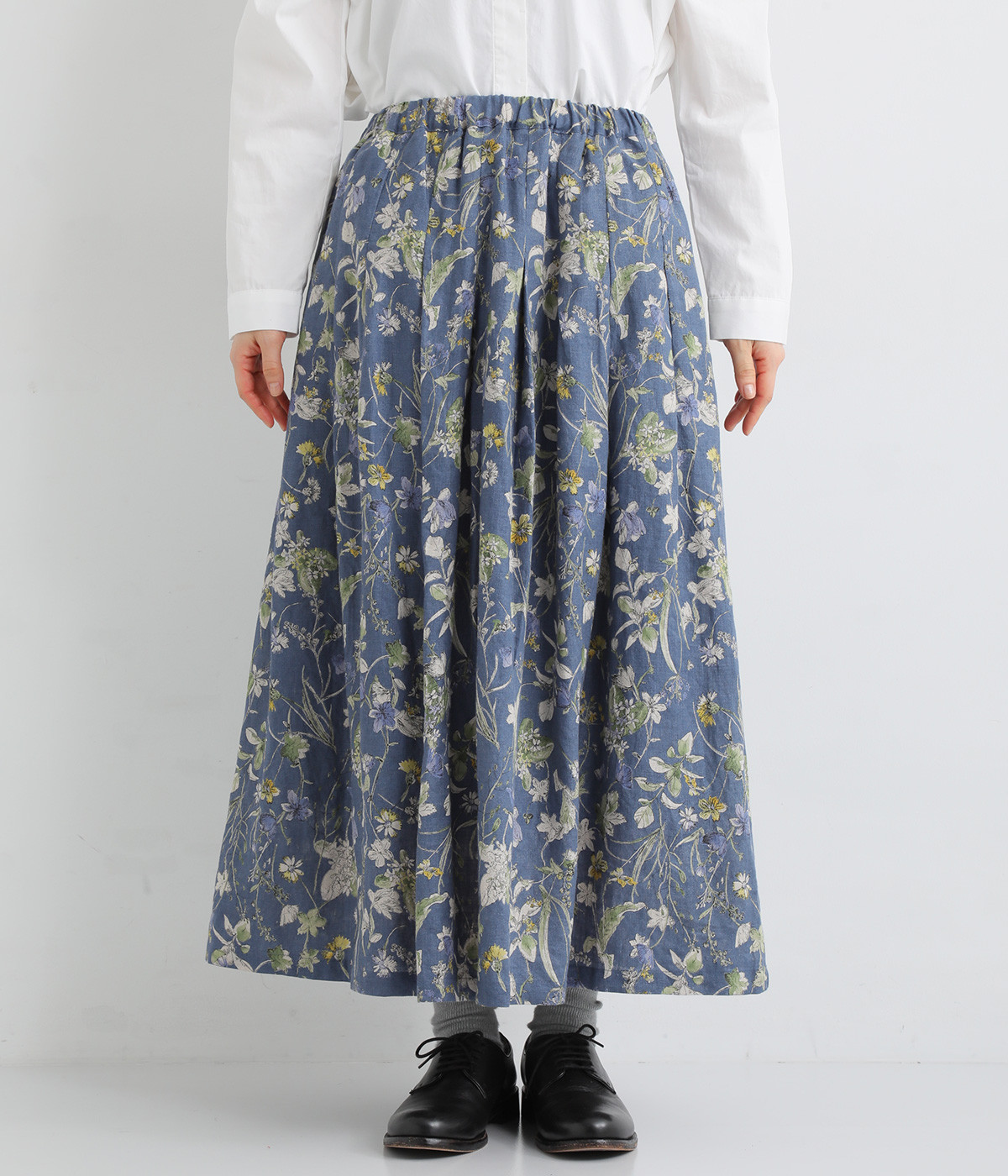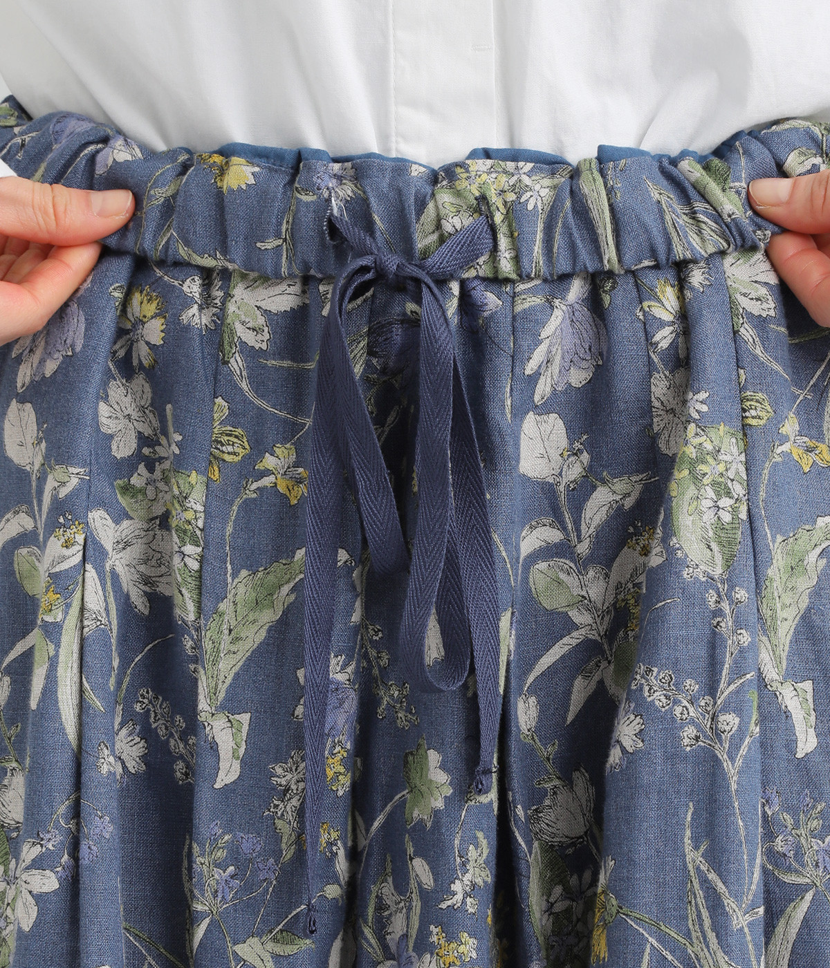 やわらかなリネンに、やさしい表情の水彩画プリントをあしらったテキスタイル。軽やかな風合いで、ロングシーズン活躍します。裏地付きで透け感が気にならないのもうれしいポイント。