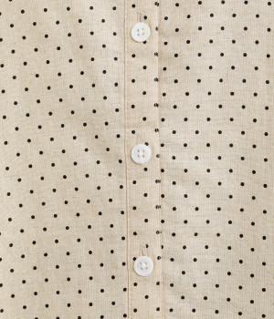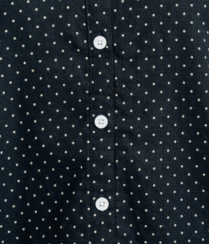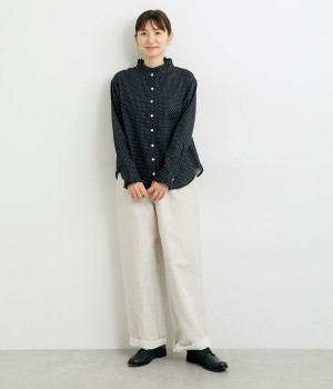 本貝ボタンのテクスチャーのコントラストがさり気ないアクセント