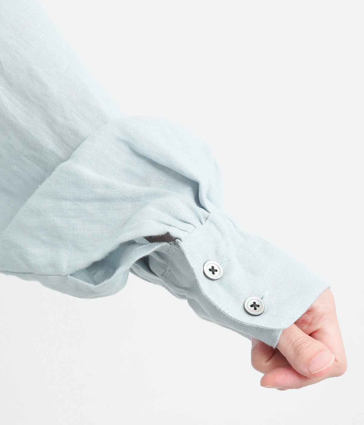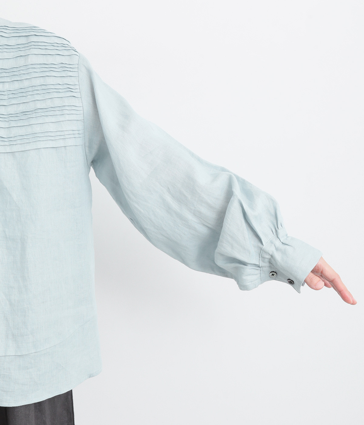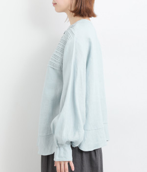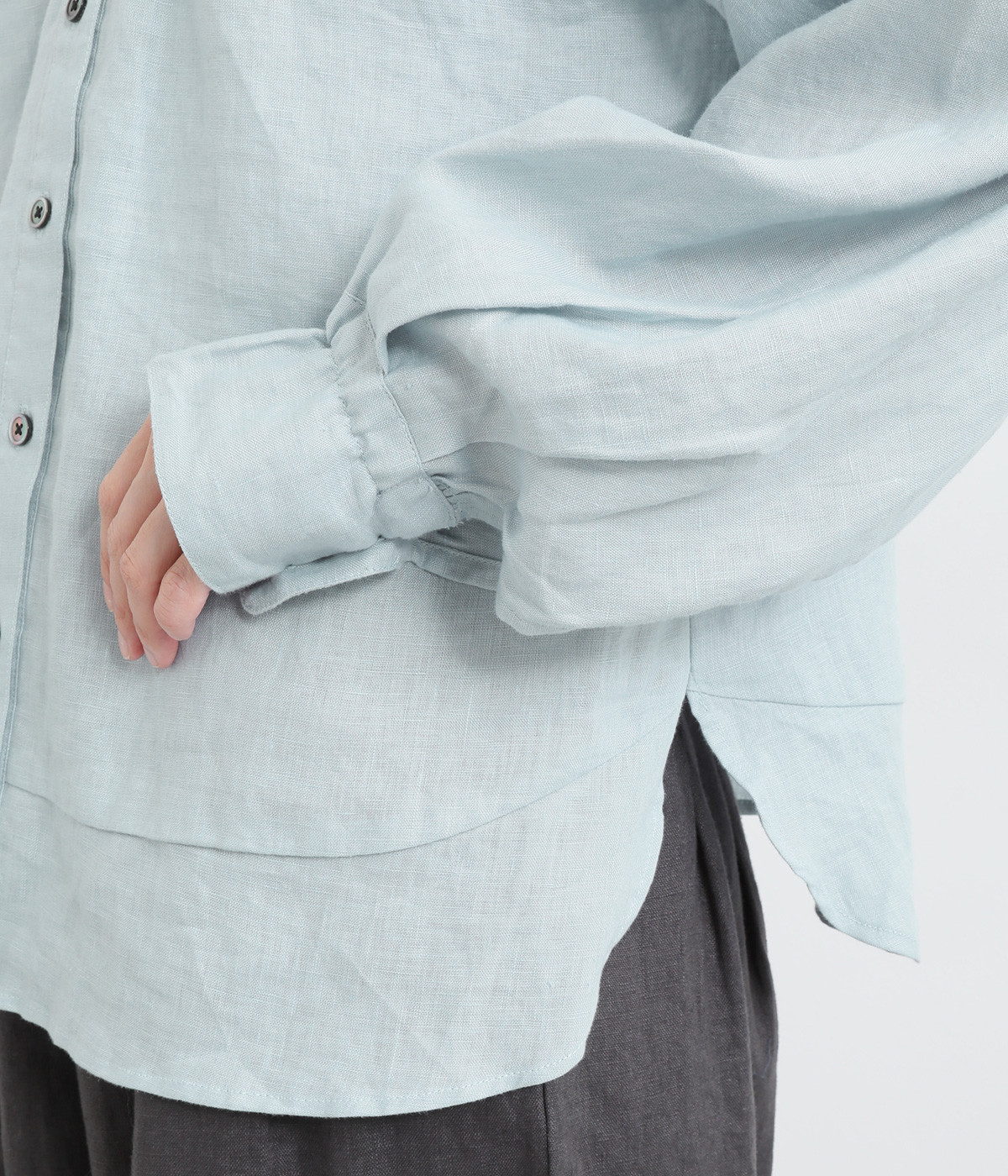 袖口ゴムシャーリング加工でふわりとボリューム感を