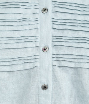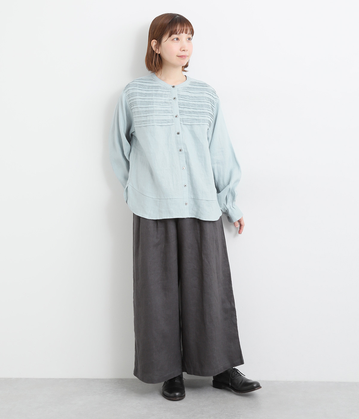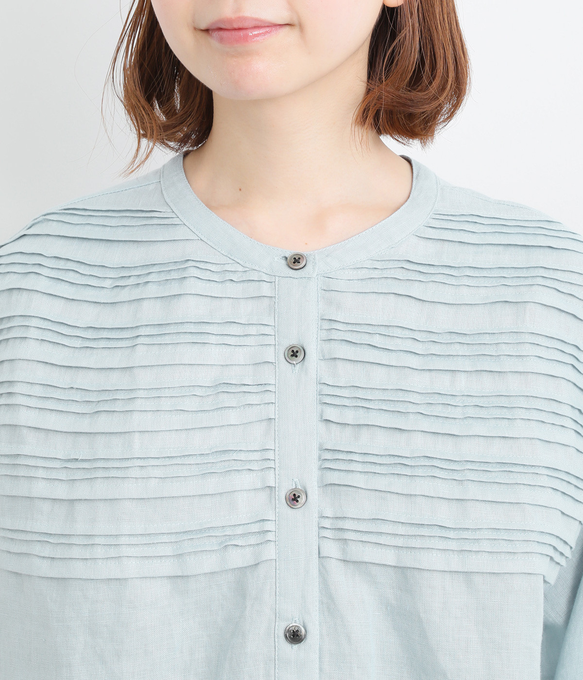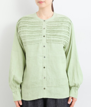 胸元のボーダーピンタックが目を惹く一枚