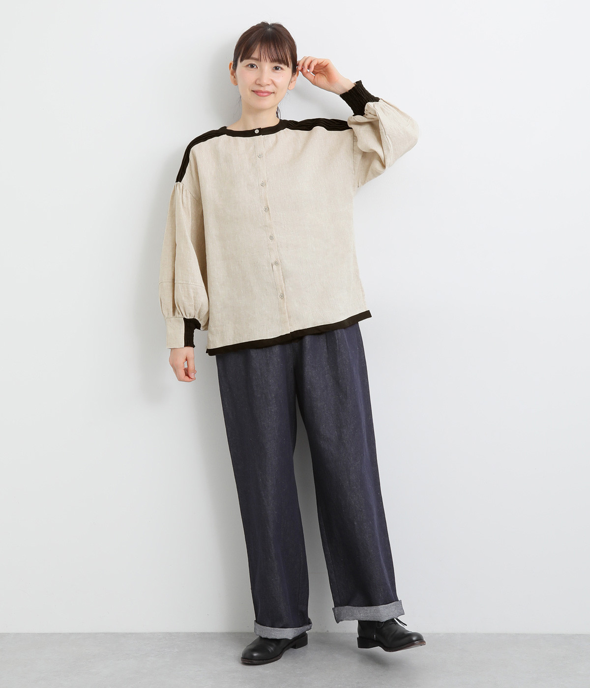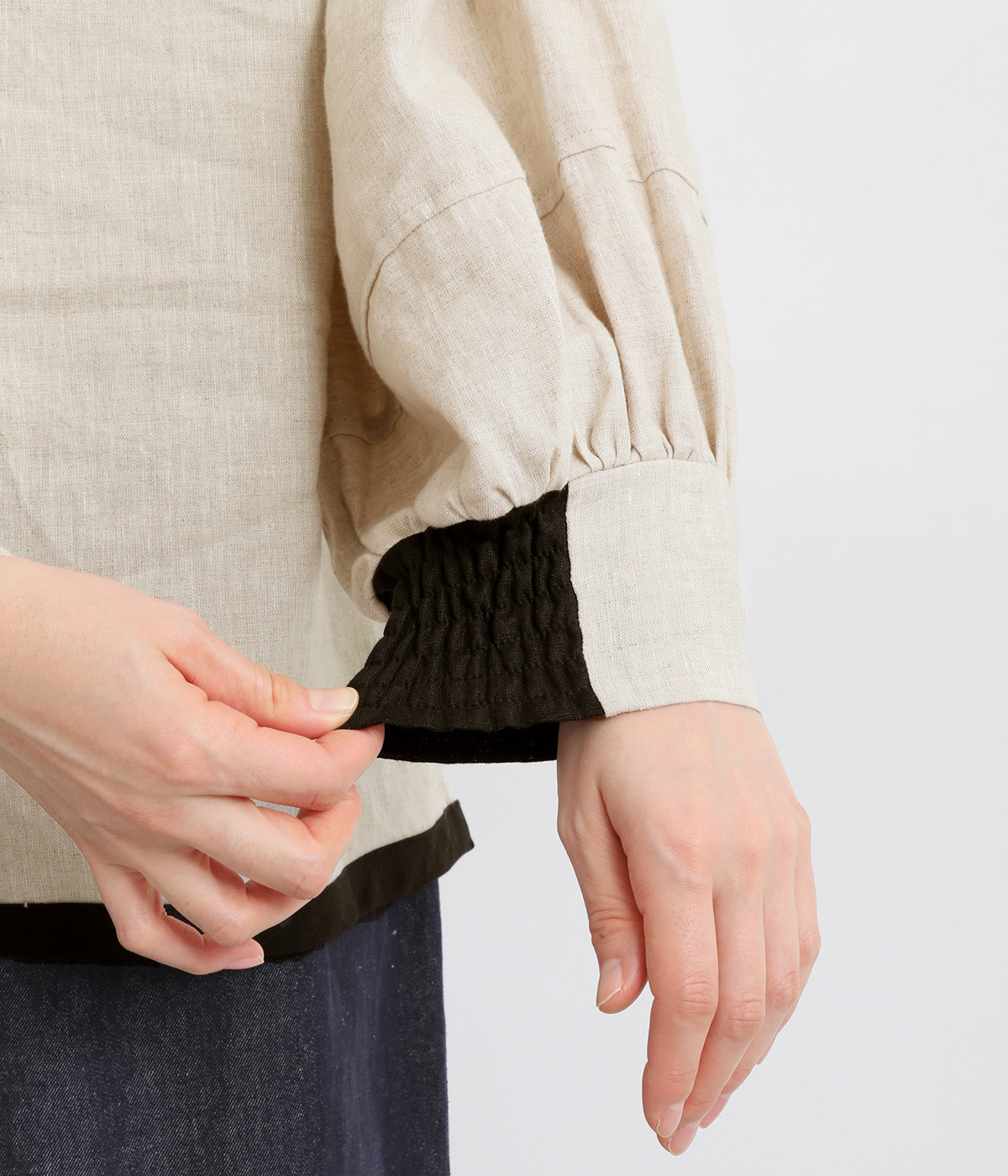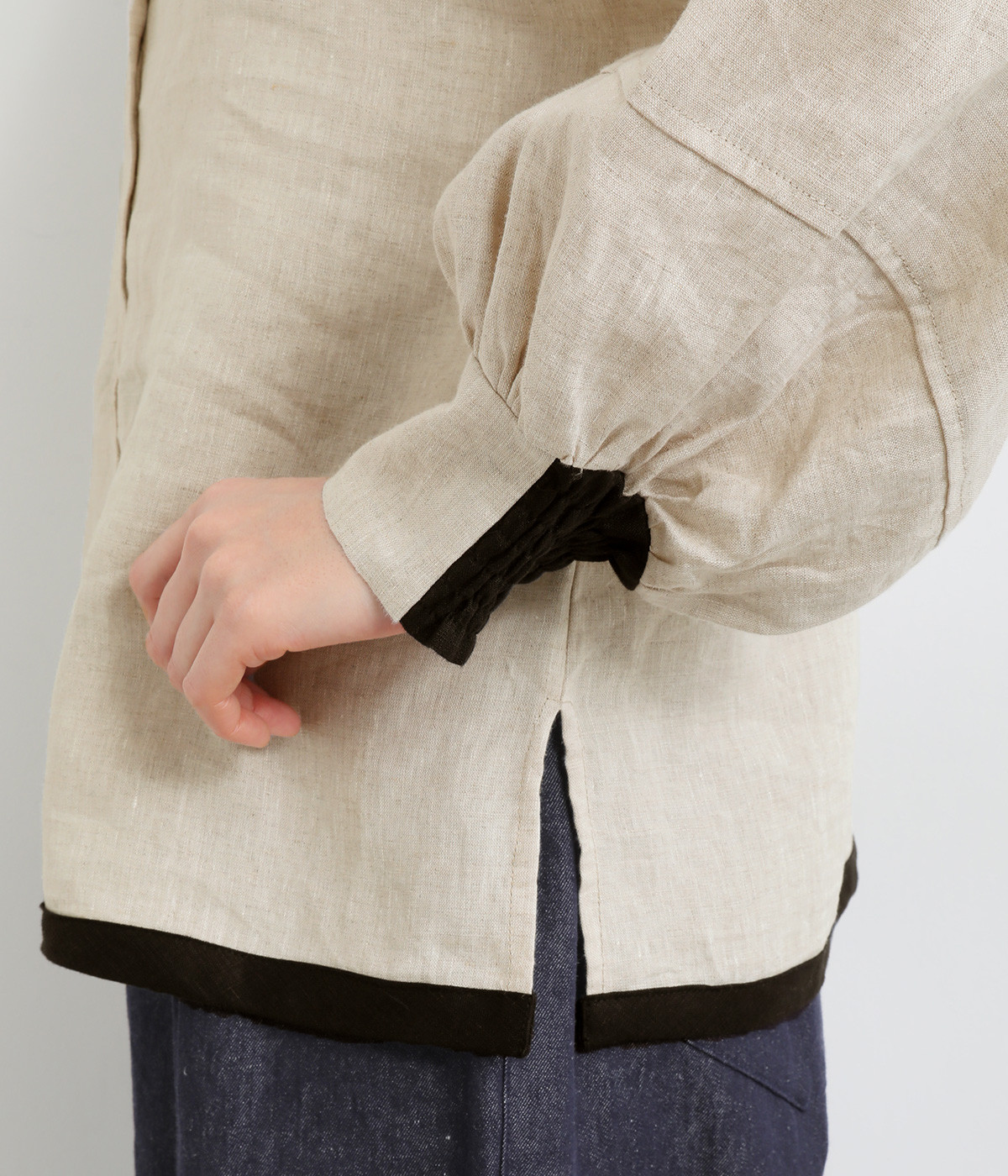 袖口は反面ゴムシャーリングでたくし上げもおすすめ
