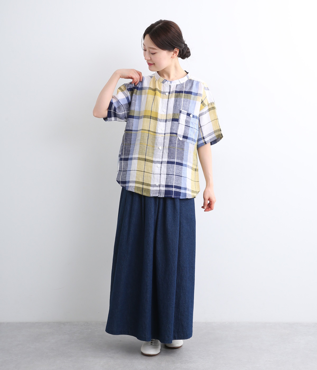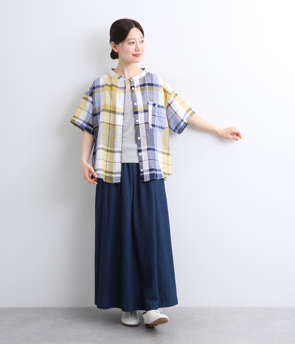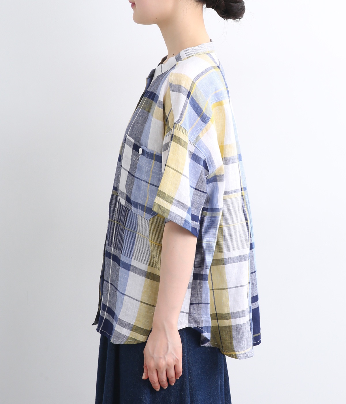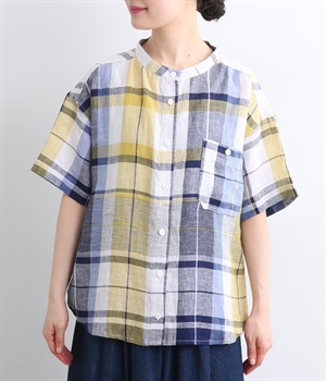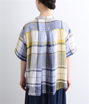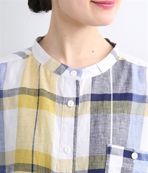 【素材】薄手でほどよいハリ感のあるリネン生地を使用。ドライな肌触りと優れた通気性で、汗ばむ季節もさらっと快適な着心地をキープします。【デザイン】差し色が映える大柄チェックのシャツ。直線的なボックスシルエットに、後ろのインバーテッドプリーツが動きに合わせてふんわりと広がります。裾は緩やかなカーブを描き、軽やかな表情に。前をあけてさっと羽織れば、さりげないこなれ感が楽しめます。