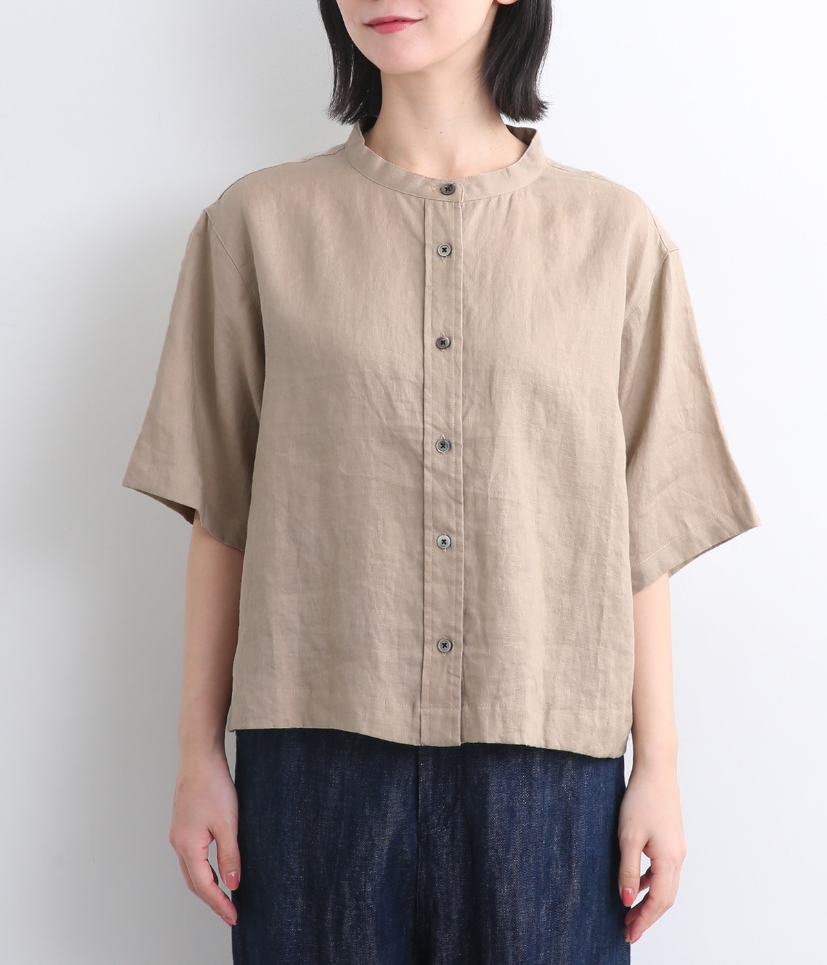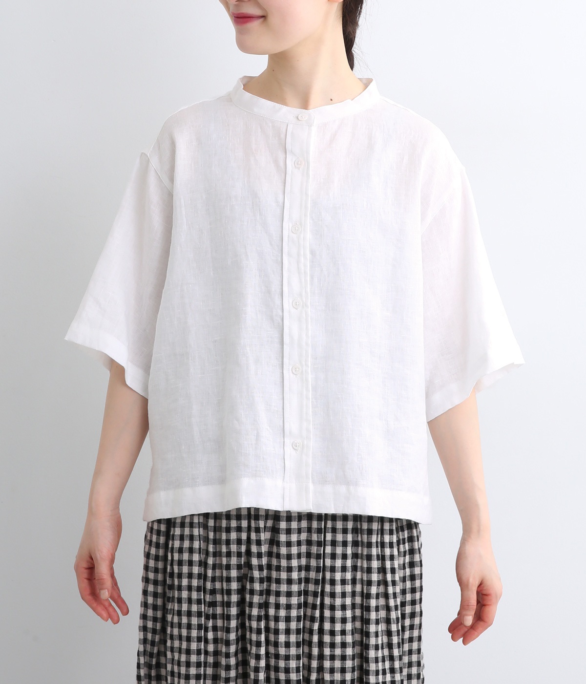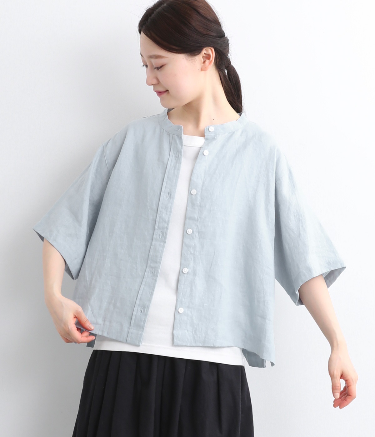 風が通り抜けるゆったりとしたつくりながらも、ラフになりすぎないほどよいフィット感に仕上げた半袖ブラウス。着丈はコンパクトにまとめ、さまざまなボトムと好相性に。さっと羽織るだけで、力の抜けた大人のリラックススタイルが完成します。