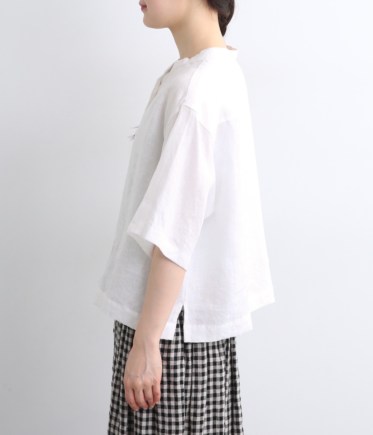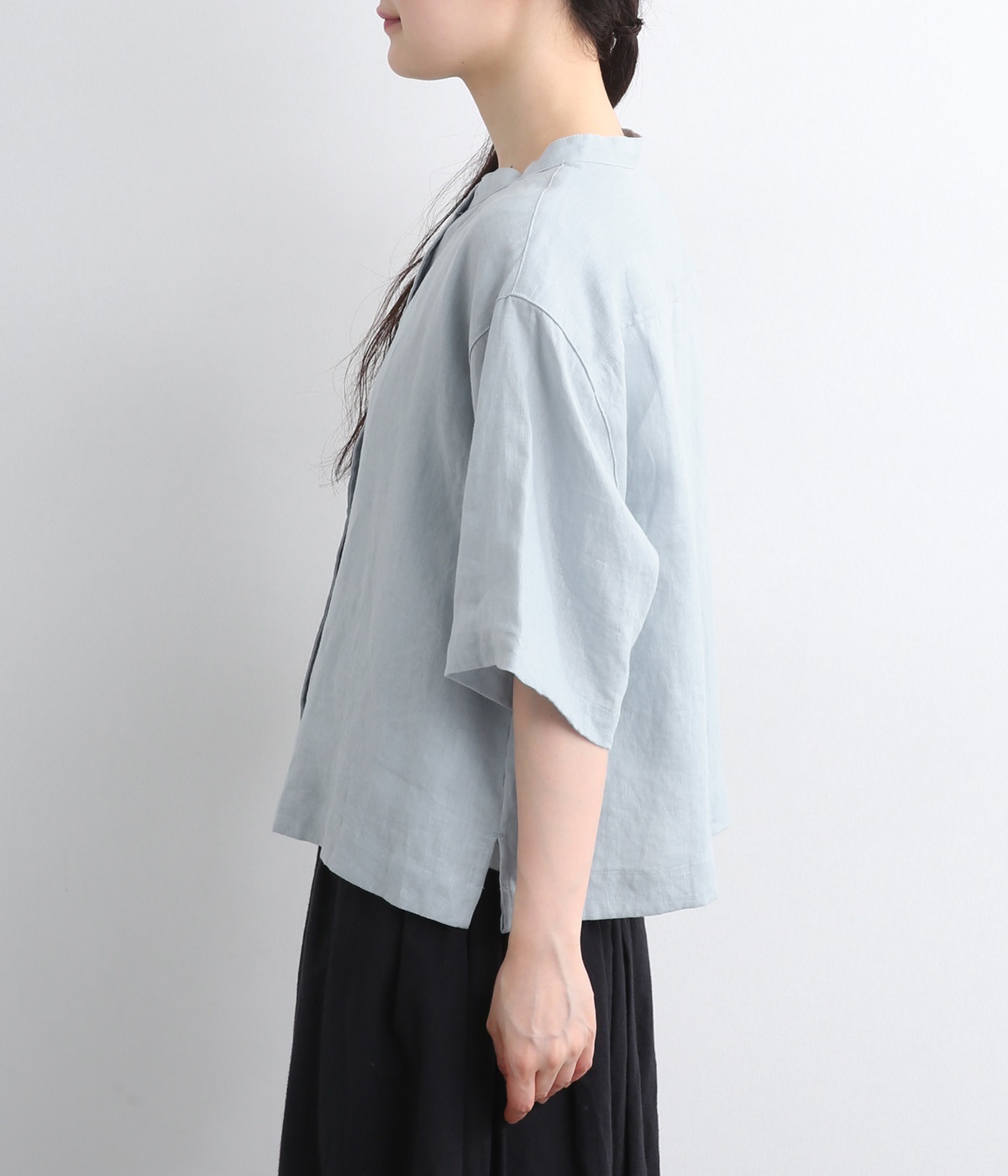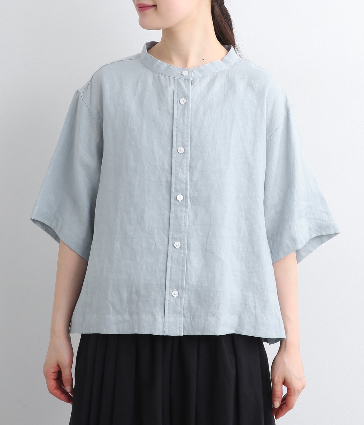 風が通り抜けるゆったりとしたつくりながらも、ラフになりすぎないほどよいフィット感に仕上げた半袖ブラウス。着丈はコンパクトにまとめ、さまざまなボトムと好相性に。さっと羽織るだけで、力の抜けた大人のリラックススタイルが完成します。