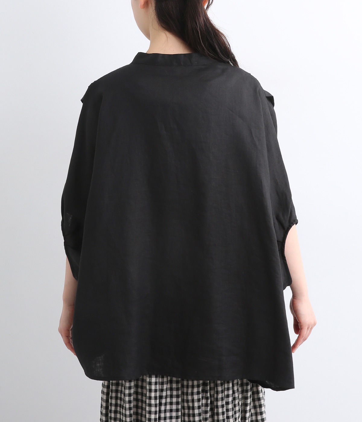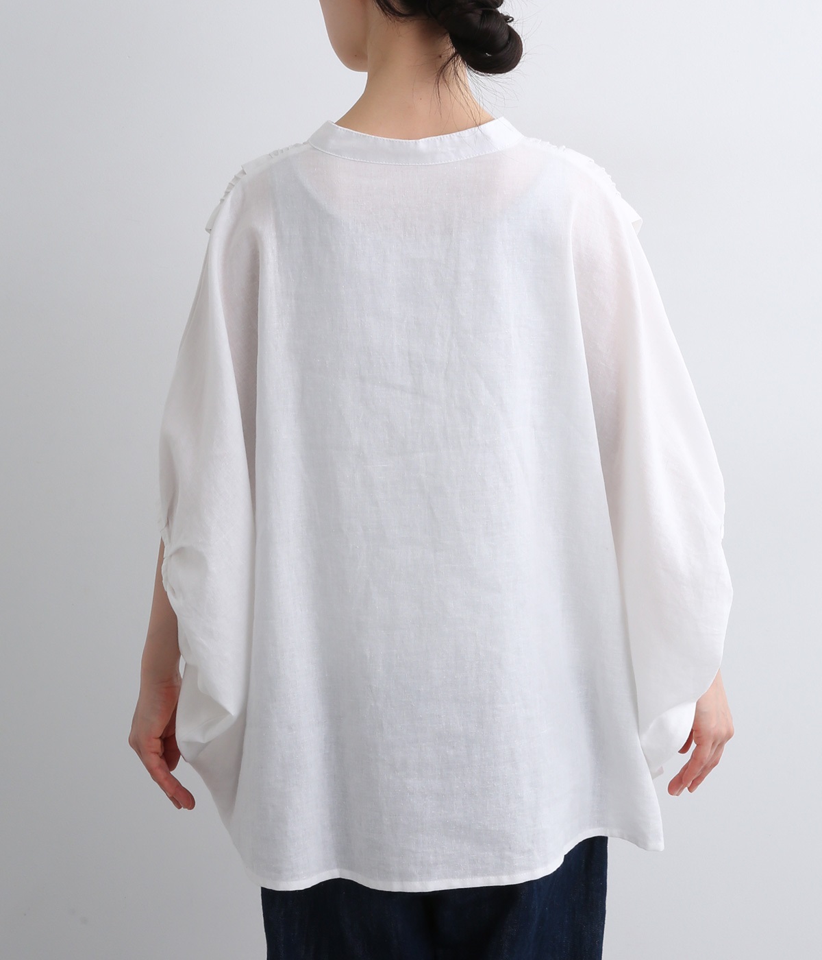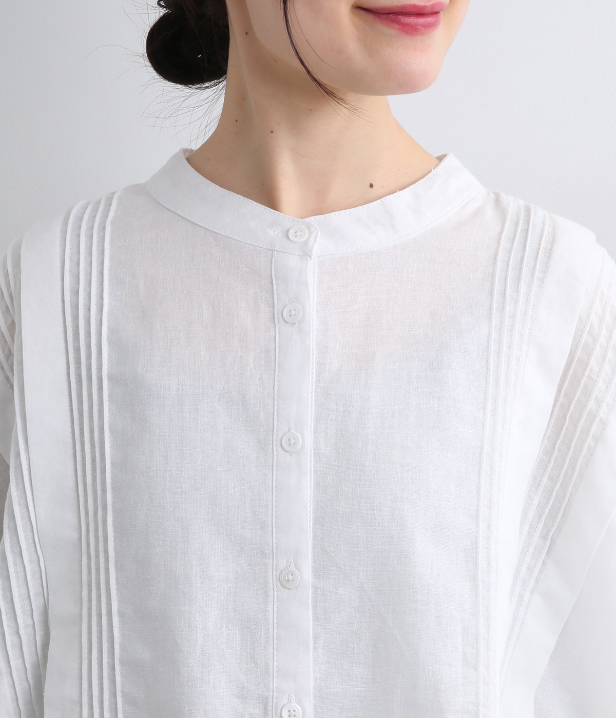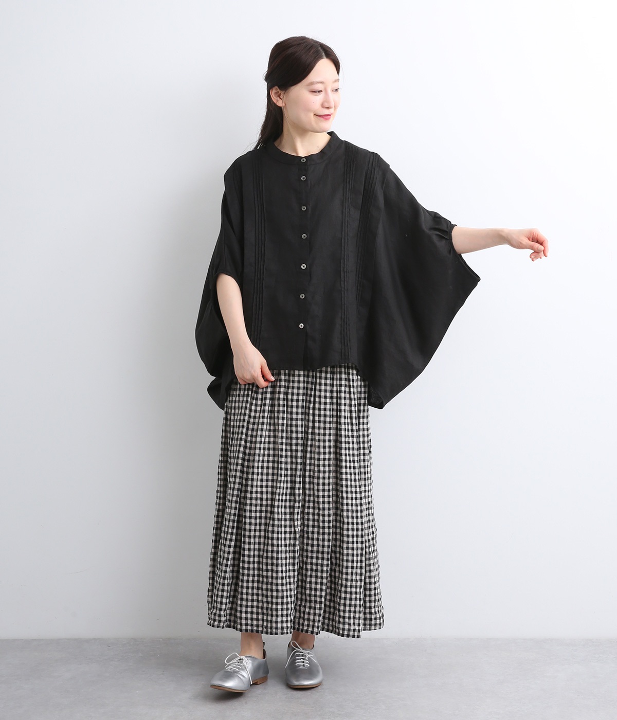 贅沢なワイドシルエットが魅力のブラウス。風が通り抜けるようなたっぷりとしたゆとりが、リラックス感を漂わせます。胸元には縦ラインを強調するピンタックをあしらい、表情に奥行きをプラス。コーディネートの主役になる存在感のある一枚です。