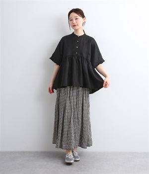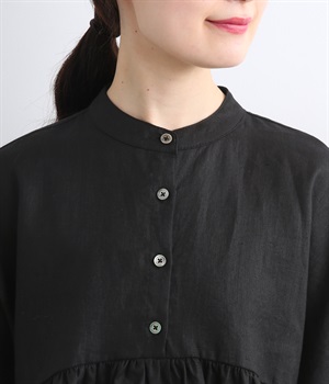 細番手のリネン糸で織り上げた、清涼感たっぷりの薄手素材。ほどよいハリとやわらかな光沢が特徴です。さらっとドライな質感で、汗ばむ季節でも快適な着心地です。