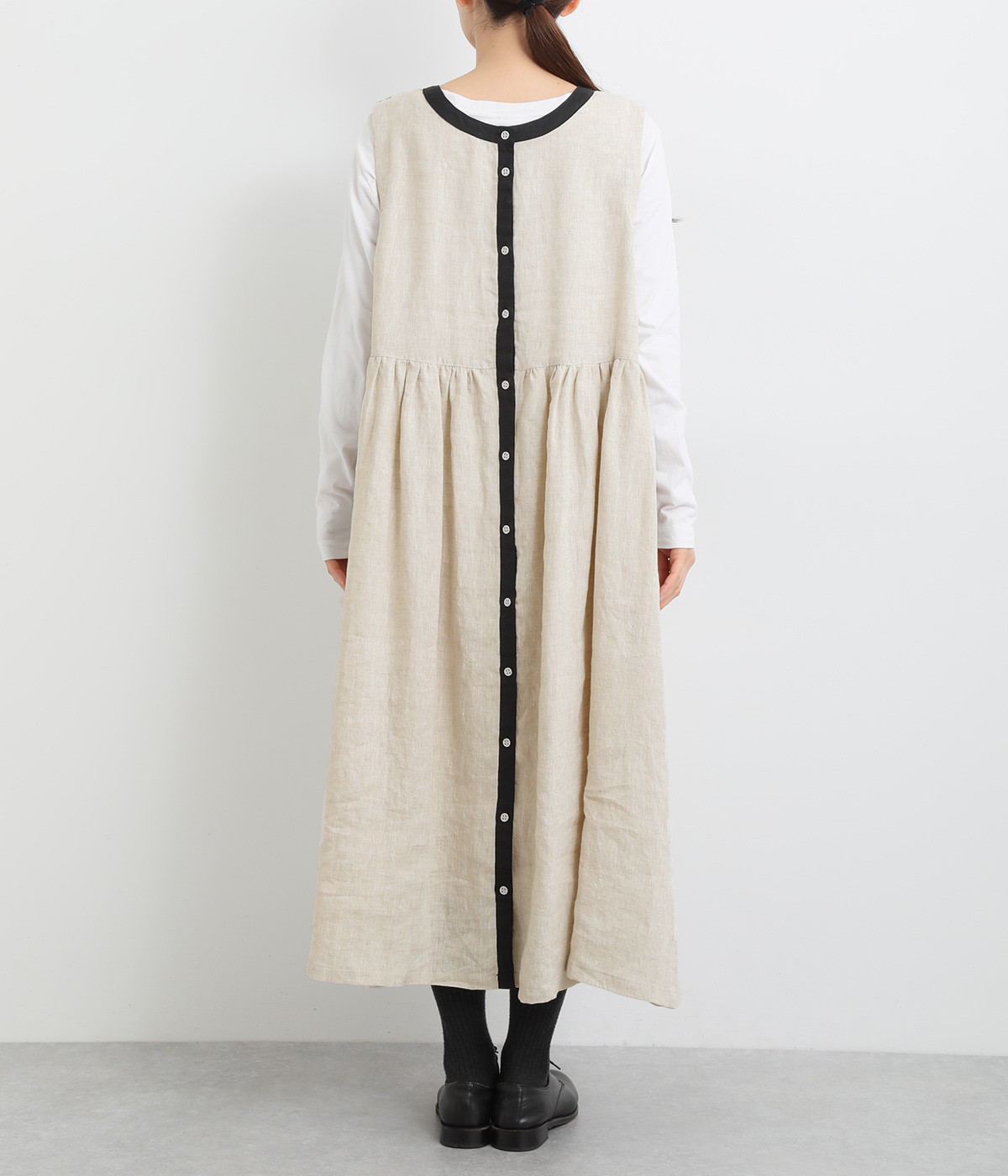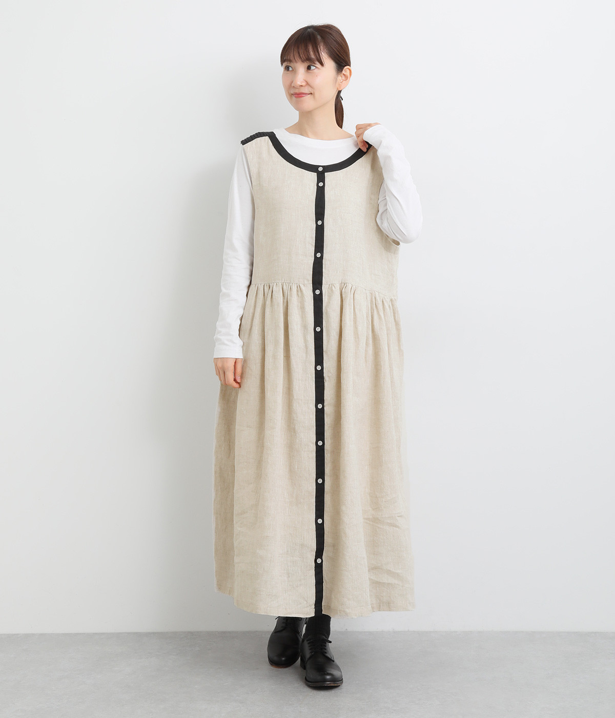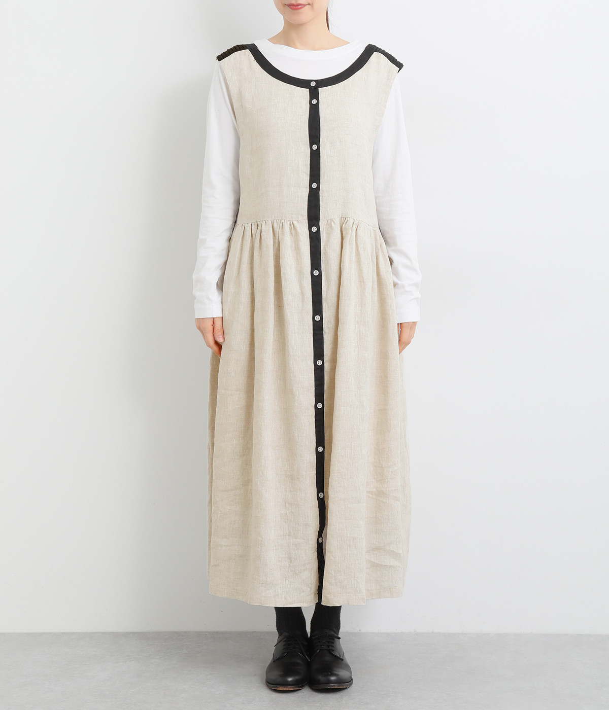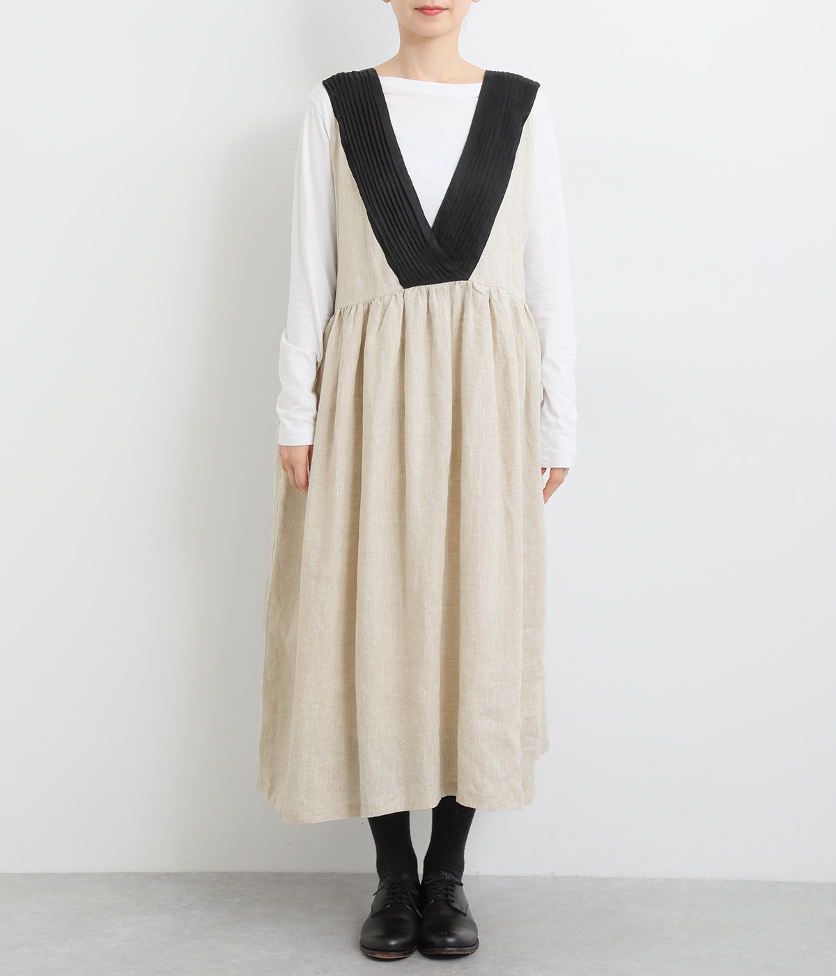 切り替えにギャザーを入れたゆとりのあるシルエット