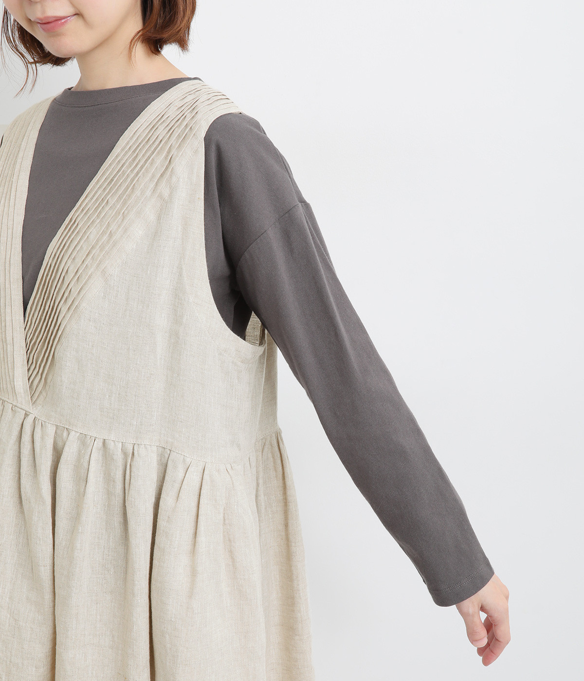 Vネックはピンタックを入れて印象的に