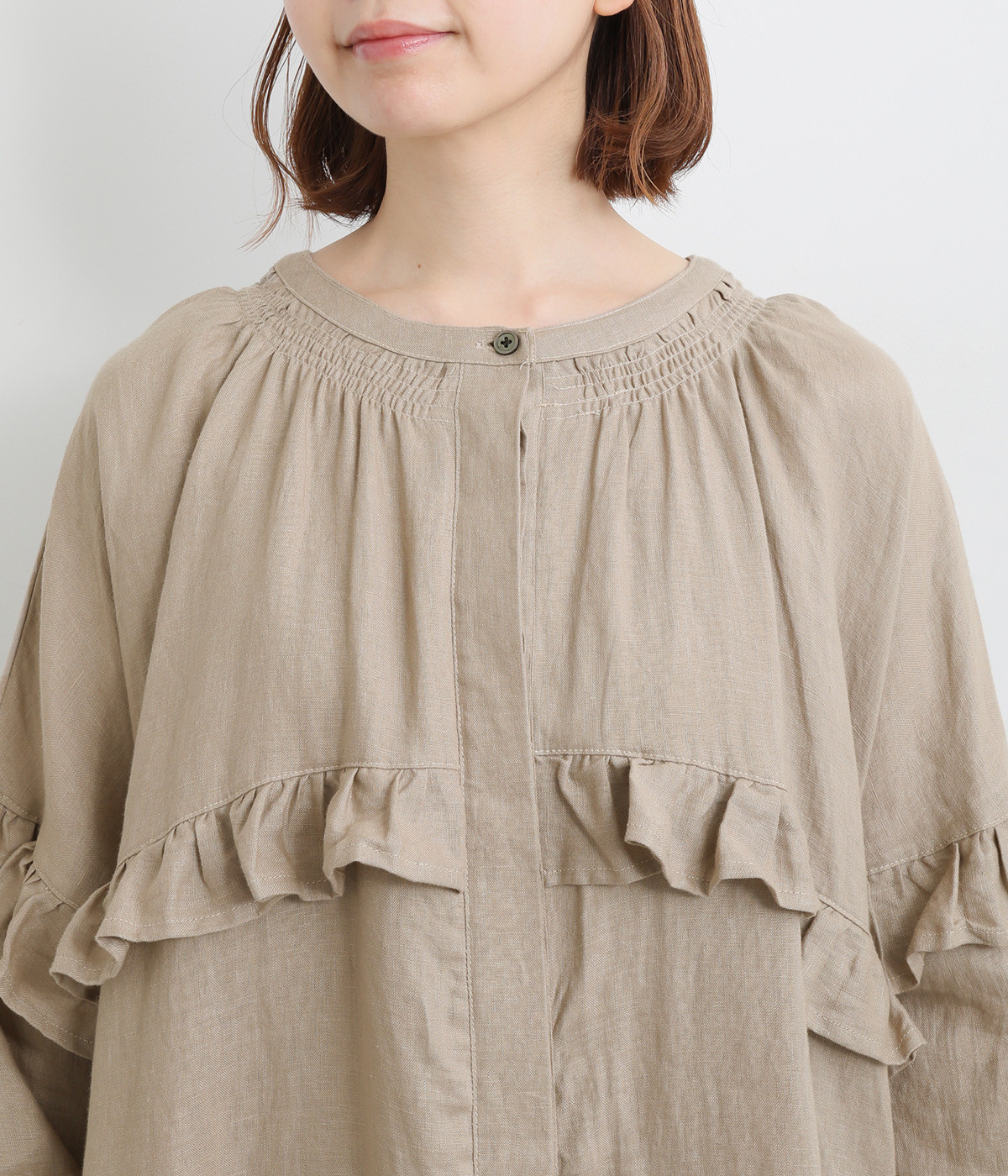 襟ぐりのピンタックがさり気ないニュアンスに