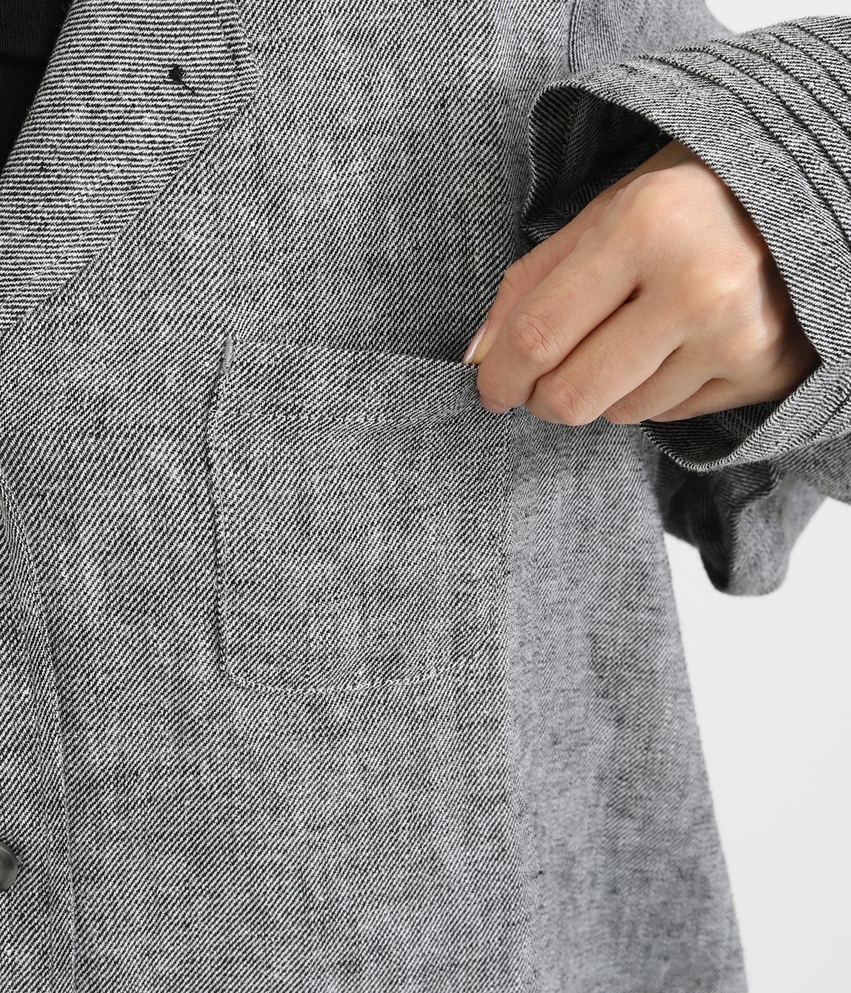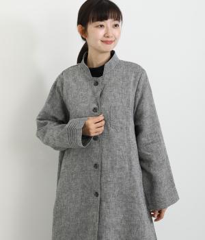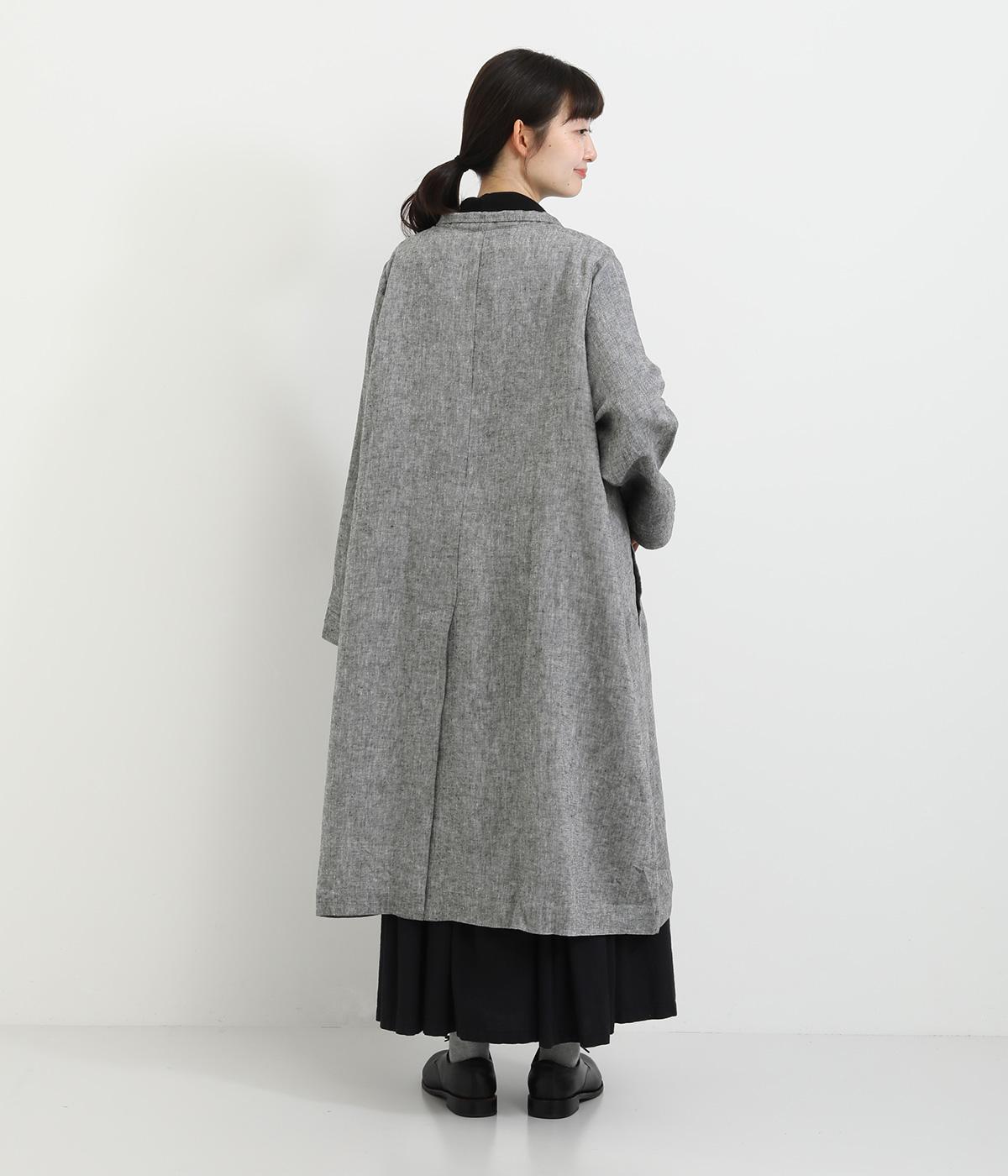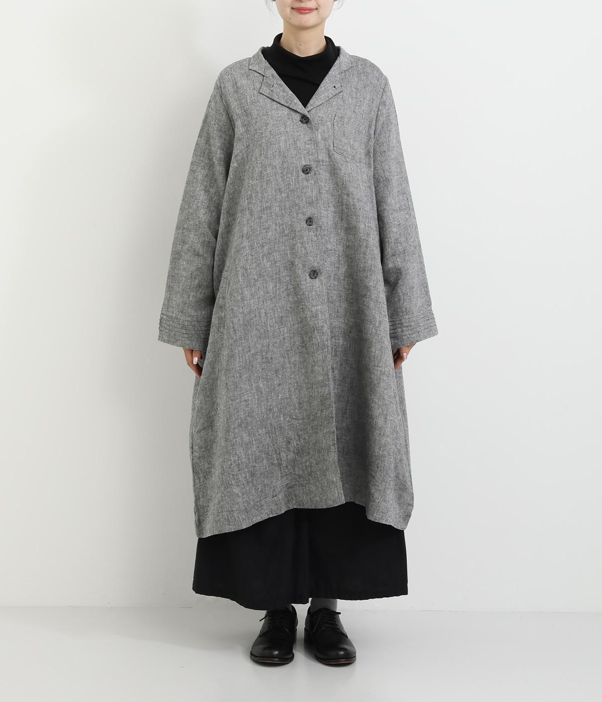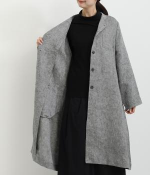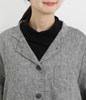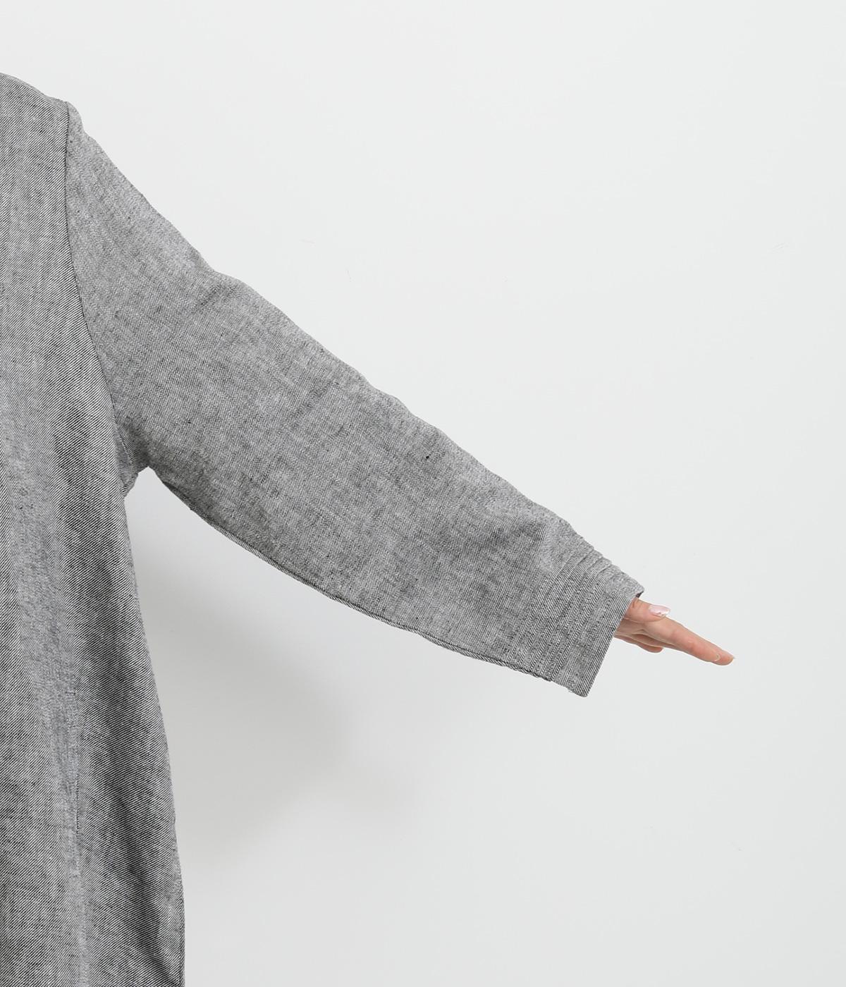 ほのかに霜降り感のある先染めシャンブレー生地を使用しました。リネンのほどよいハリが上品な雰囲気。軽やかでやさしい肌なじみの素材感です。