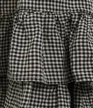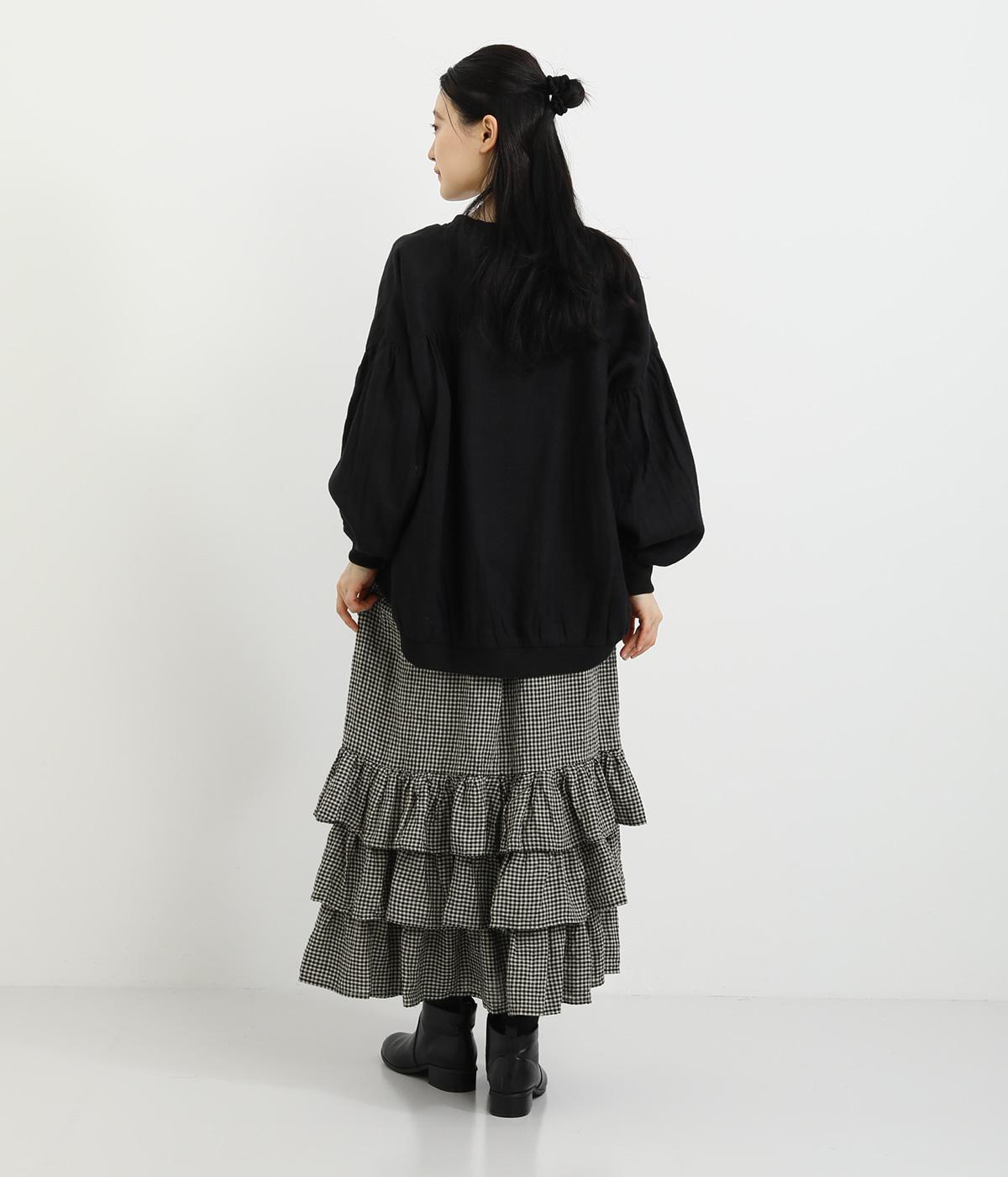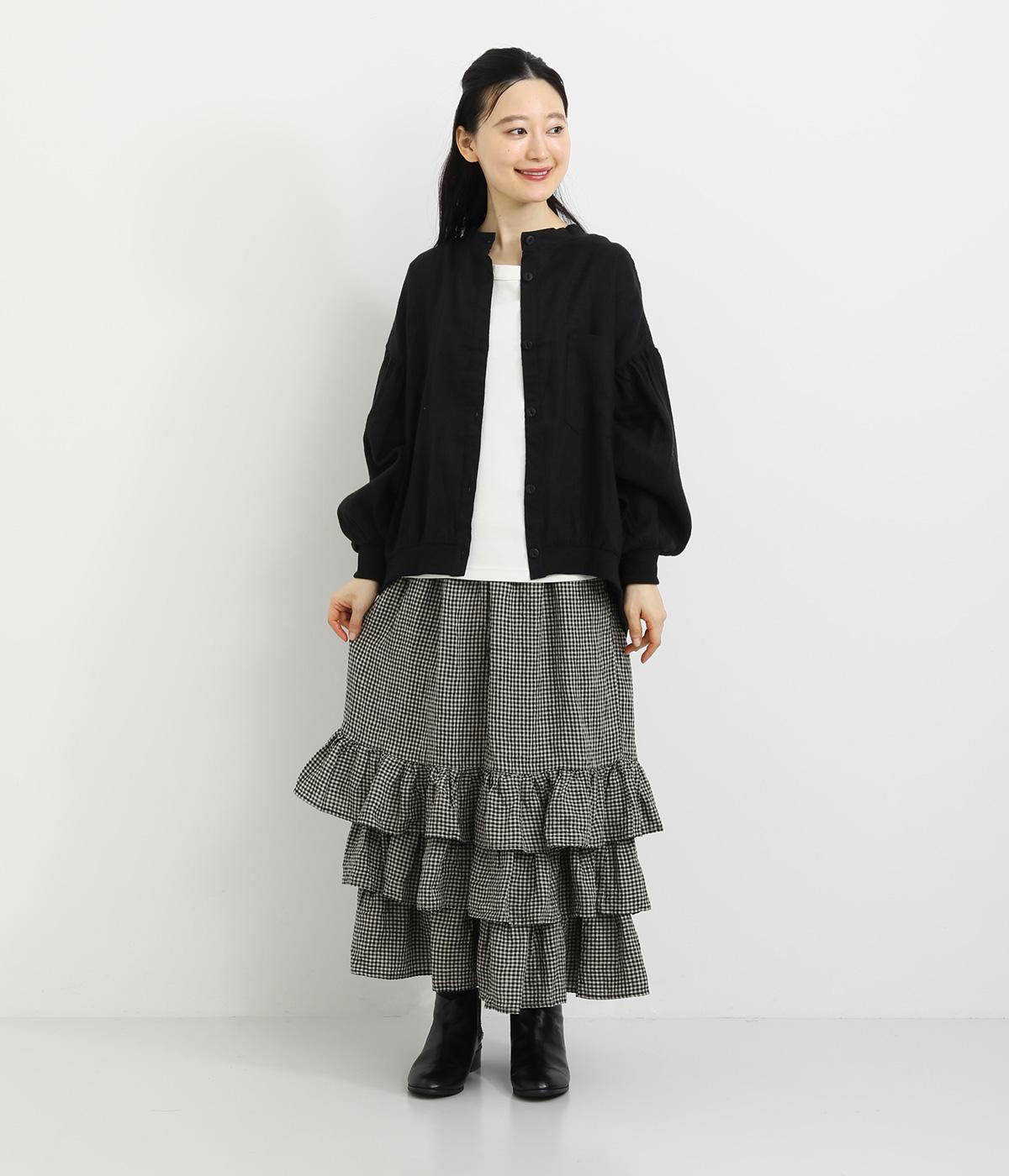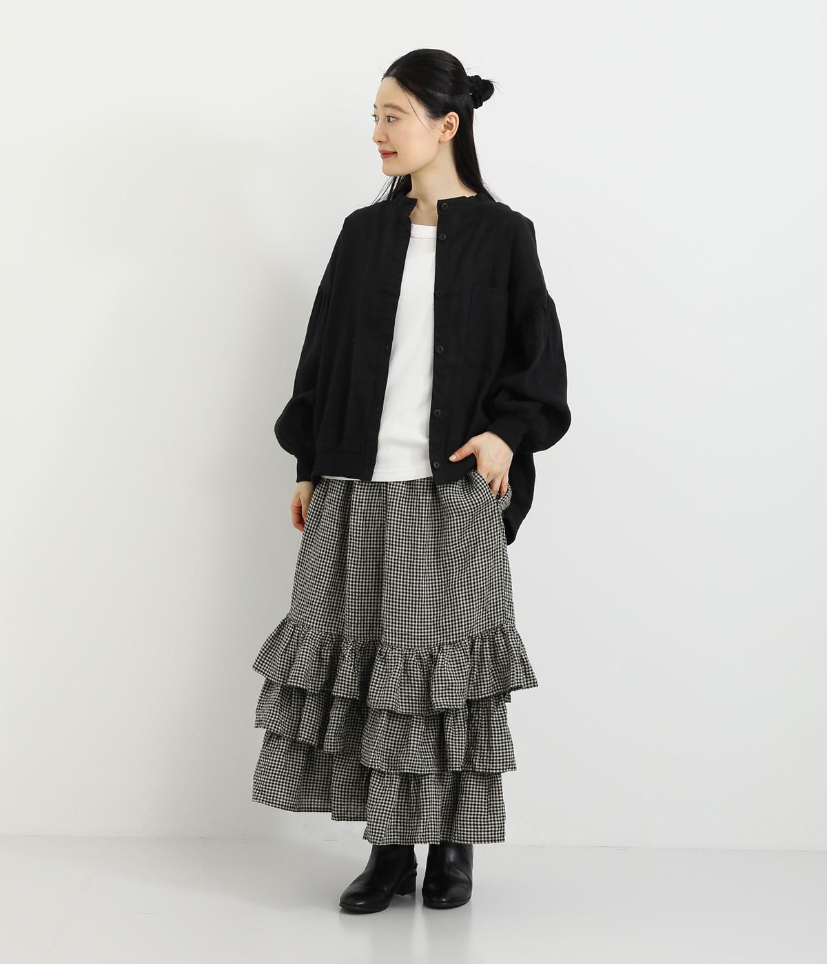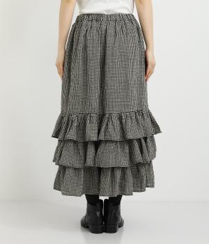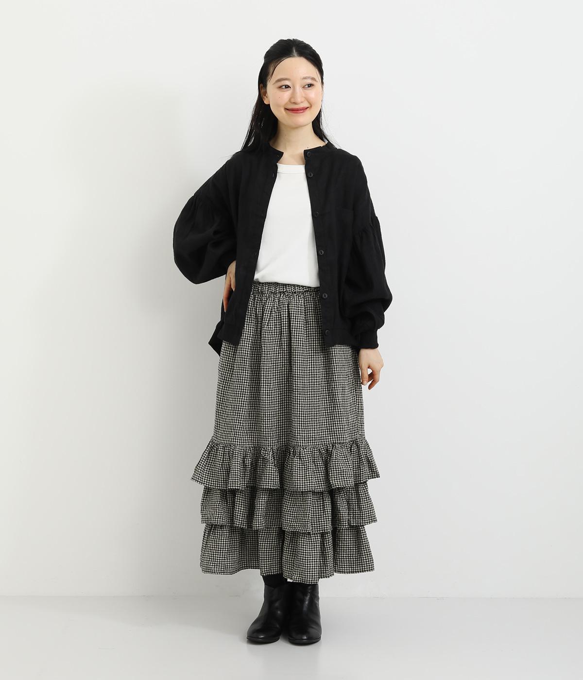 パッと華やかな印象を与えるティアードスカート。ナチュラルな素材感が甘さをほどよく中和しています。シンプルなトップスと合わせるだけでスタイリングが完成。ウエストは紐でサイズ調節が可能な総ゴム仕様。裏地つきで安心の穿き心地です。