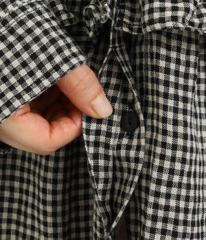 ネップのある自然な風合いのリネン生地を使用しました。リネン特有のほどよいハリが上品な雰囲気です。軽やかでやさしい肌なじみの素材感です。