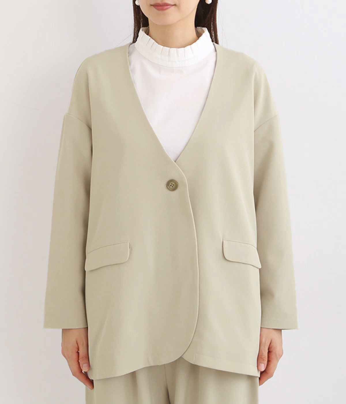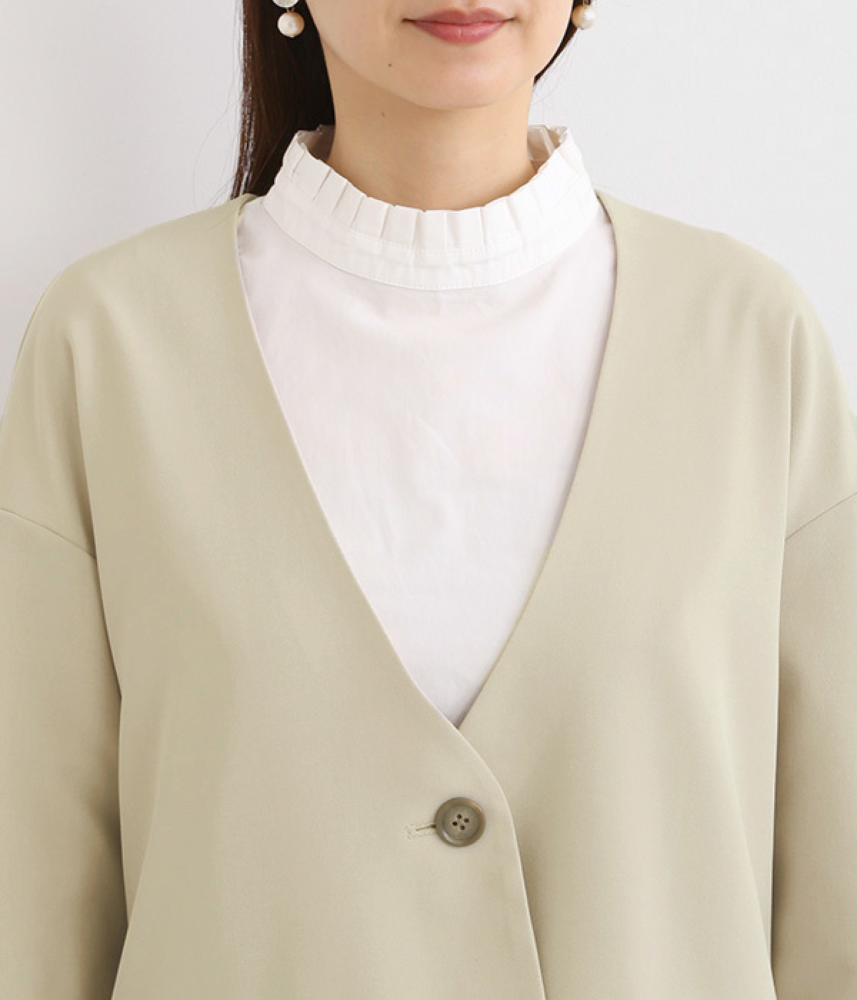 着こなしに洗練された印象をもたらすノーカラー