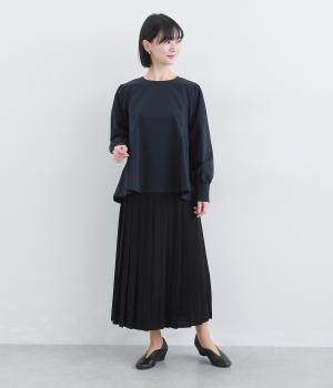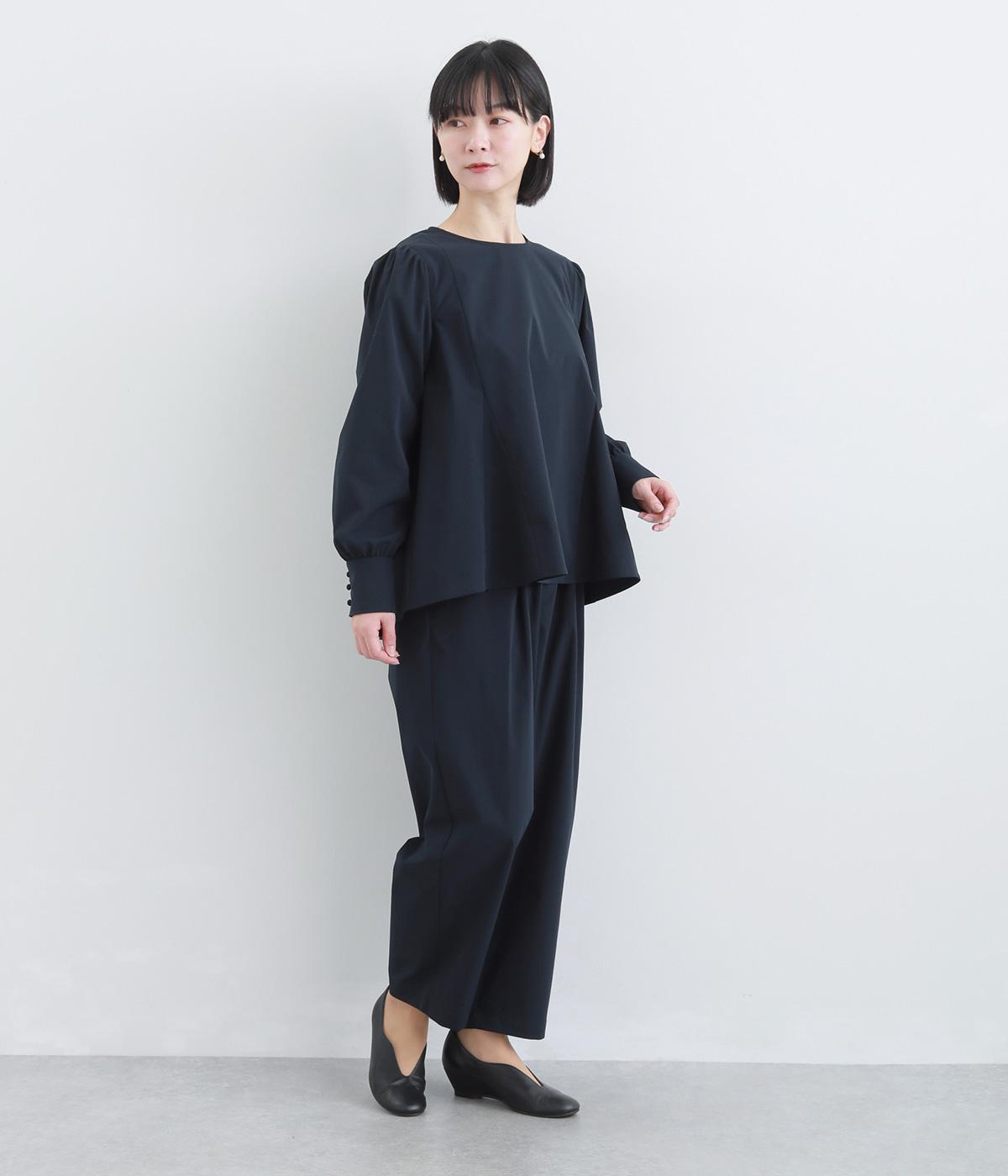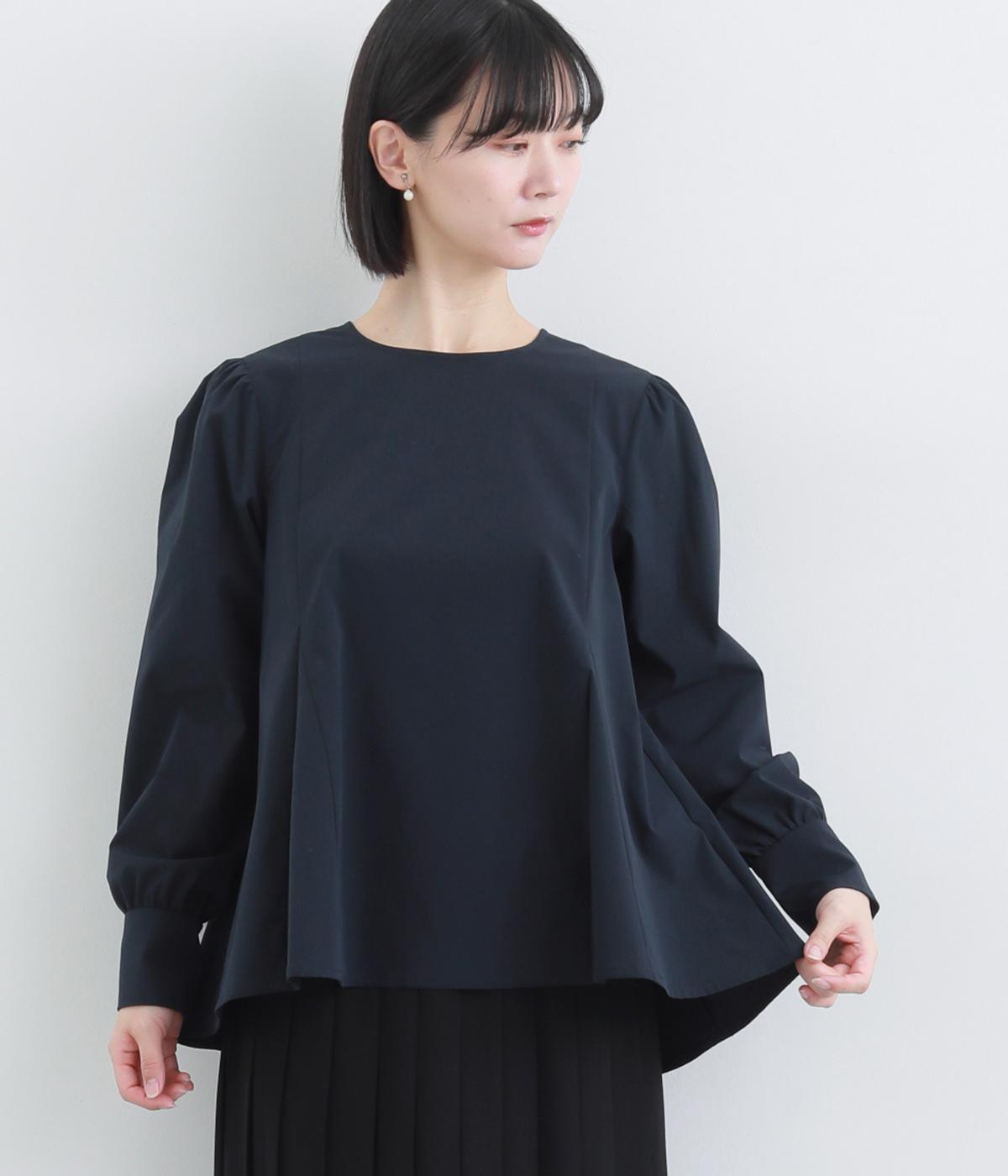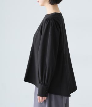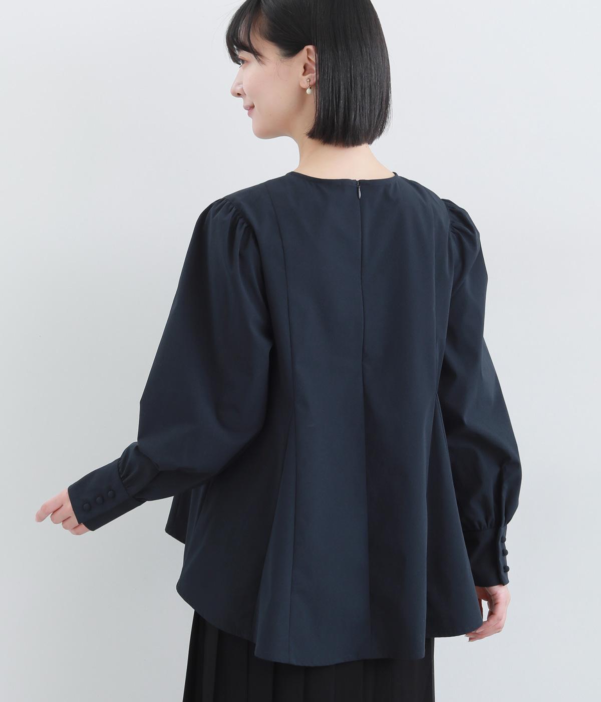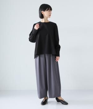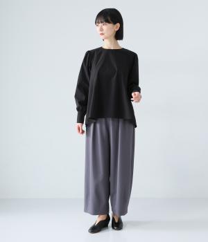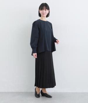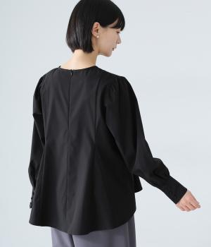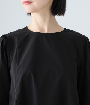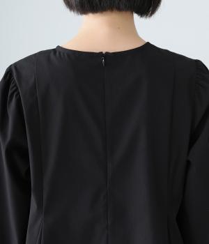胸下から広がる立体的なフレアシルエットが魅力のプルオーバー。肩や袖にギャザーをほどこし、女性らしさを引き立たせました。くるみボタンをつけた長めのカフスでクラシカルな印象に。大きく開く背中のファスナーが着脱をアシストします。