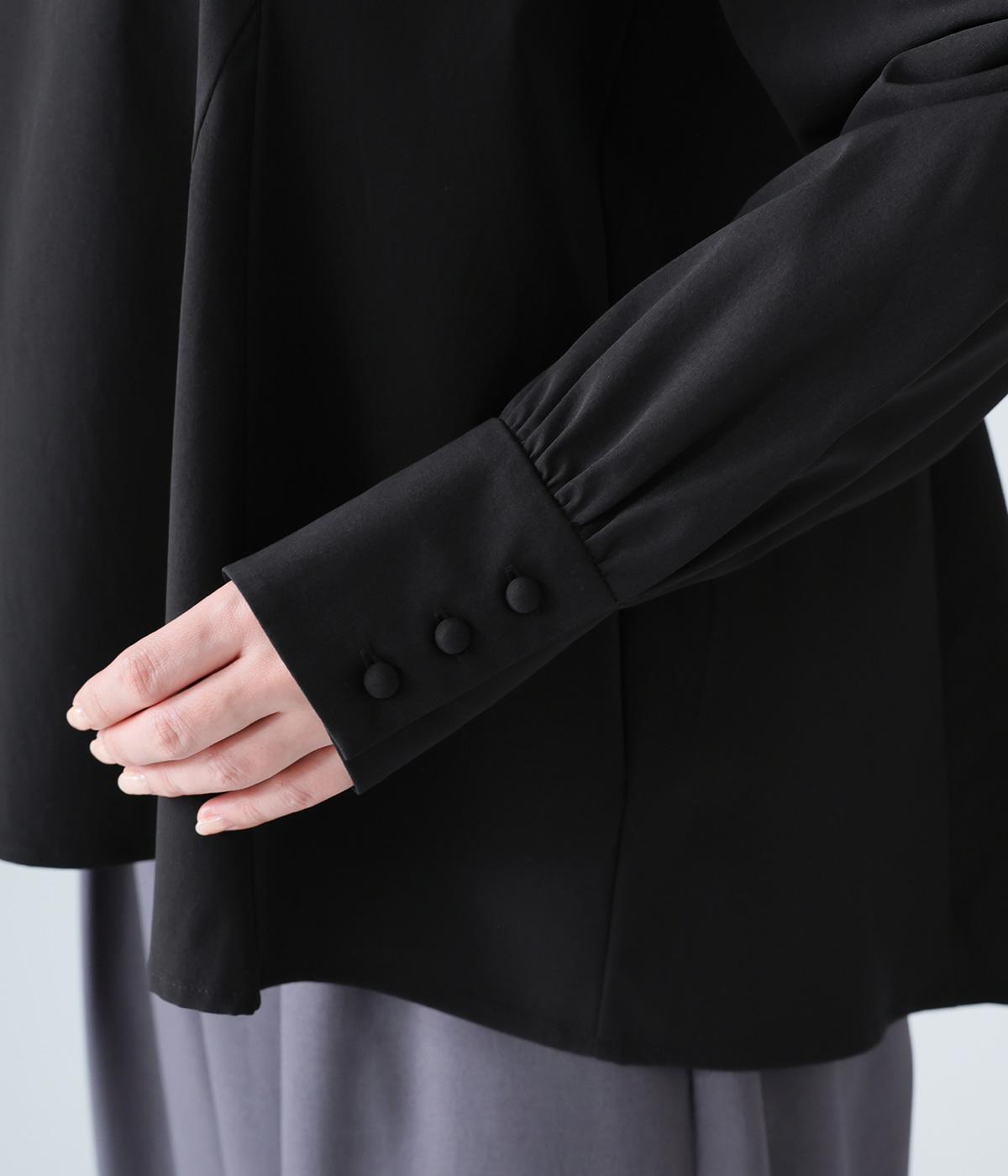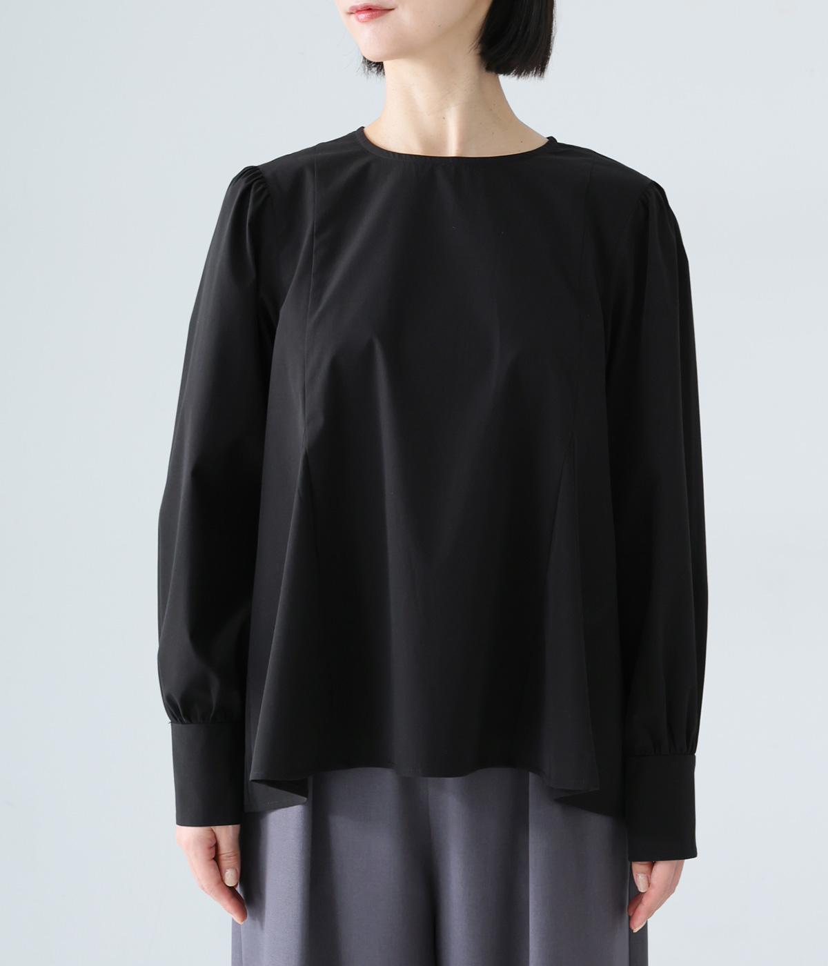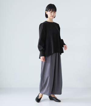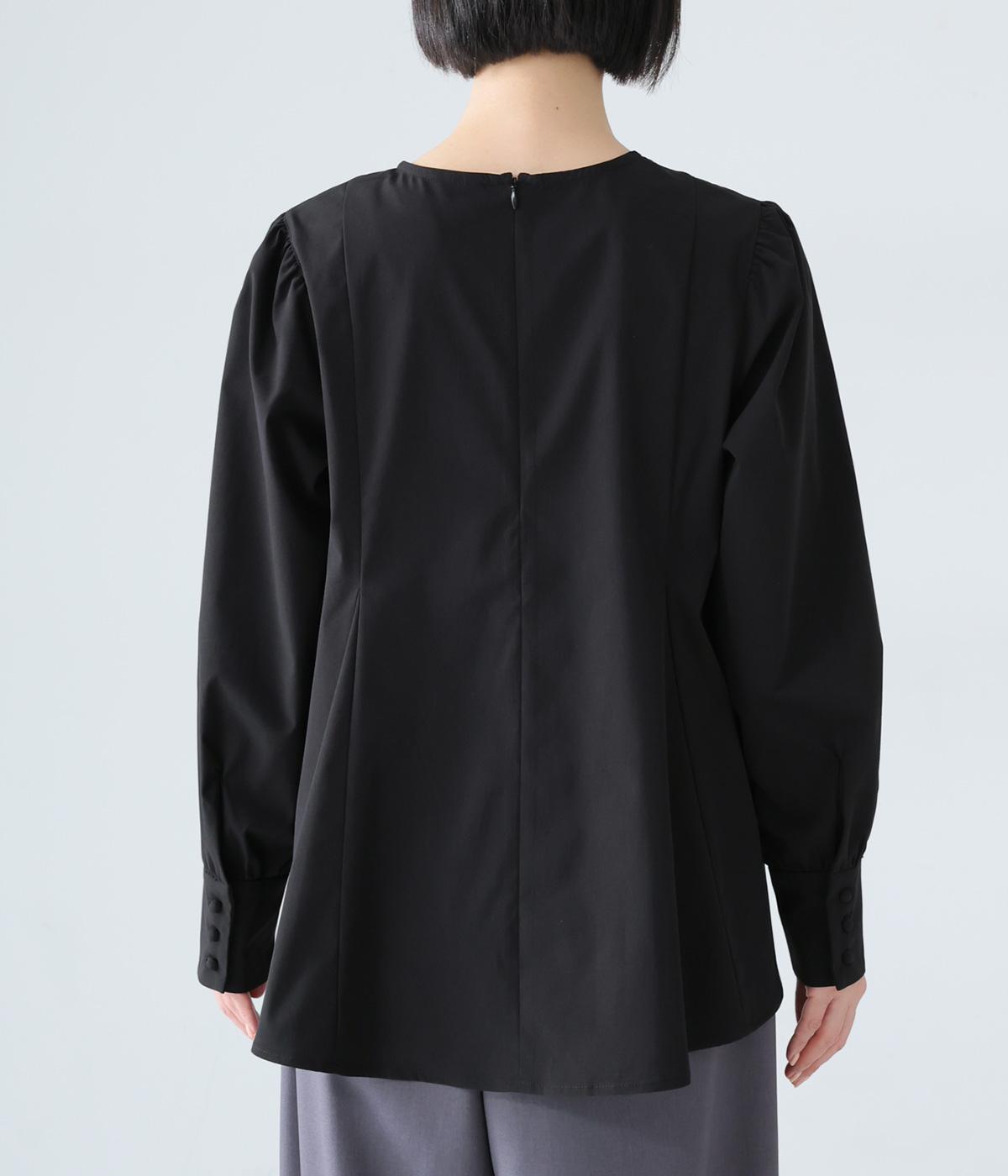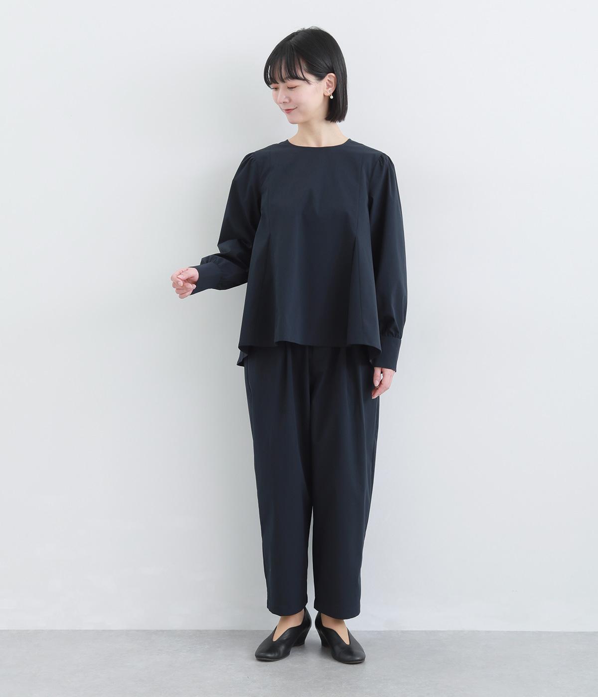 胸下から広がる立体的なフレアシルエットが魅力のプルオーバー。肩や袖にギャザーをほどこし、女性らしさを引き立たせました。くるみボタンをつけた長めのカフスでクラシカルな印象に。大きく開く背中のファスナーが着脱をアシストします。