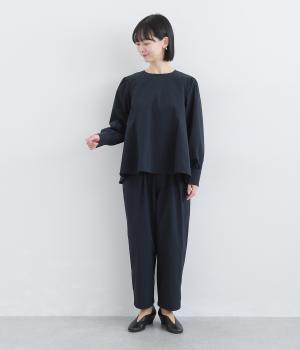 密度高く織りあげられた、さらりとした肌触りの生地を使用しています。ほどよいハリ感がシルエットを美しくキープ。軽くてストレッチがきいており、ストレスフリーな着心地を叶えます。