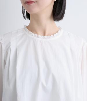 しなやかなハリが特徴のコットンブロード生地を使用しています。ソフトな肌あたりが心地よく、ナチュラルなシワ感がやさしい雰囲気の素材感です。