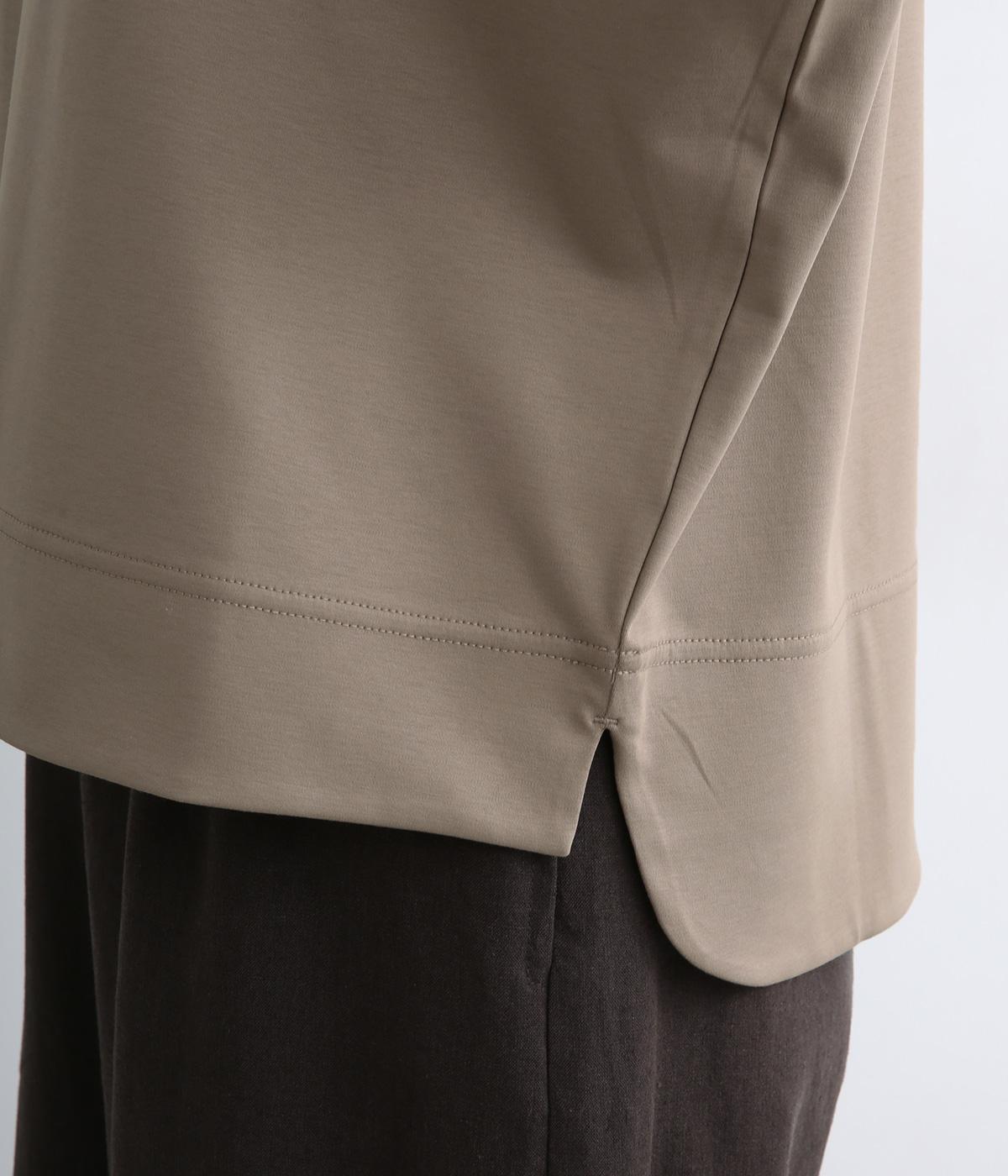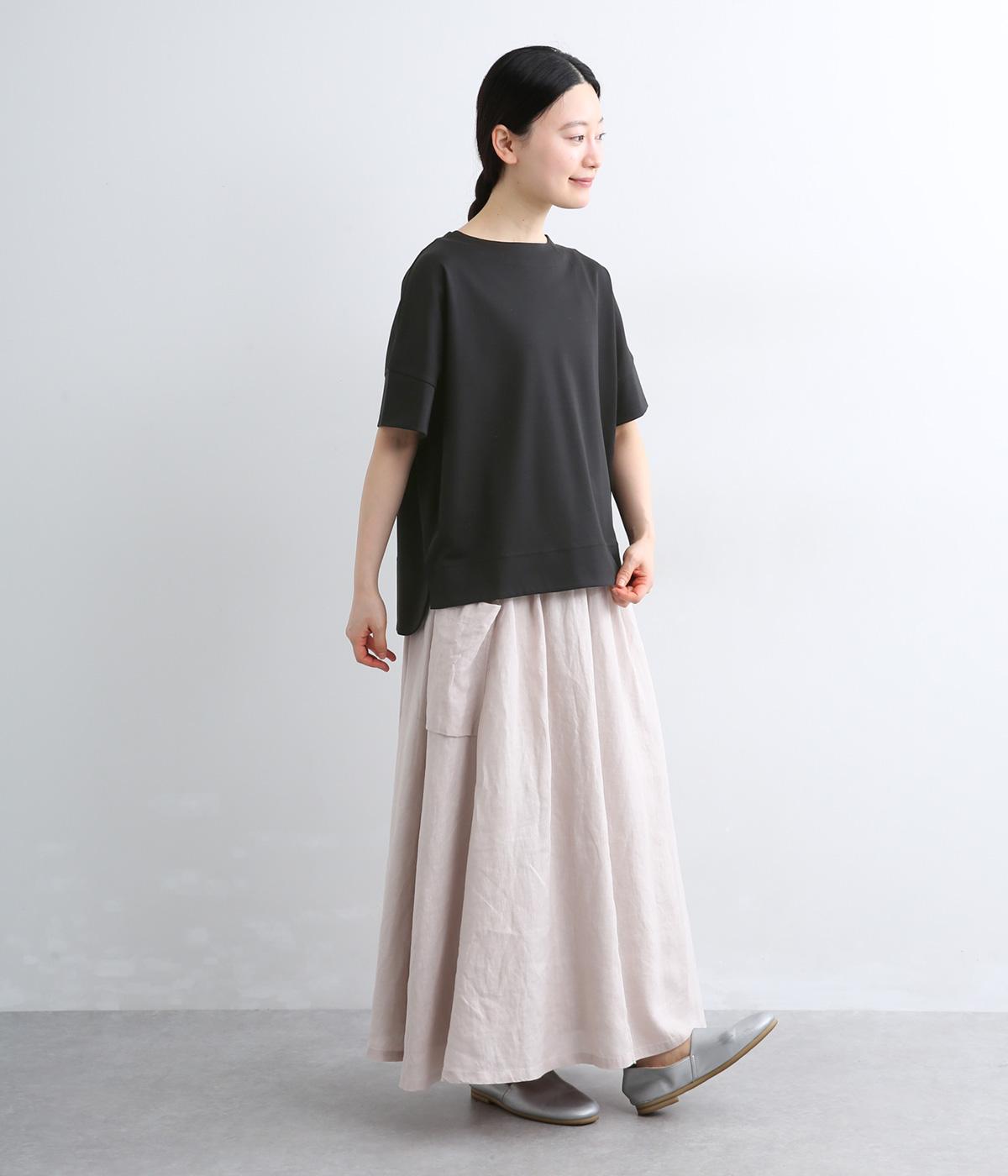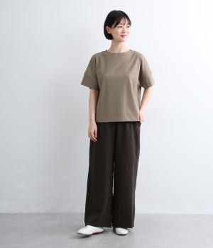 するりとなめらかな肌ざわりが心地よい、フライス素材を使用。伸縮性があり、動きに合わせてやさしくフィットします。ほのかな光沢感がきれいめな雰囲気をプラス。ほどよい厚みで、ロングシーズン活躍する生地感です。