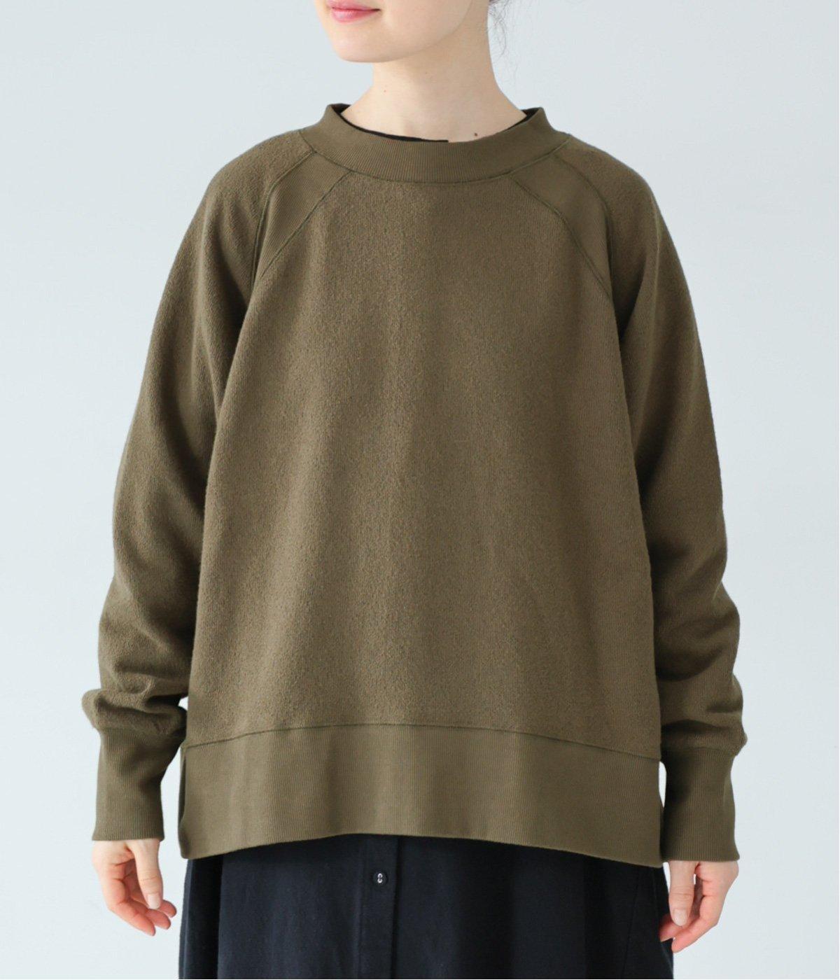 詰まりすぎないゆるめのモックネックが、ほどよい抜け感を演出。ゆったりとしたボックスシルエットにアクセントを添える、ラグランスリーブのリブ切り替えもポイント。