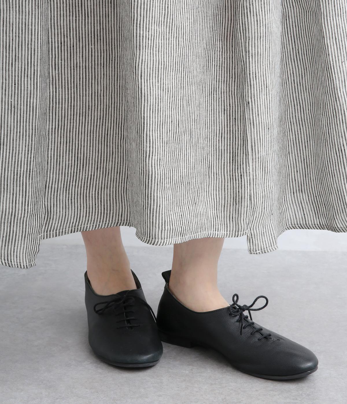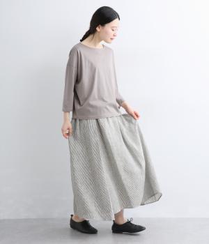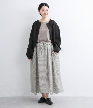 シャリっとしたドライな肌ざわりが特徴の、リネン素材を使用。ほどよいハリ感がありながらも、着るほどにやわらかくなじんでいきます。ネップのある素朴な表情が、ナチュラルで味わい深い雰囲気を引き立てます。