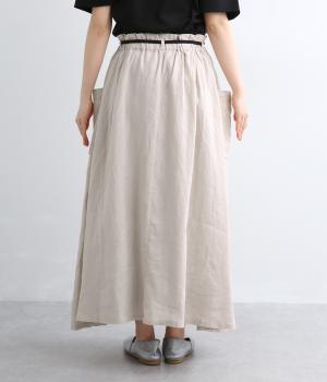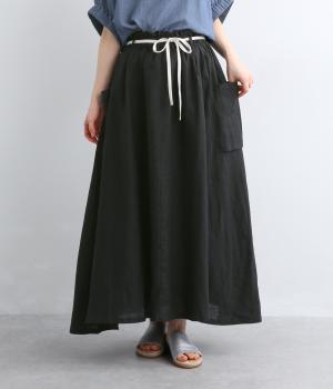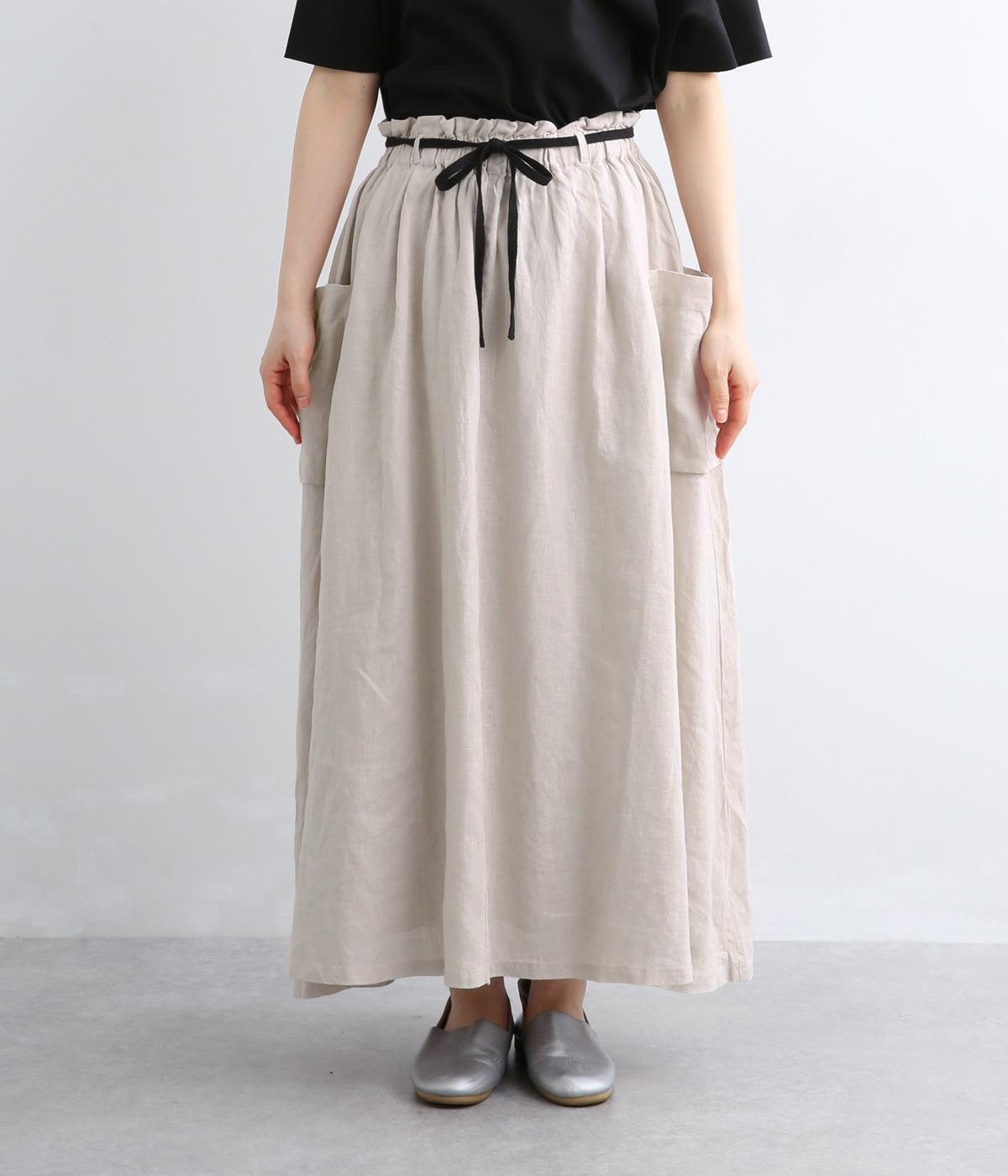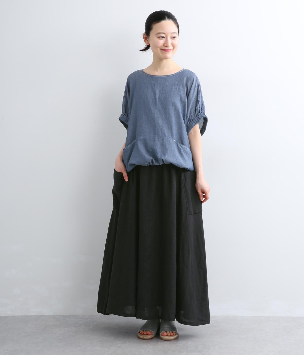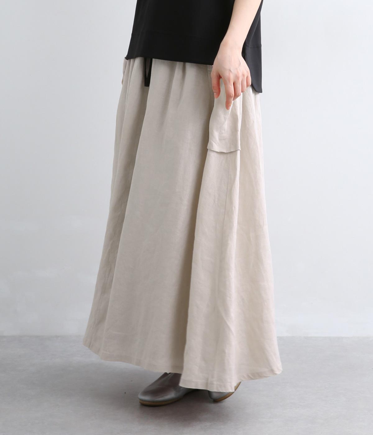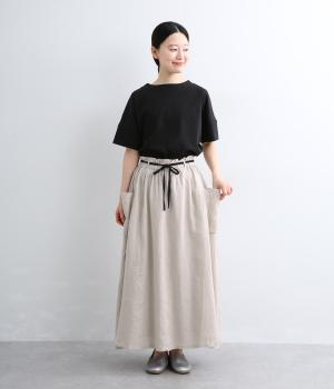 ハリのある生地にたっぷりとギャザーを寄せ、ふわりと広がる立体的なシルエットに仕上げました。サイドには存在感のあるパッチポケットを配し、ほどよいアクセントを添えています。ウエストの配色紐でアレンジも自在。裏地つきなので、安心してはけるのもうれしいポイントです。
