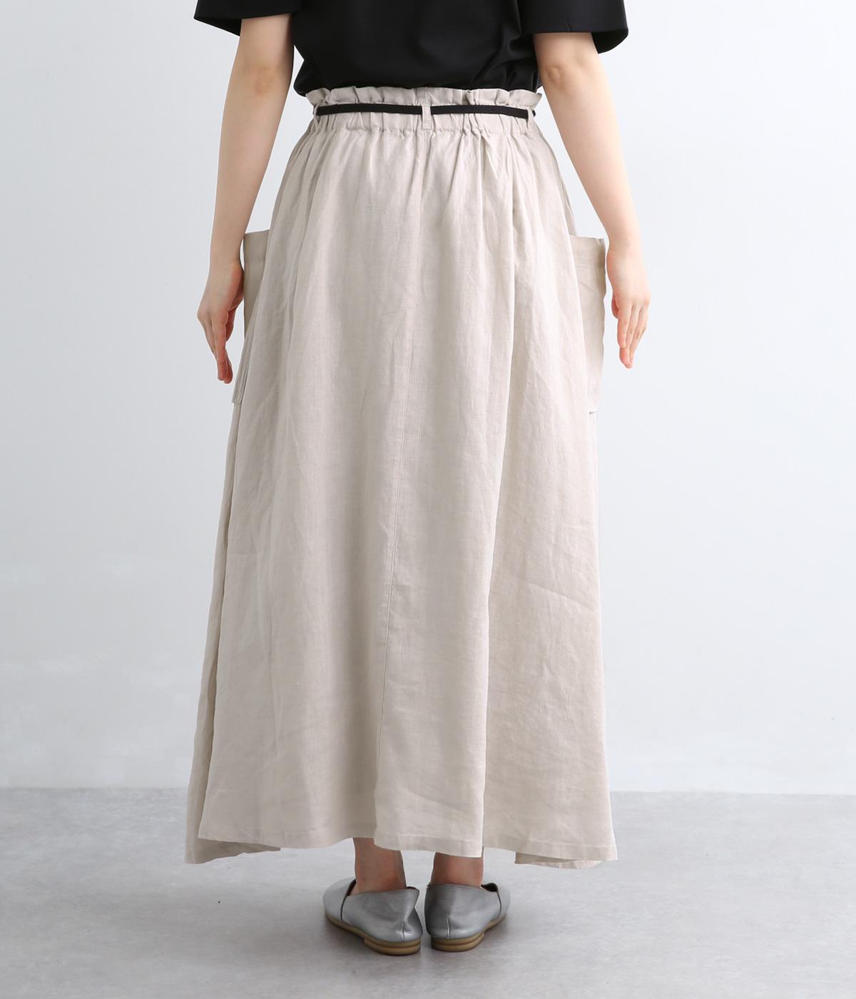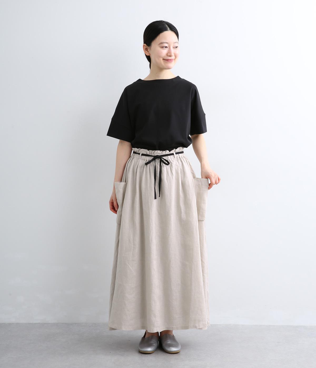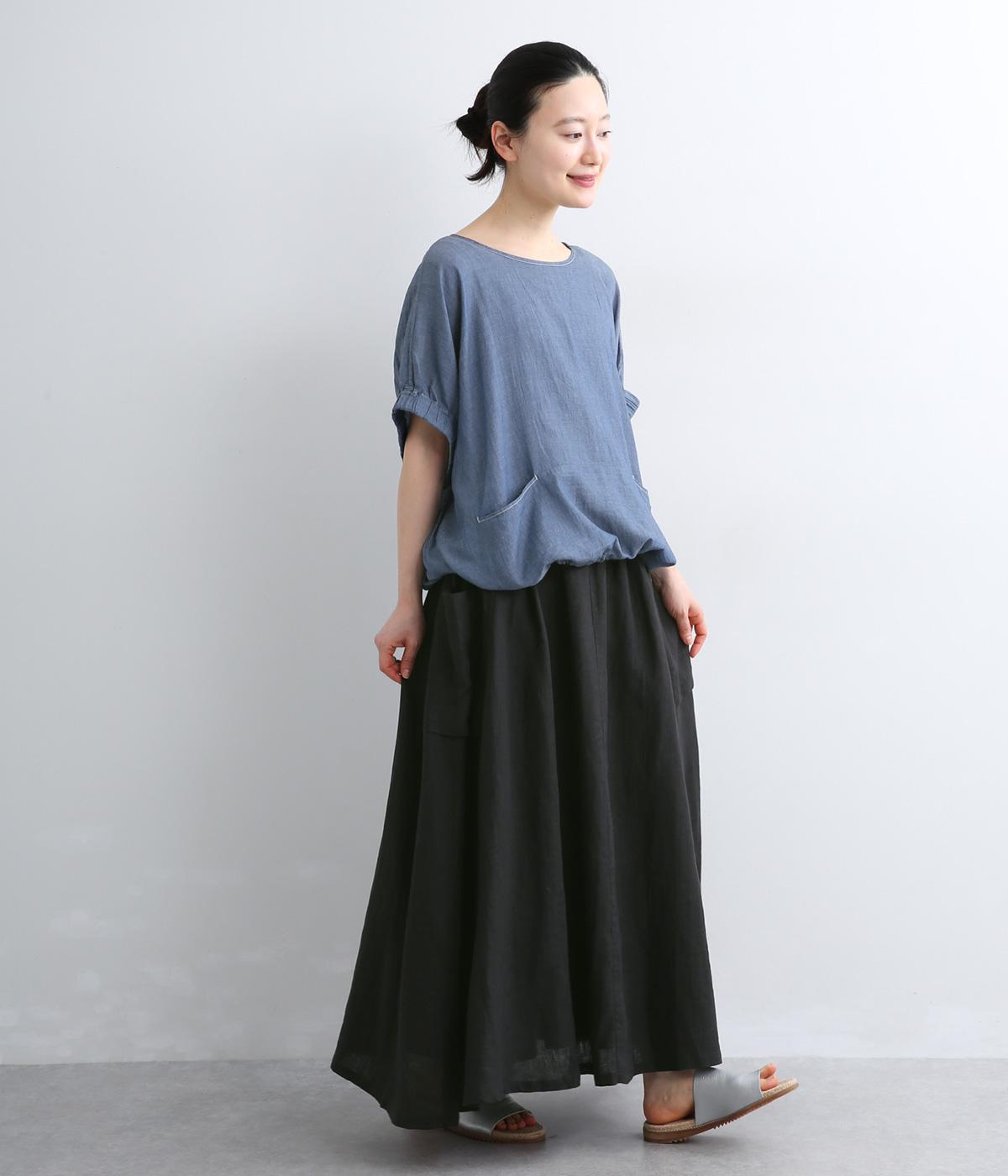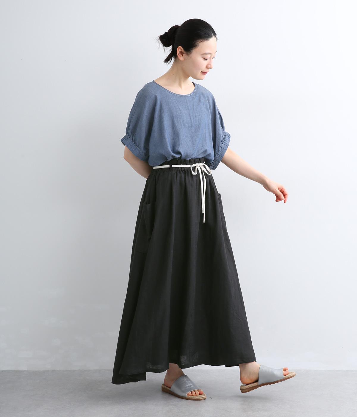 ハリのある生地にたっぷりとギャザーを寄せ、ふわりと広がる立体的なシルエットに仕上げました。サイドには存在感のあるパッチポケットを配し、ほどよいアクセントを添えています。ウエストの配色紐でアレンジも自在。裏地つきなので、安心してはけるのもうれしいポイントです。