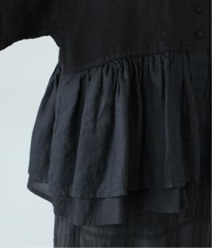 ブラックはしっかりとしたハリのあるリネン生地を使用。切り替えから下にはやや光沢のある軽い麻生地と、やわらかな薄手のコットンを重ねました。インディゴネイビーは表情のあるリネンデニムに、テンセルリネン素材を重ねたペプラムデザインを採用しています。