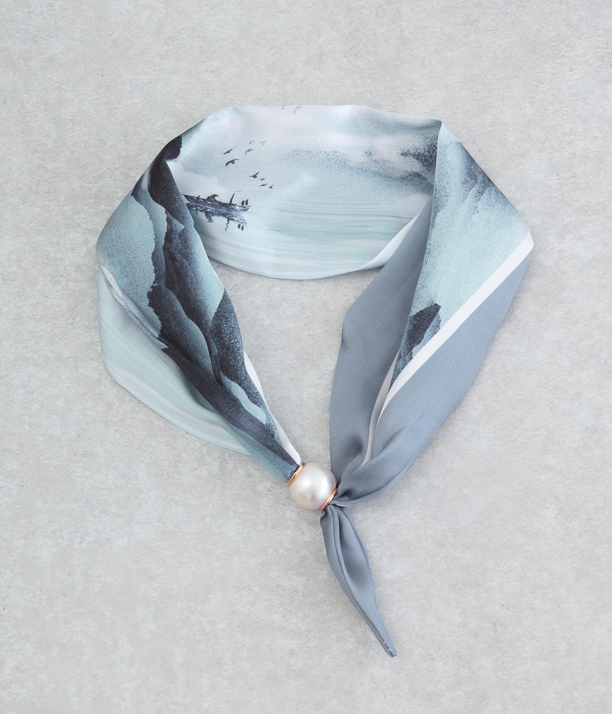 水彩ワンタッチスカーフ(ブルー-F)