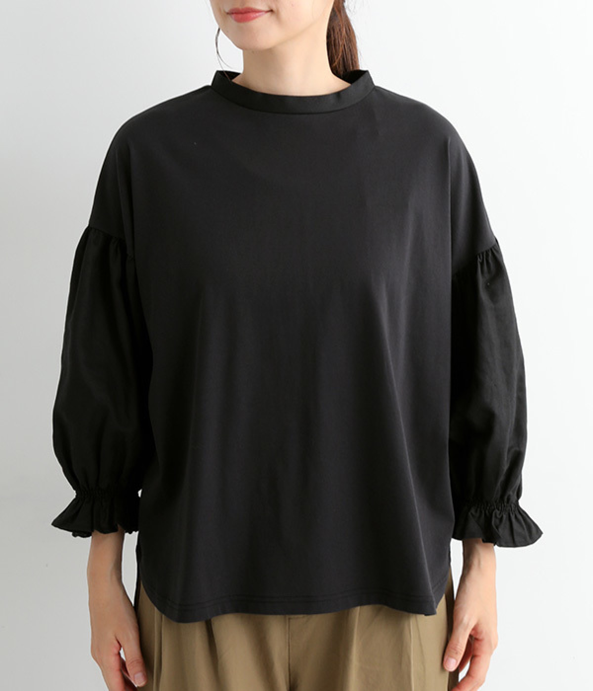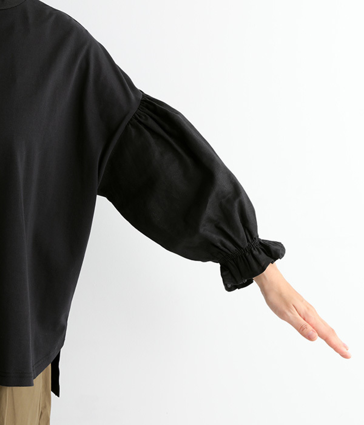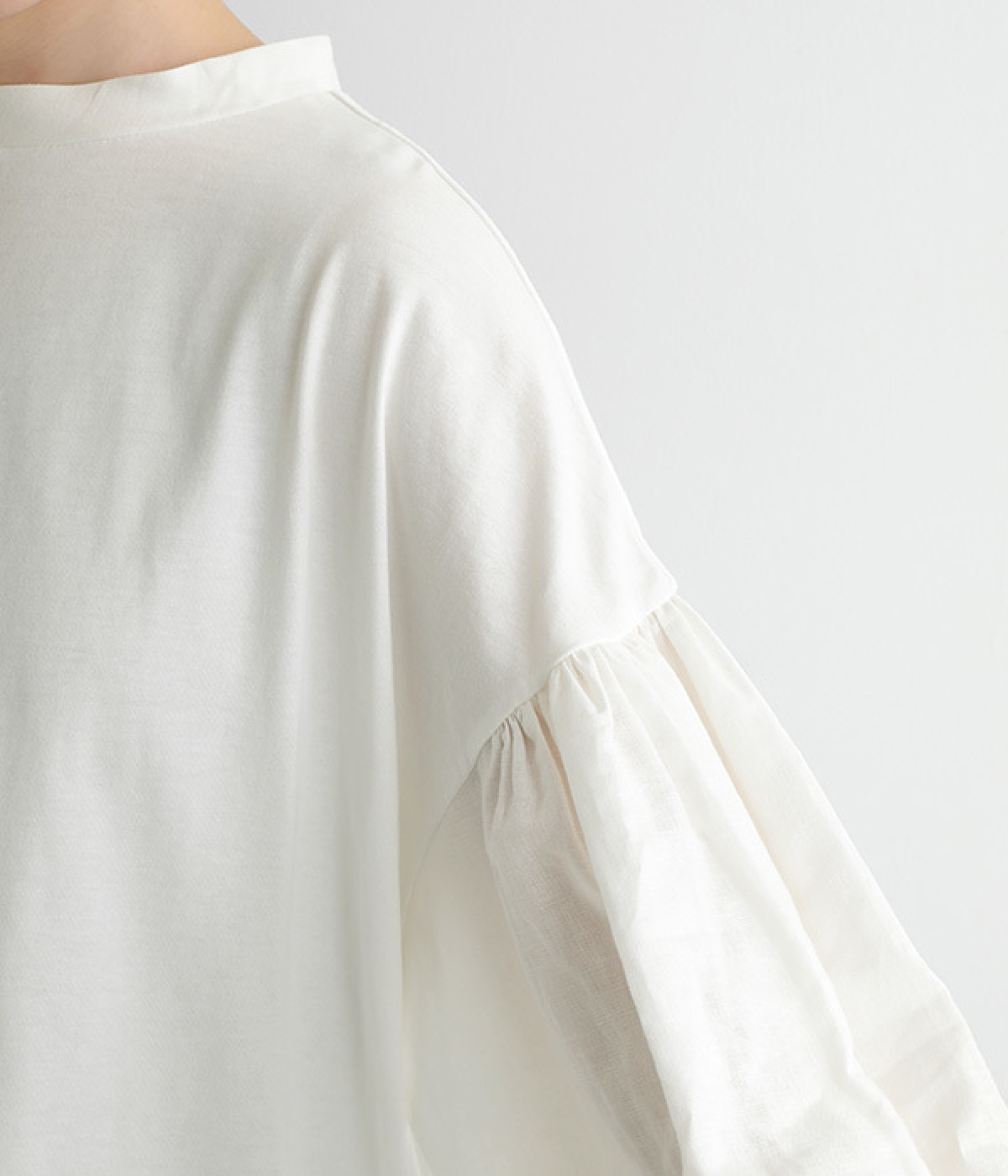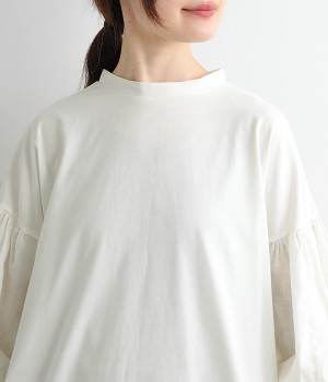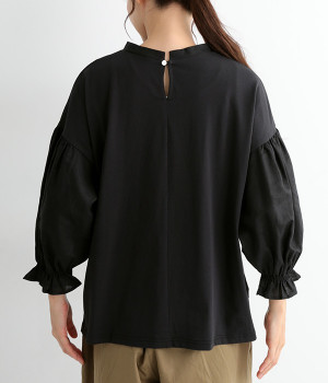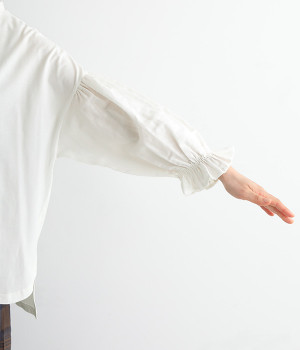 肩先ギャザー&袖口ゴムでふわりとソフトなボリュームを