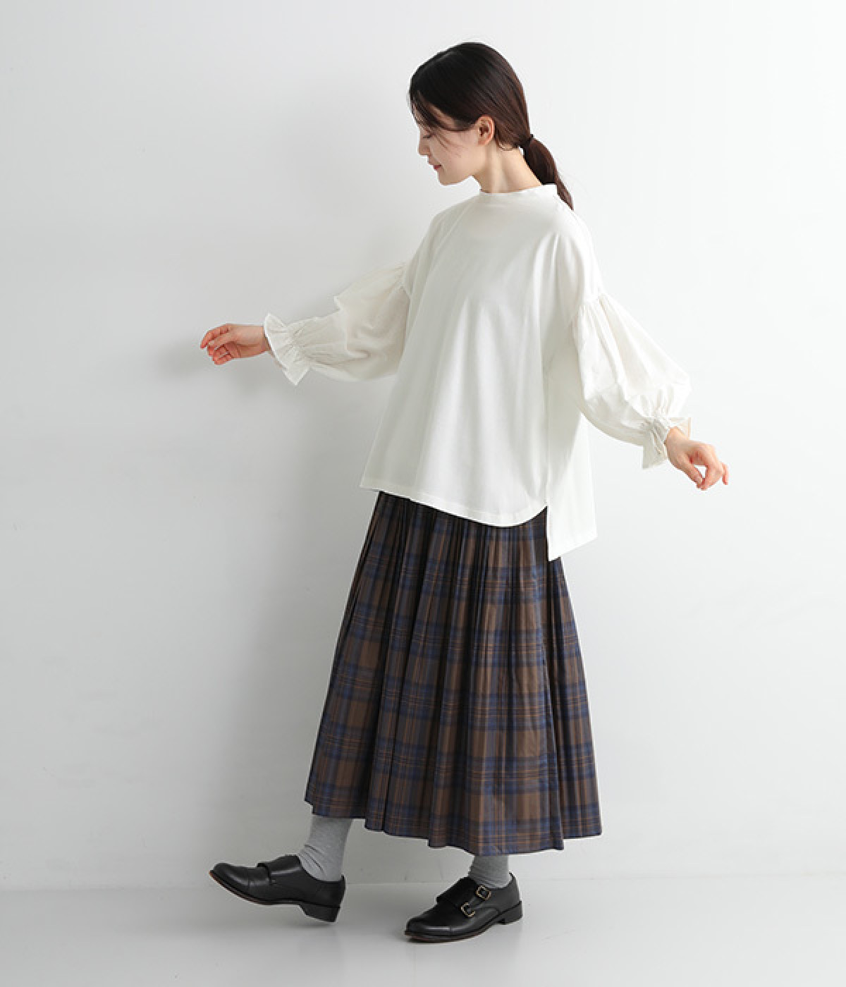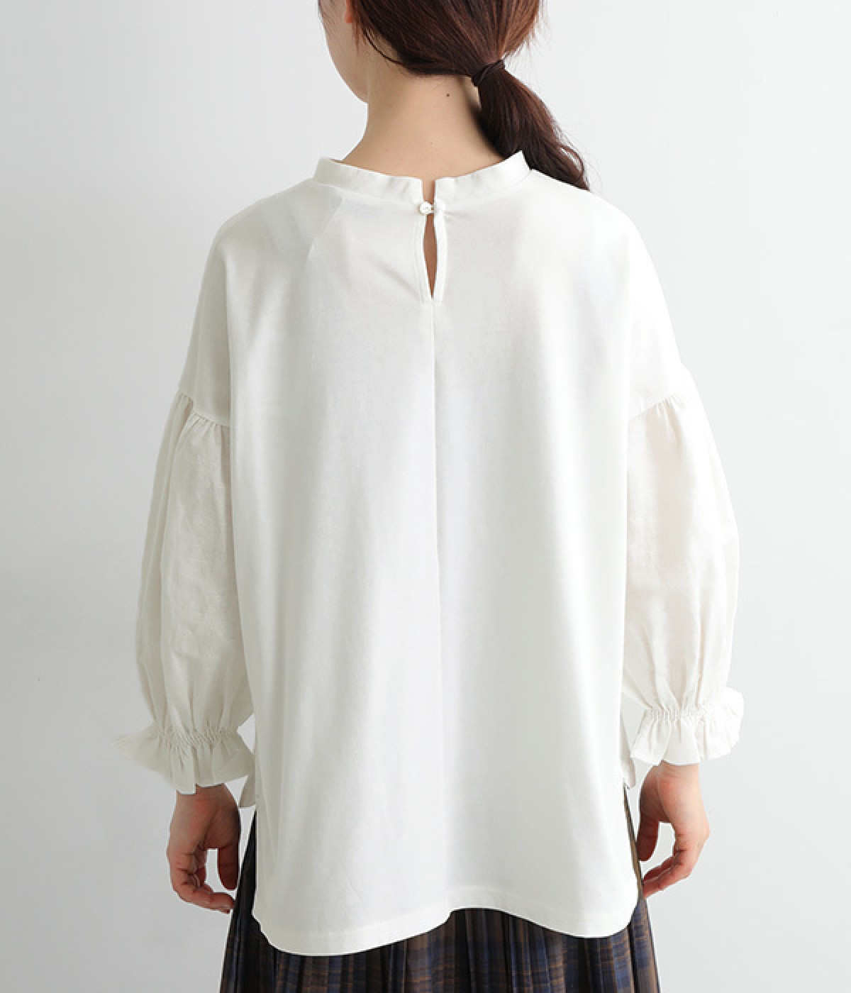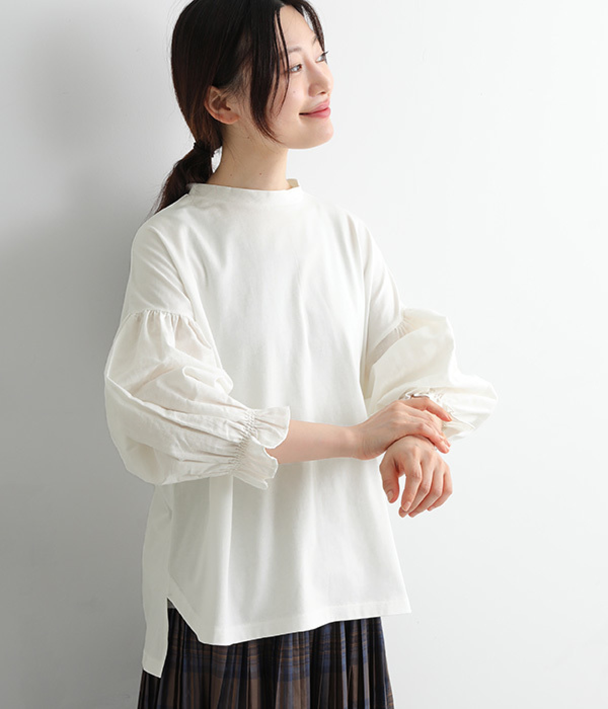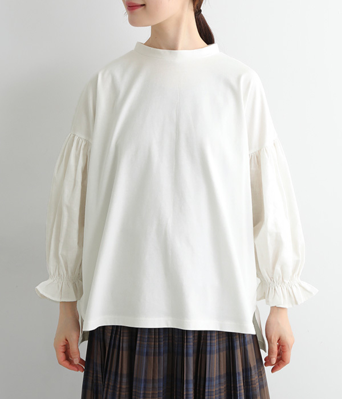 肩先ギャザー&袖口ゴムでふわりとソフトなボリュームを