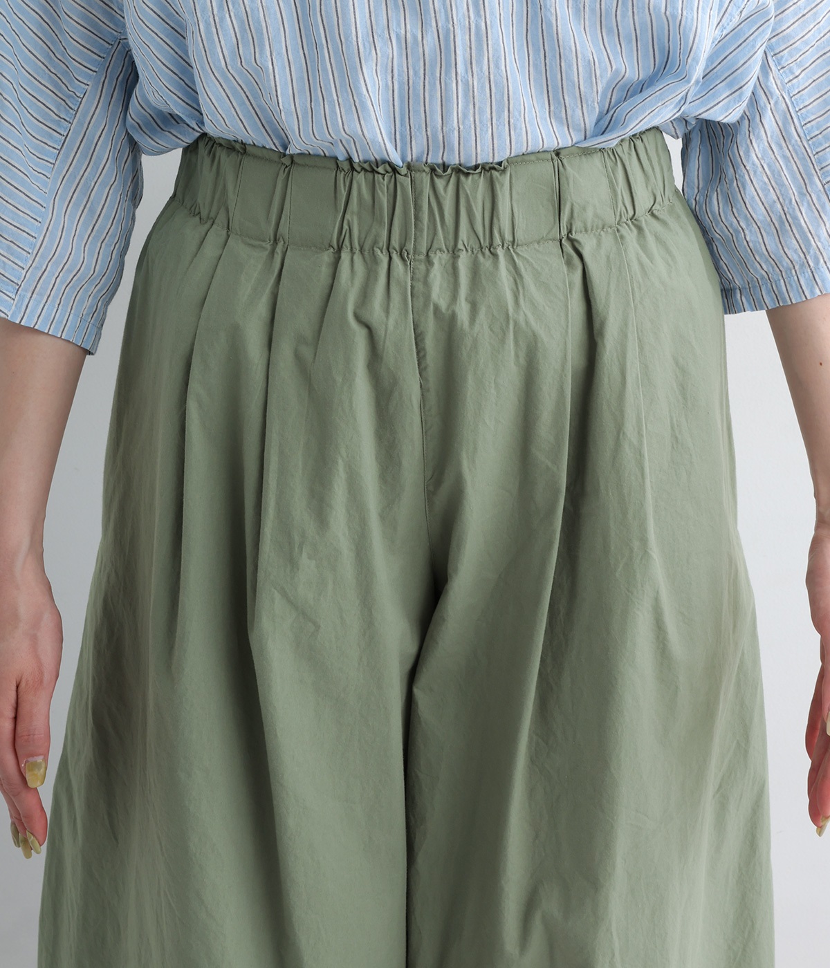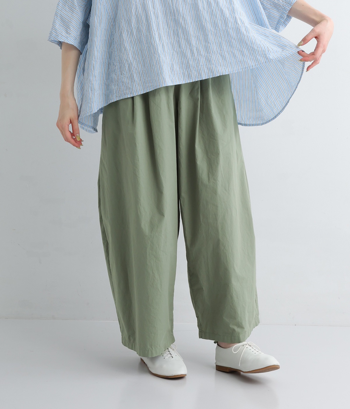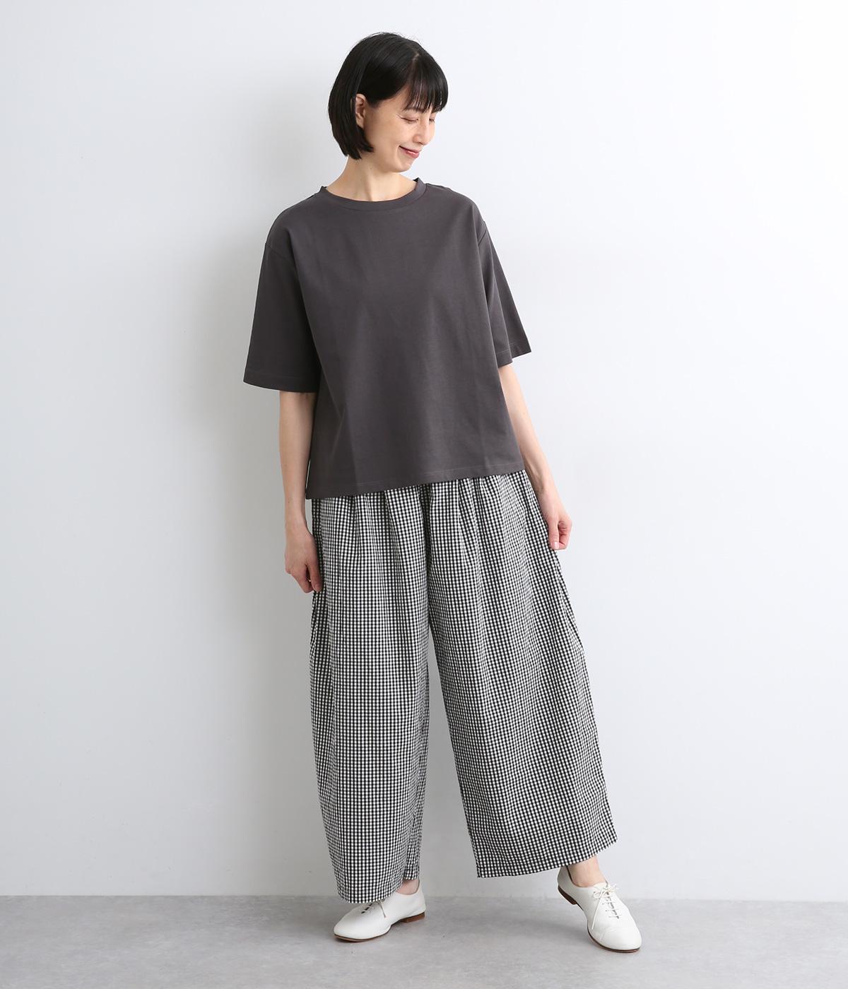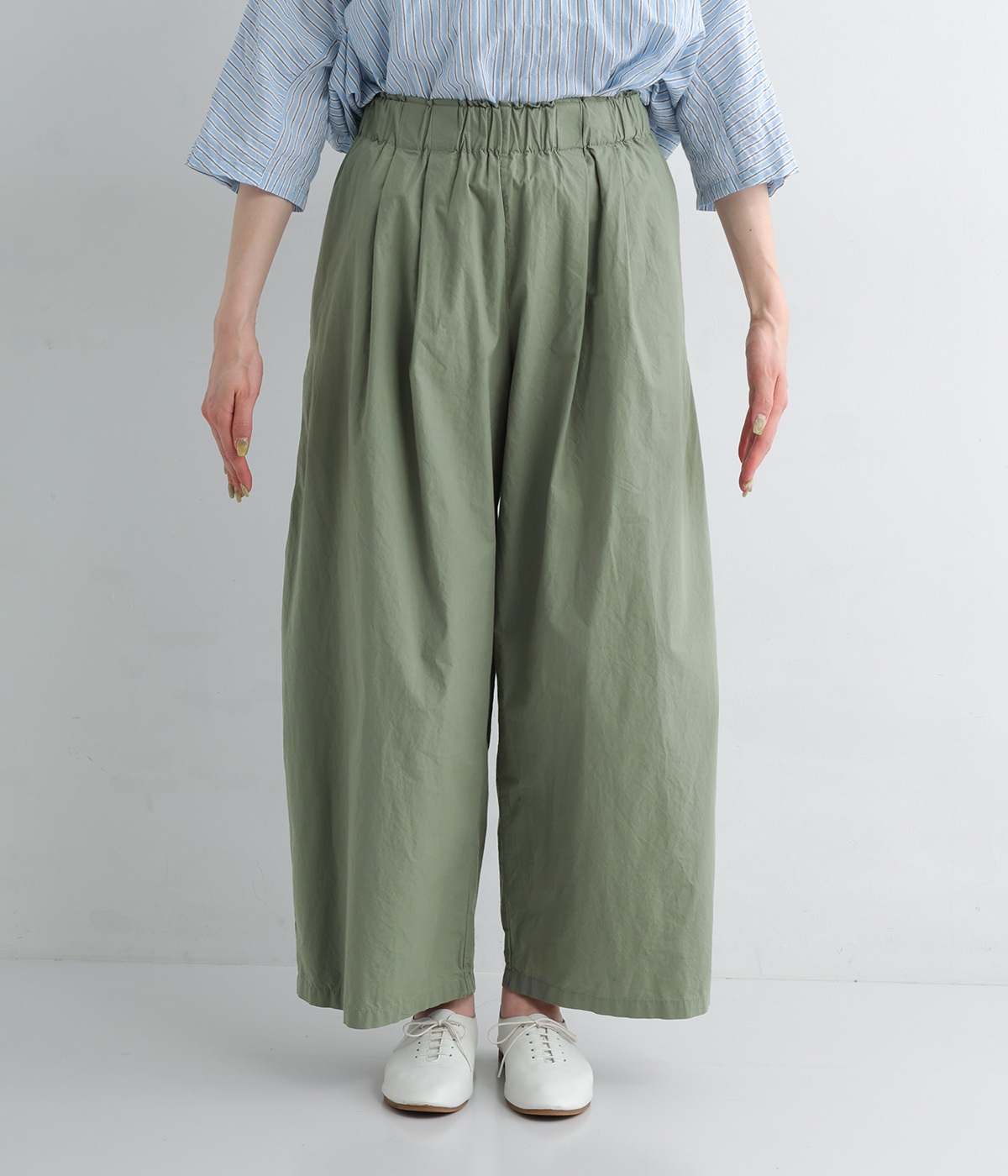 前タックやサイドタックをバランスよく入れ、イージーパンツながらきちんと感のある立体的なシルエットのブランド定番パンツ。ウエストはストレスフリーな総ゴムで、ベルト幅太めでトップスインもお洒落見えする仕立てに。