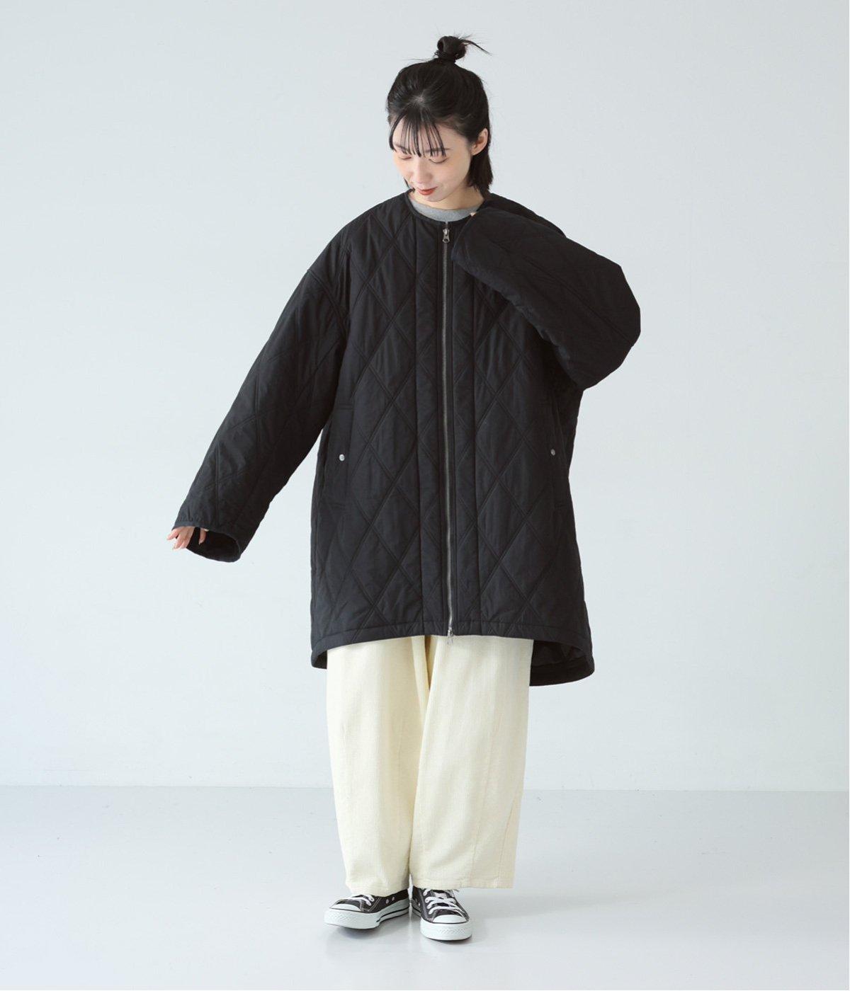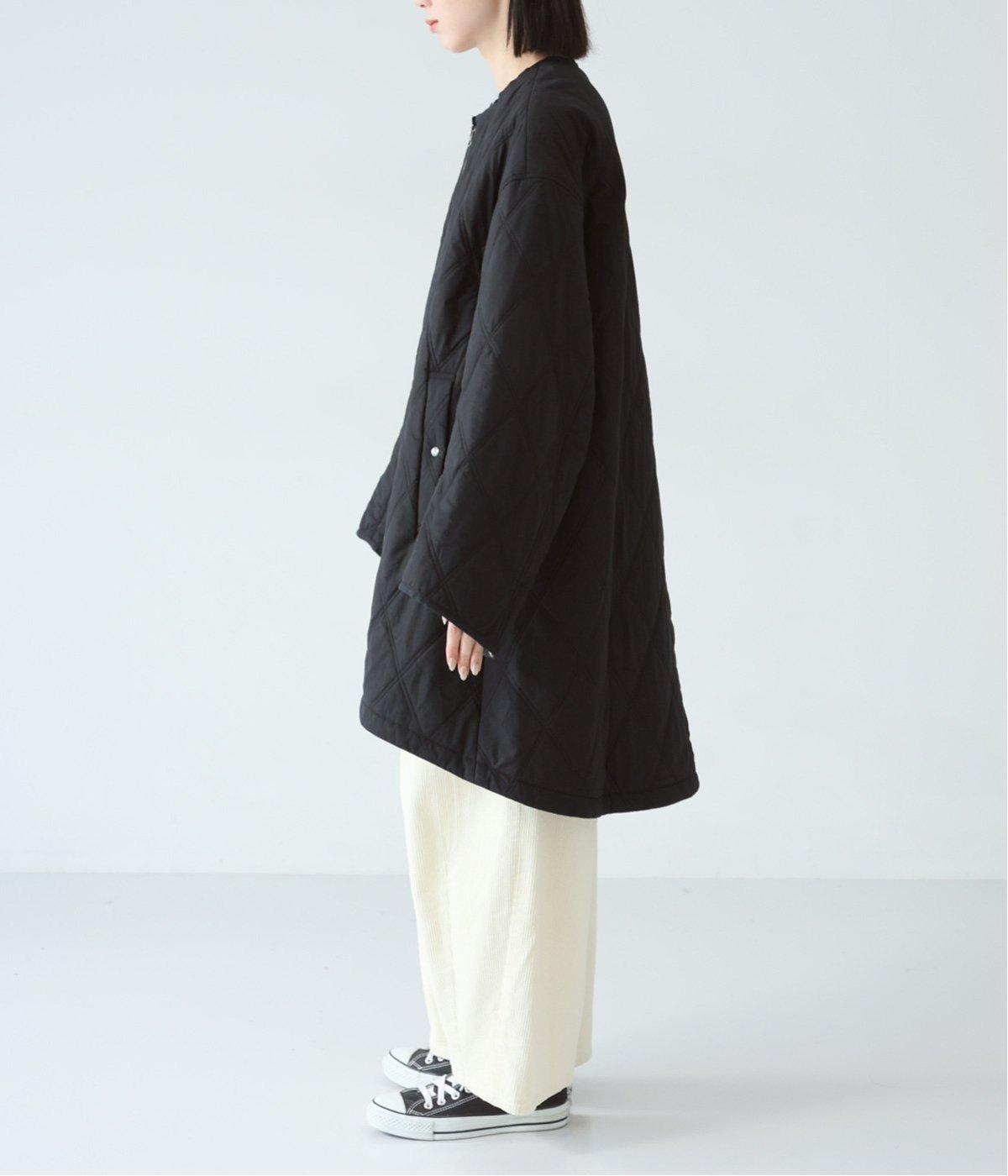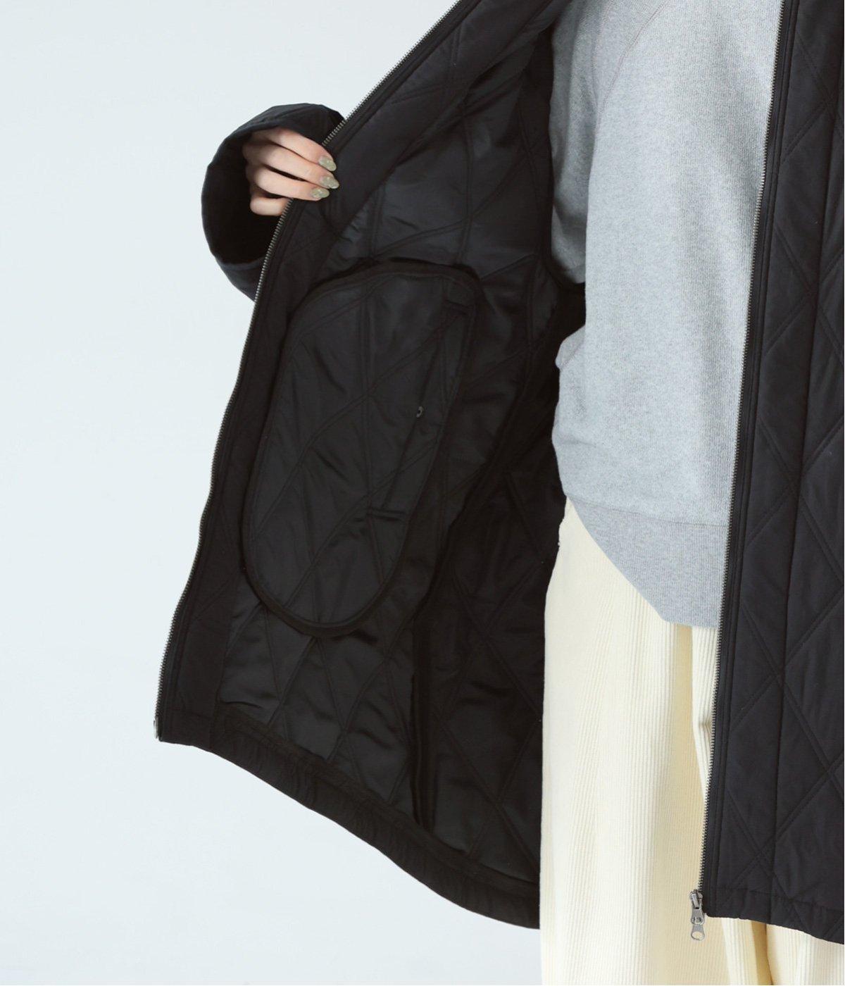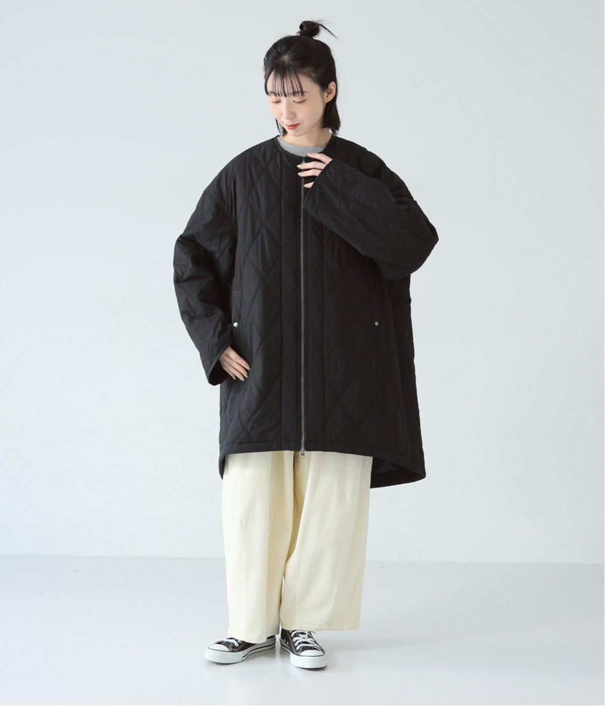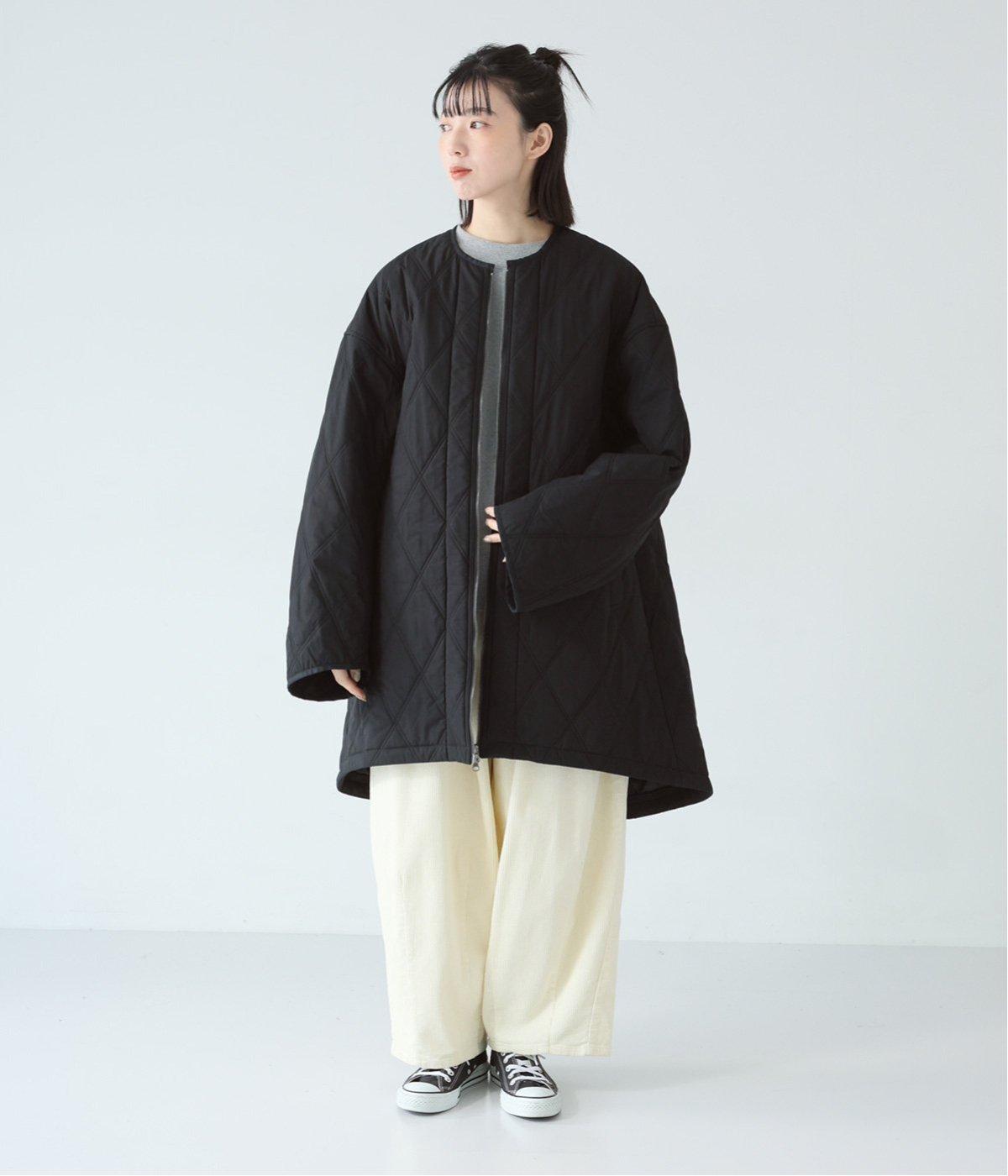 ふっくら感がありながらも厚みはなく、すっきり着られるジップコート。シンプルな襟元は重さを感じず、軽快でラフな印象が◎。キルトコートならではのステッチがほどよいアクセントになっています。ひざあたりまですっぽり隠れる丈感が、体のラインを上手にカバー。