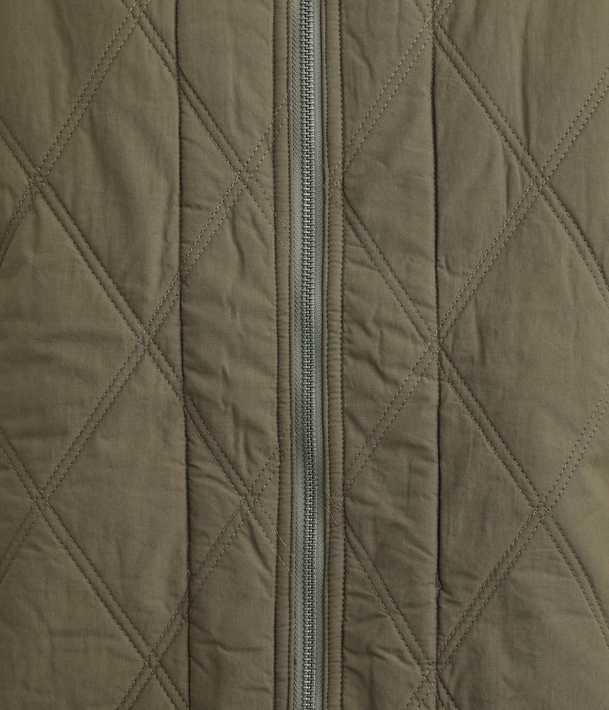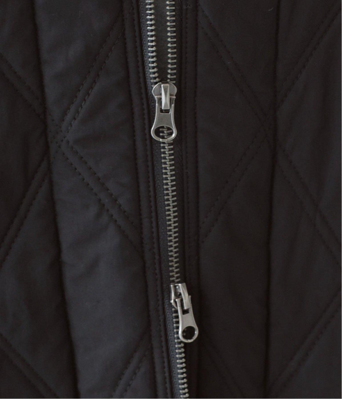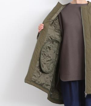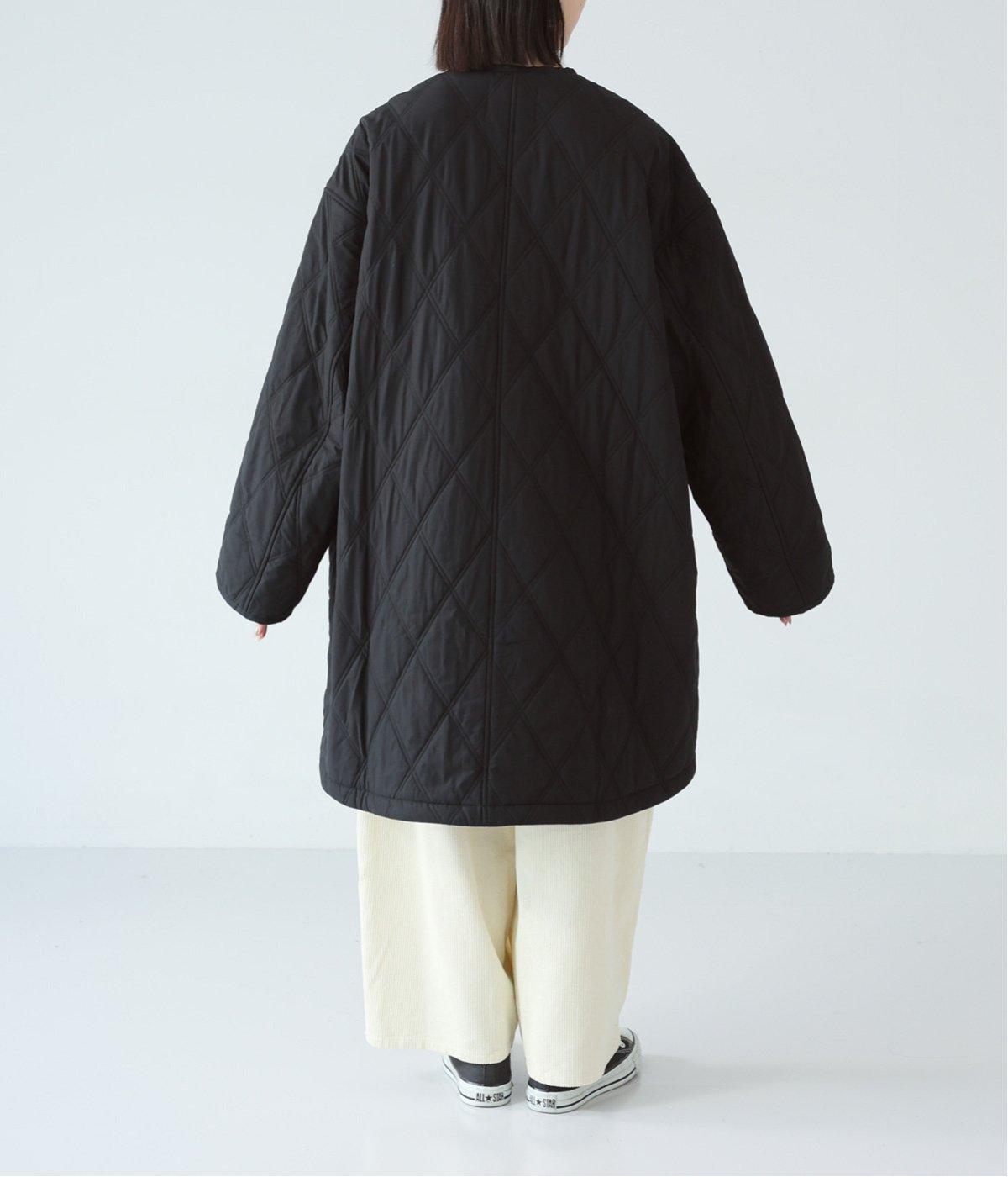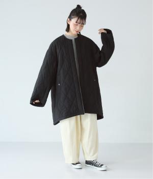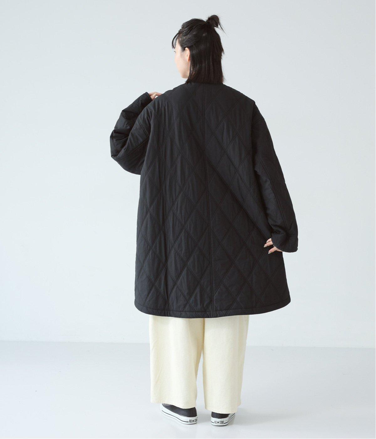 ふっくら感がありながらも厚みはなく、すっきり着られるジップコート。シンプルな襟元は重さを感じず、軽快でラフな印象が◎。キルトコートならではのステッチがほどよいアクセントになっています。ひざあたりまですっぽり隠れる丈感が、体のラインを上手にカバー。