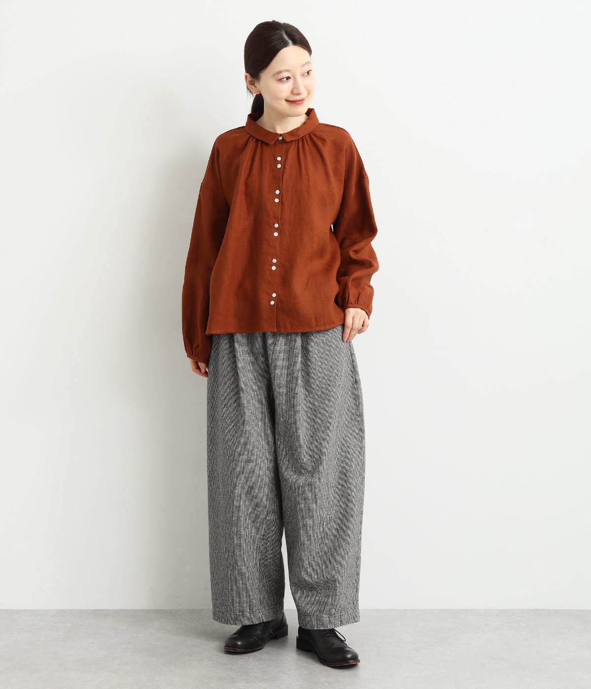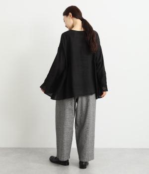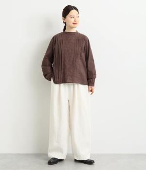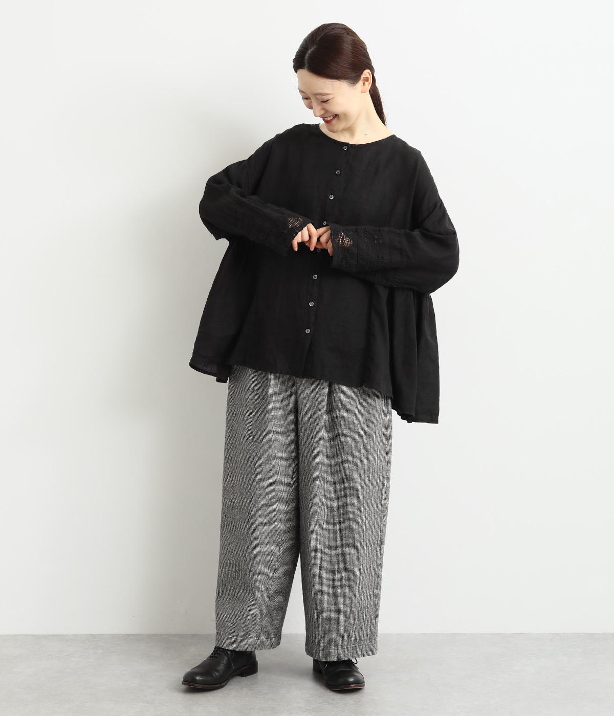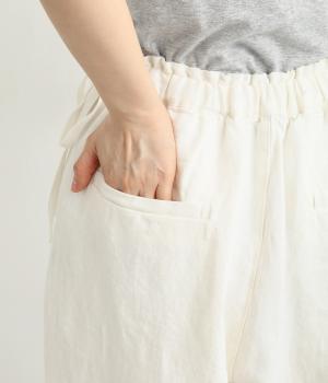 オフホワイトはほどよいハリ感のある麻ツイル生地を、千鳥チェックはやわらかなコットンリネン素材をそれぞれ使用しました。どちらもナチュラルな風合いが魅力の快適な着心地です。