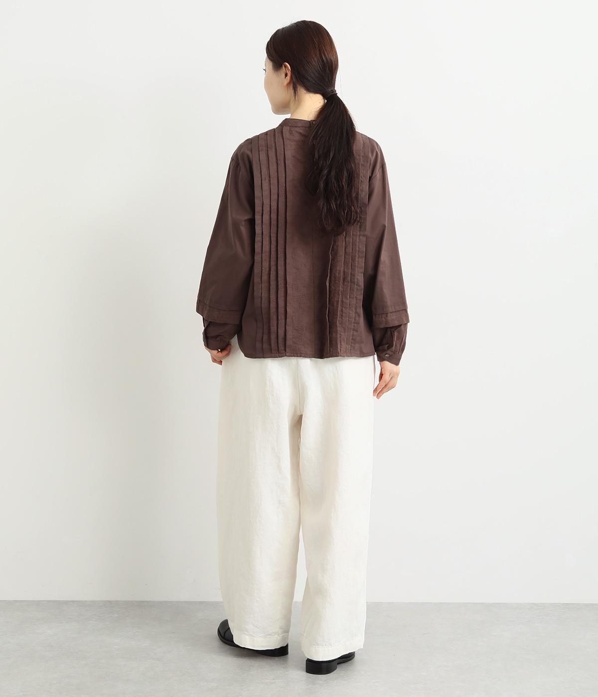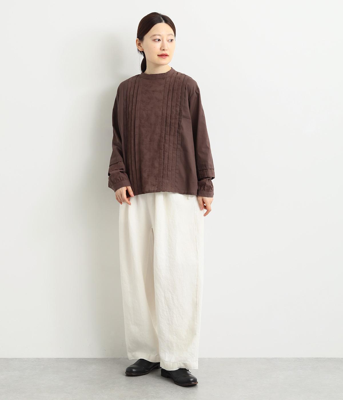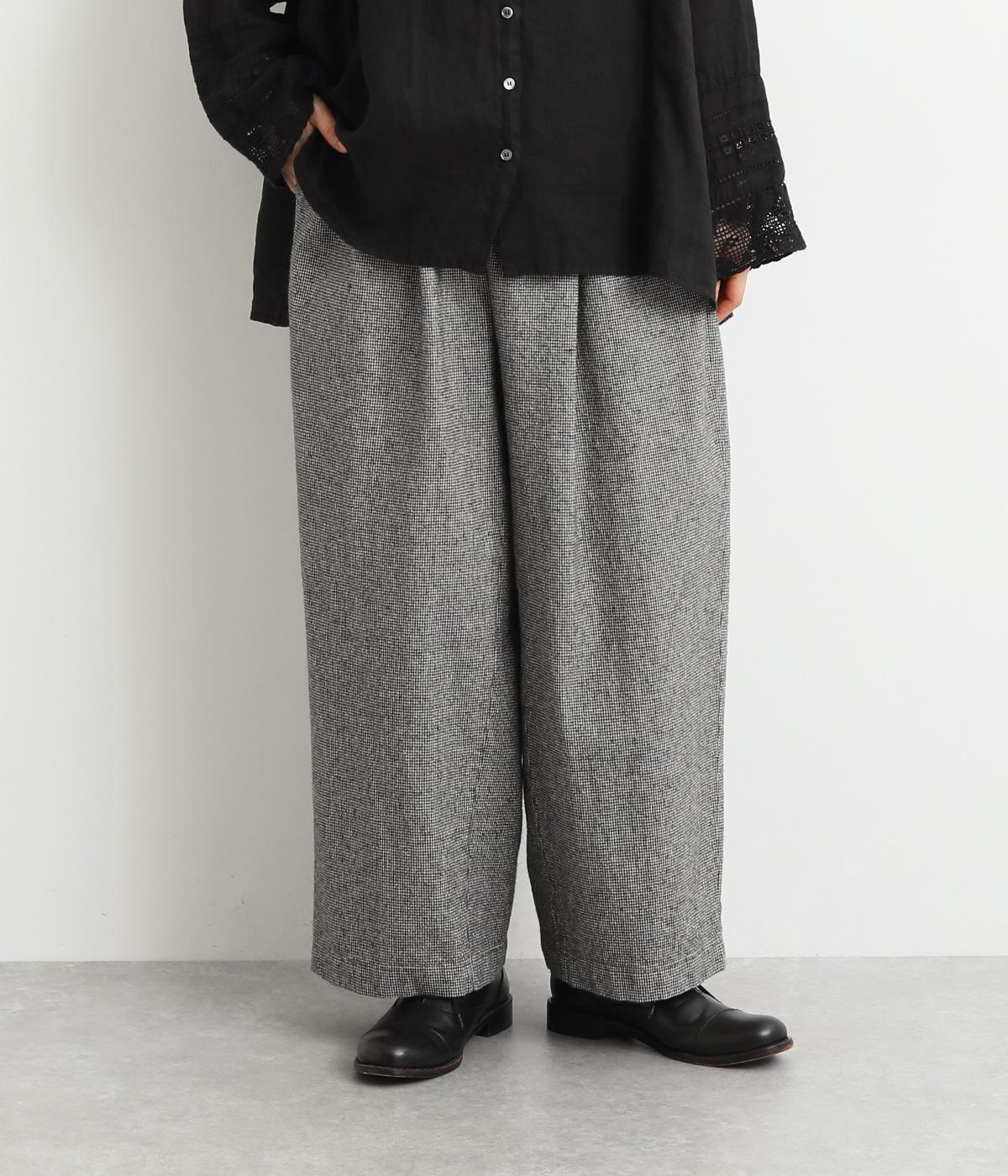 オフホワイトはほどよいハリ感のある麻ツイル生地を、千鳥チェックはやわらかなコットンリネン素材をそれぞれ使用しました。どちらもナチュラルな風合いが魅力の快適な着心地です。