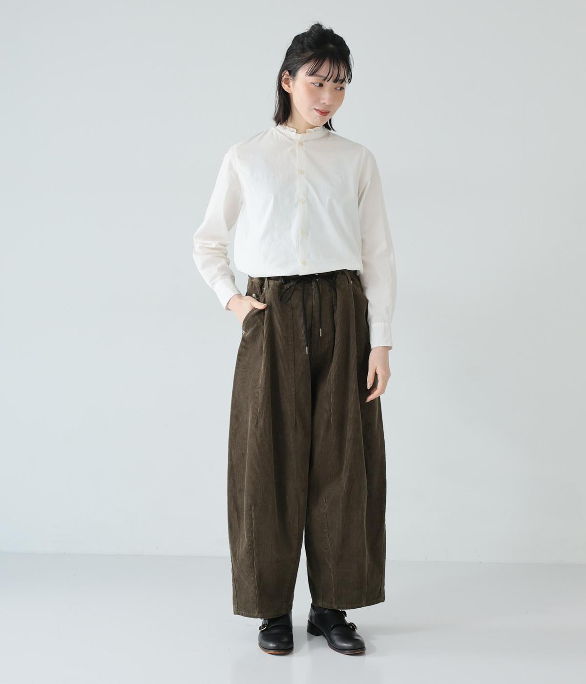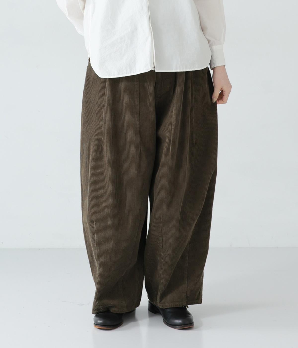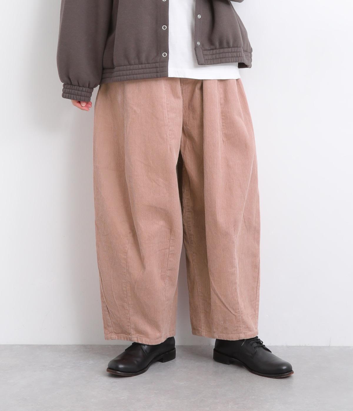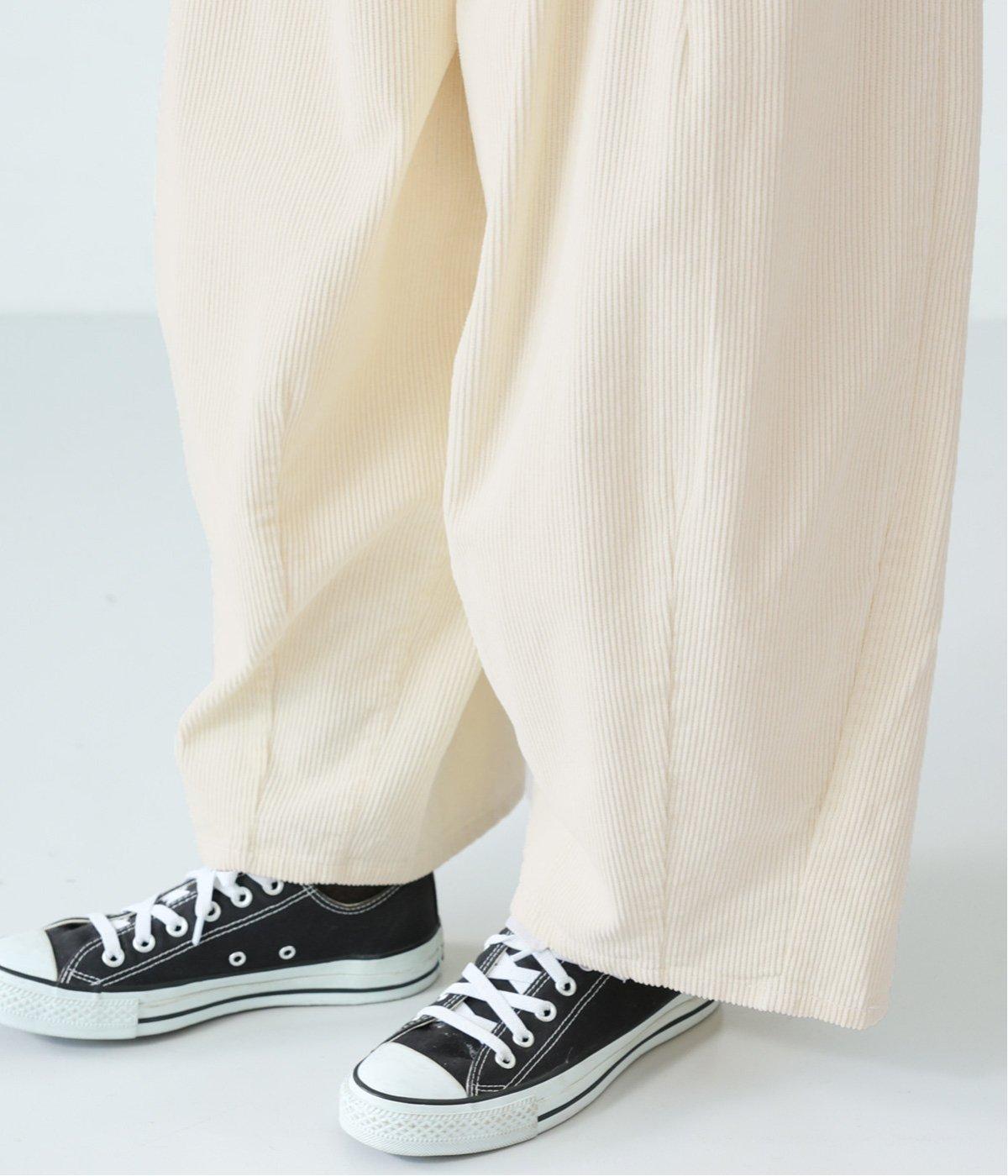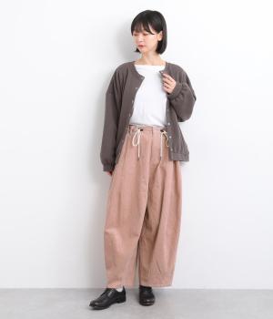 時代を超えて愛される、流行に左右されないコーデュロイパンツ。タックによる立体感とバルーン状のシルエットが、王道パンツに個性をプラスしてくれます。ウエストの紐部分もデザイン性が高く、トップスをインしてもかわいく着こなせます。