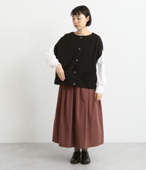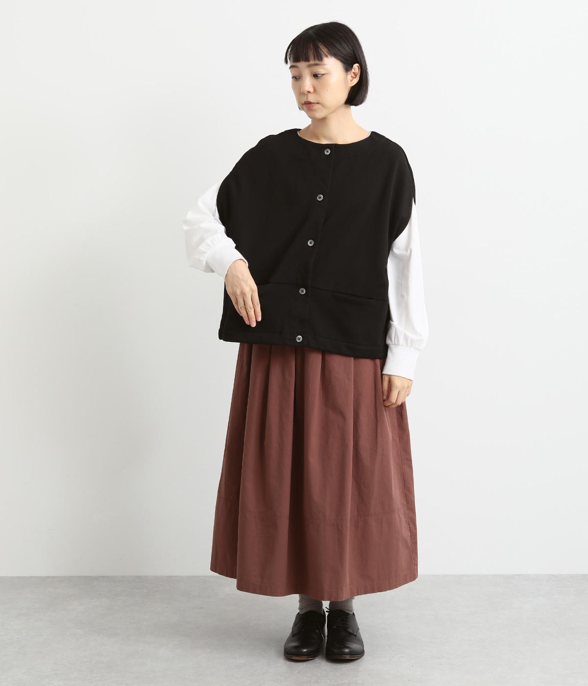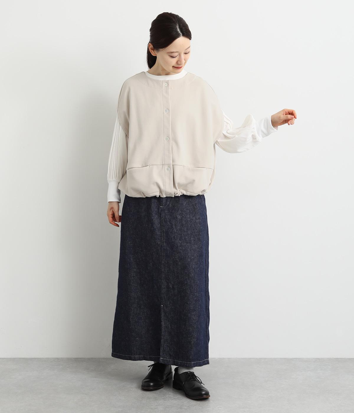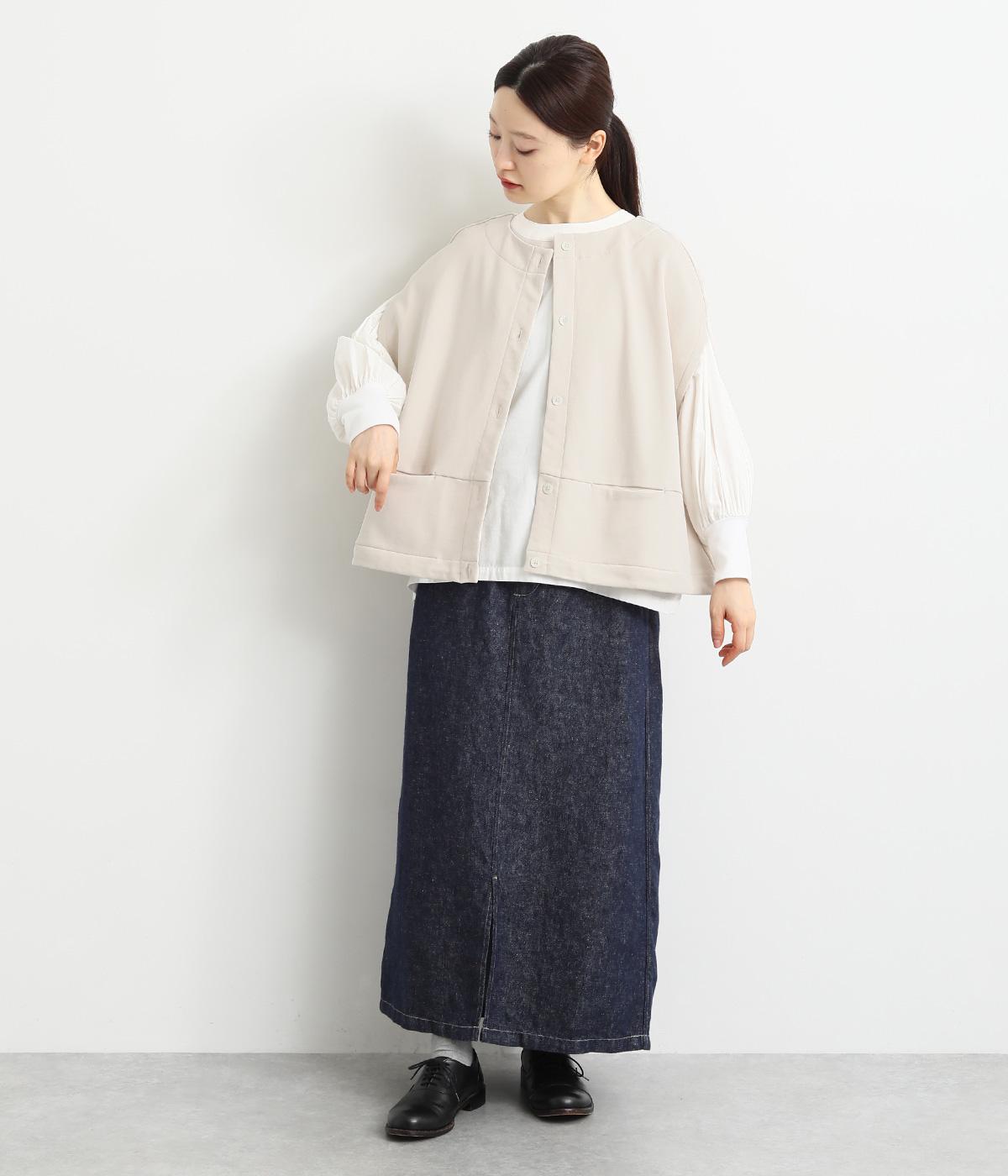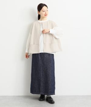 ポンチョ型のデザインにシンプルでスッキリとした印象のシームポケットを取り入れました。裾はドロストコード仕様に。ぎゅっと絞れば丸みのある可愛らしいシルエットに、ゆるめればラフで動きのあるラインにと変化を楽しめます。