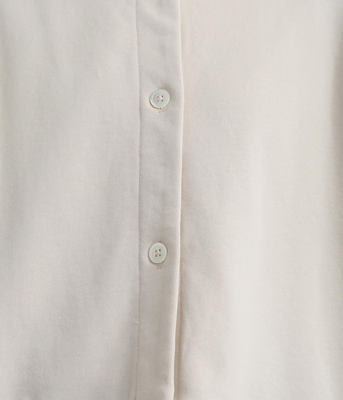 サラリとした質感が心地よいコットンの裏毛素材を使用しました。ほどよい厚みと柔らかさがあり、軽やかに羽織れて快適な着心地です。通気性もよく、ロングシーズン活躍します。